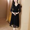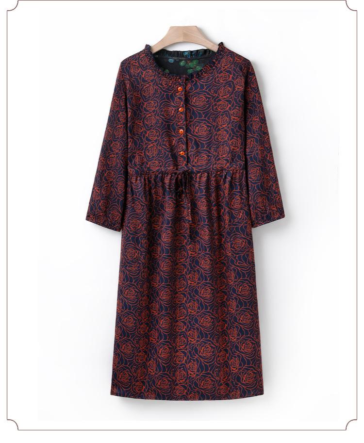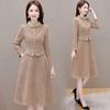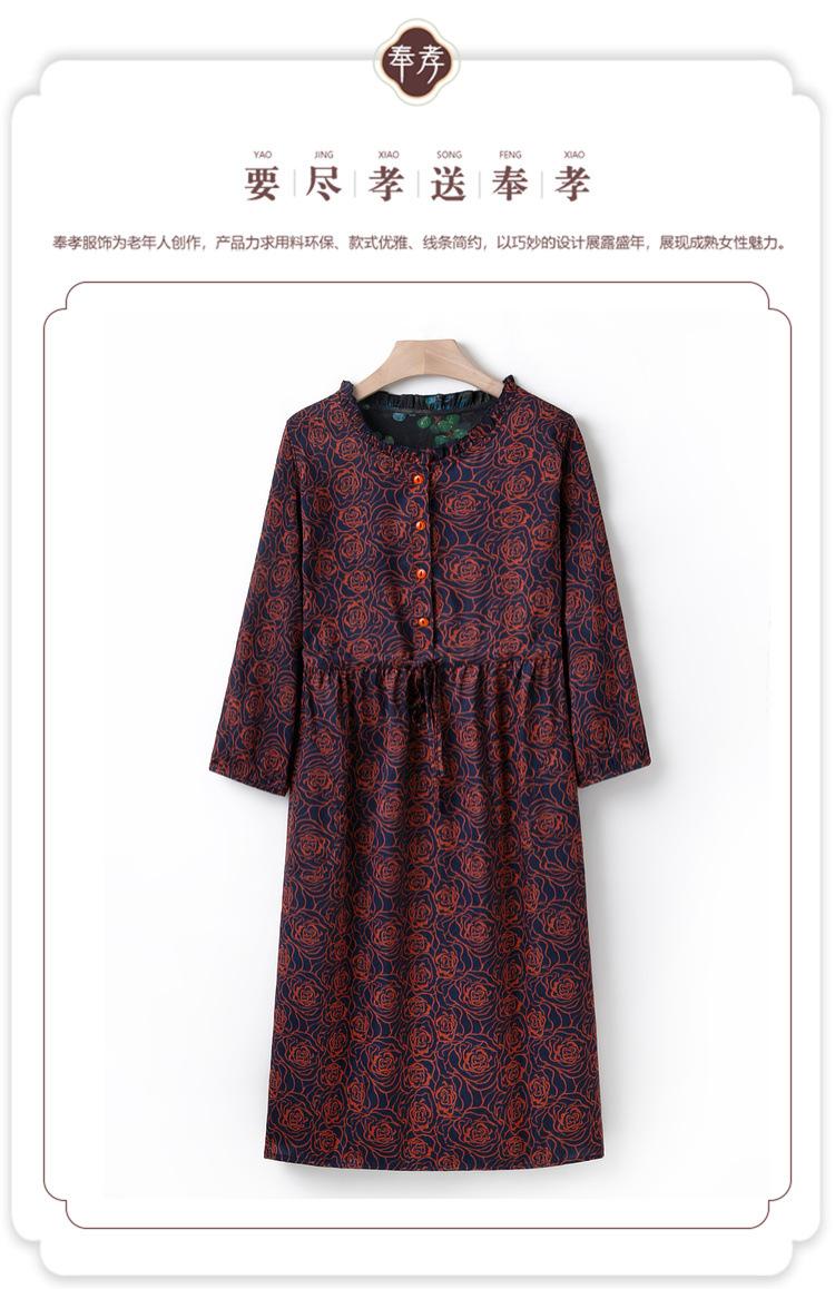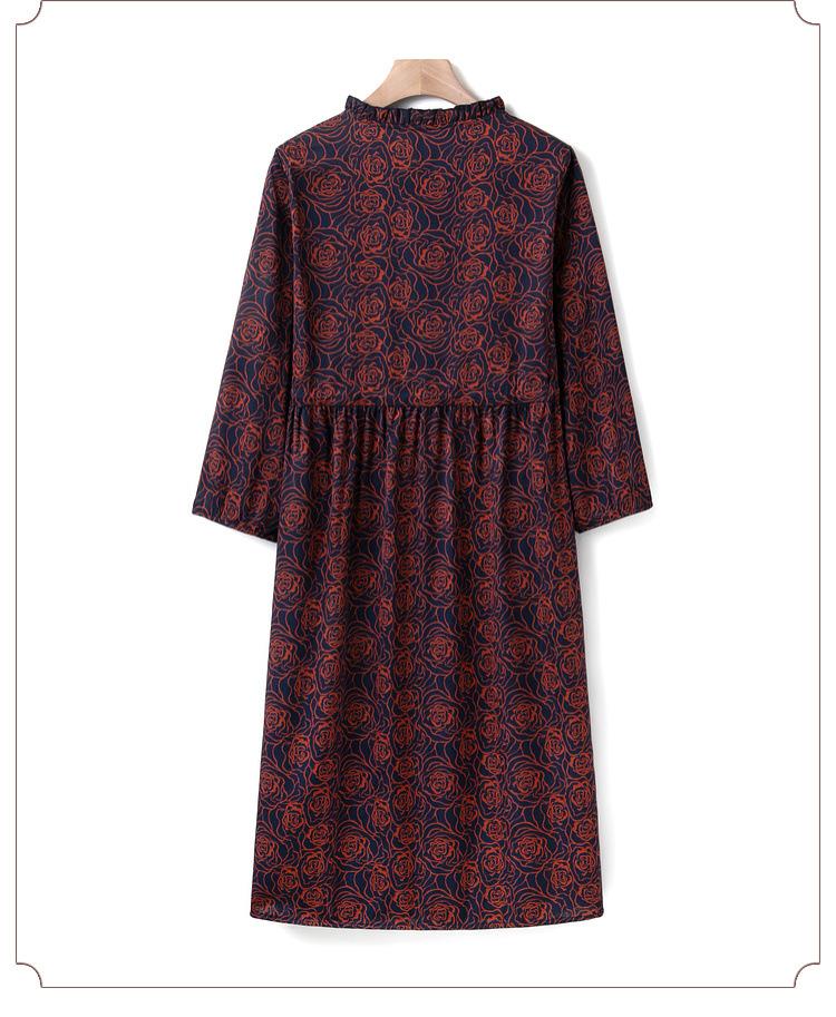 Vestido de Verano Nuevo de Manga Larga, Largo Medio, Vestido para Madre de Mediana Edad, Temperamento a la Moda, Adelgazamiento de Cintura, Falda Recta que Cubre Vientre