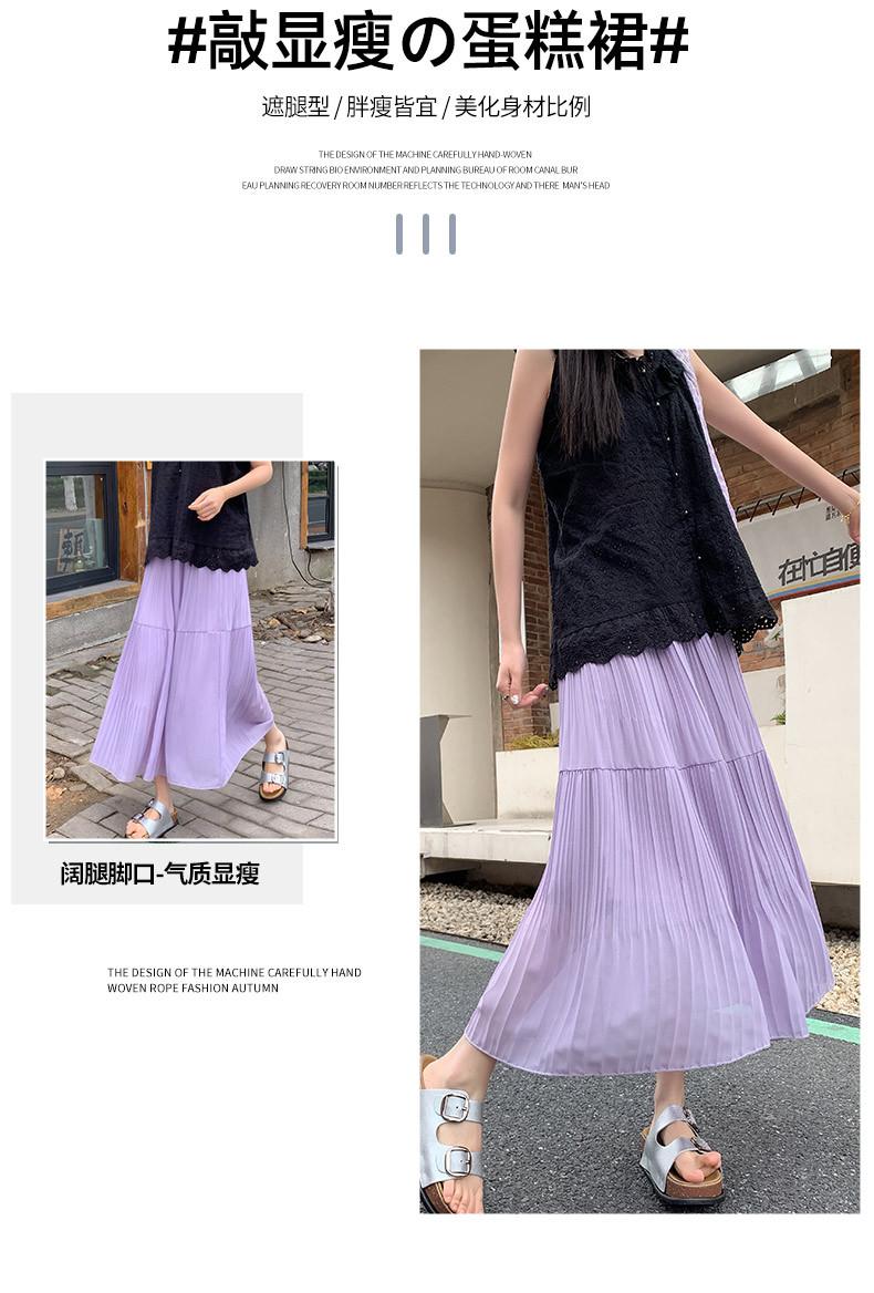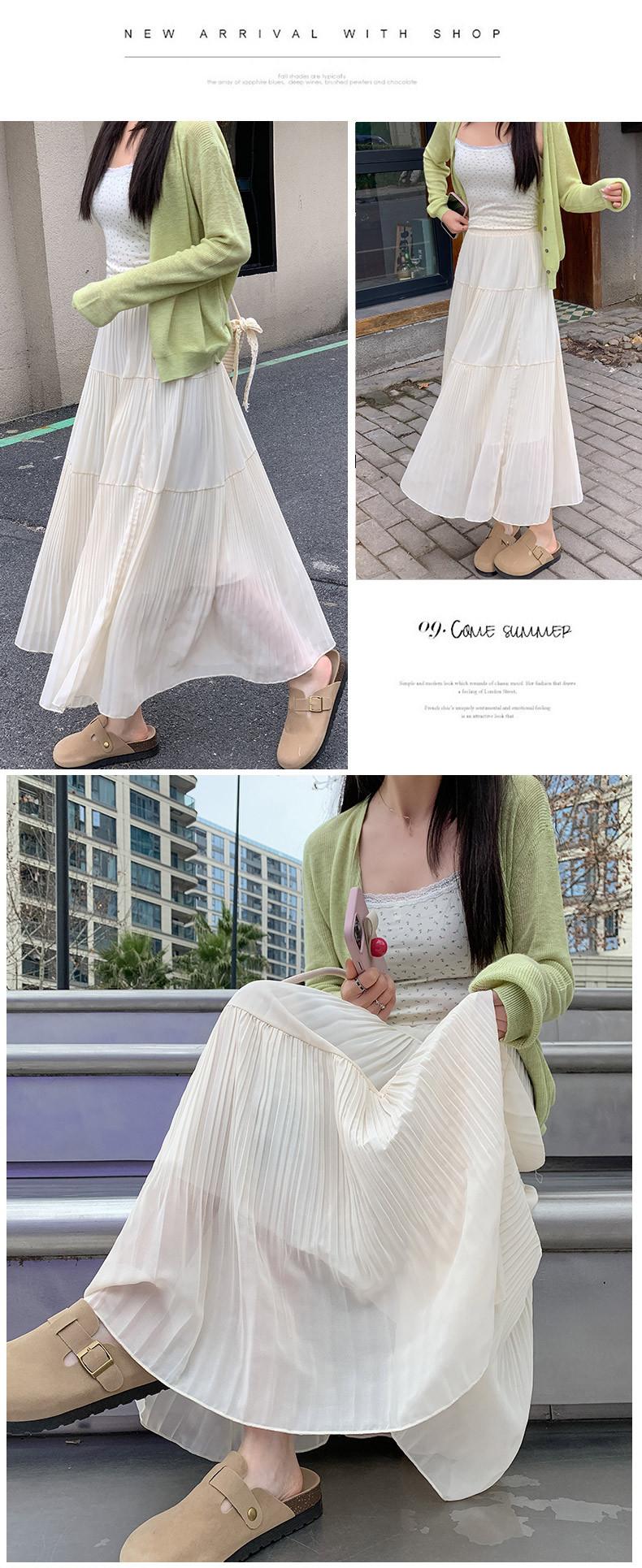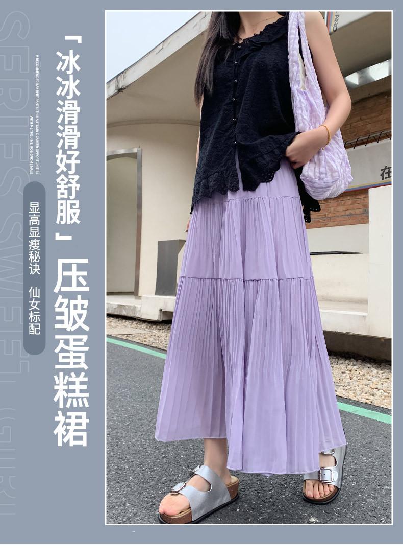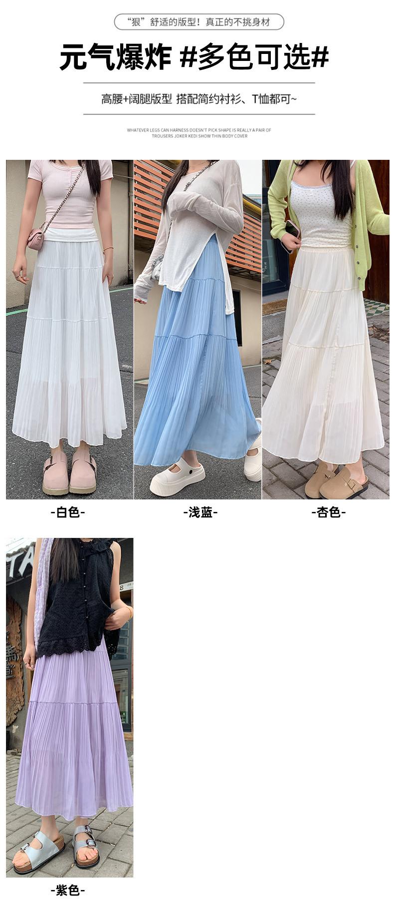Falda plisada color albaricoque para mujer 2025 Verano Nuevo Cintura alta Chifón Línea A Falda pastel Aspecto adelgazante Falda con dobladillo grande drapeado