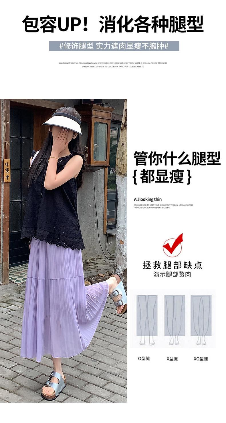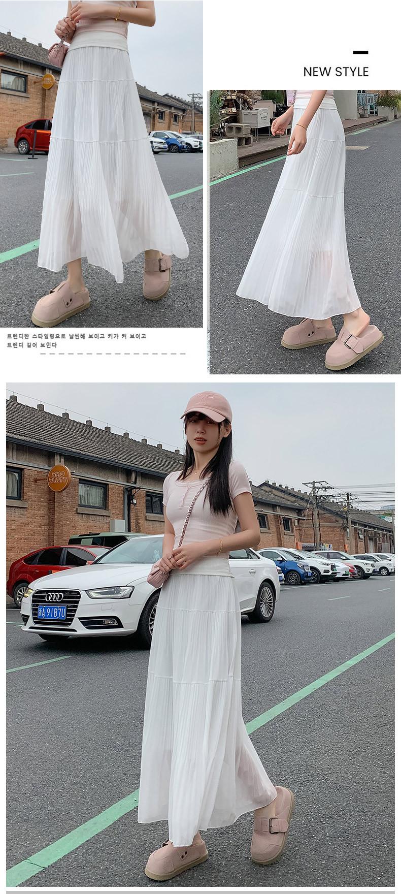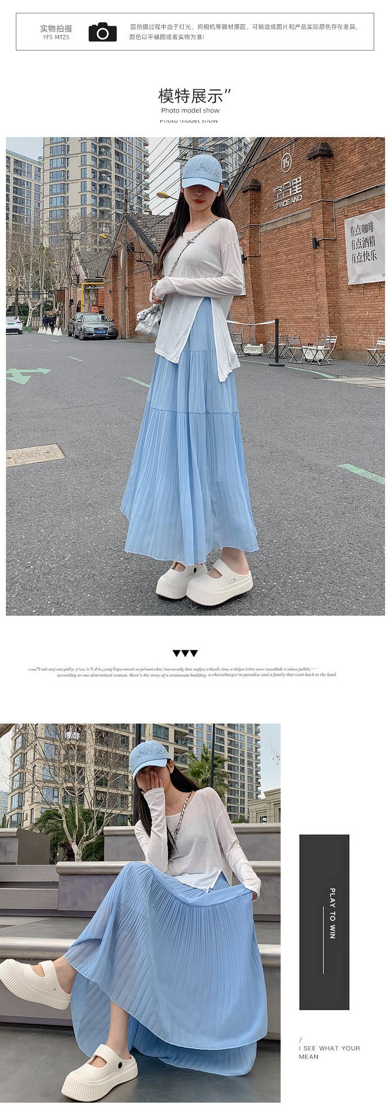 Falda plisada color albaricoque para mujer 2025 Verano Nuevo Cintura alta Chifón Línea A Falda pastel Aspecto adelgazante Falda con dobladillo grande drapeado