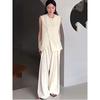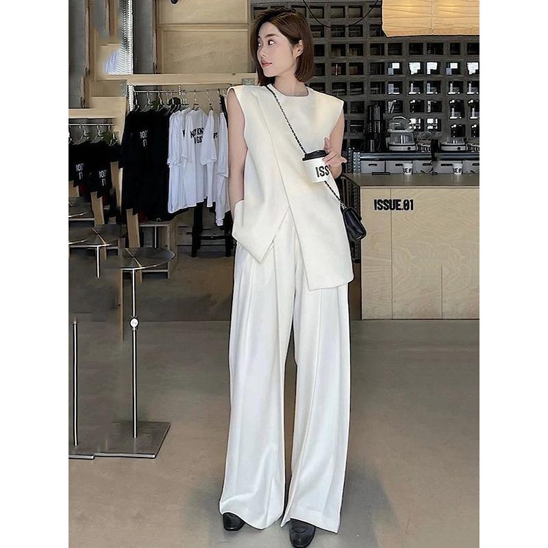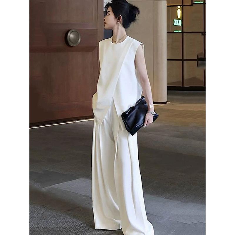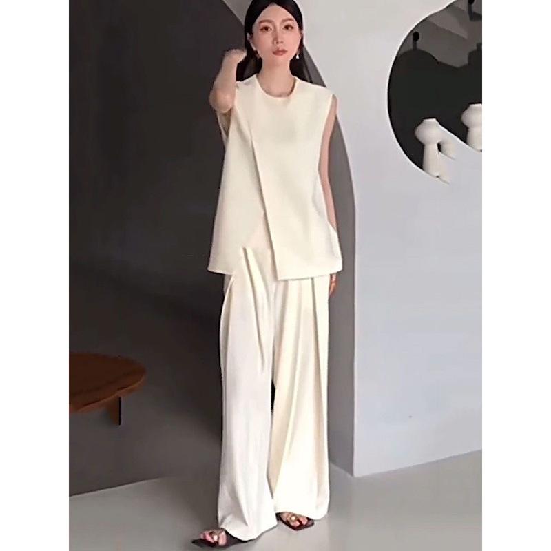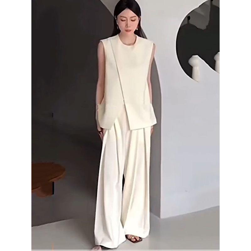 Traje de Moda Europea para Mujer 2025 Verano Nuevo Estilo Cintura Adelgazante Look Top sin Mangas + Pantalón Recto Holgado