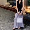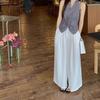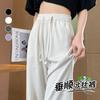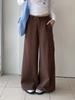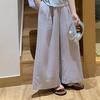 Pantalones largos drapeados adelgazantes de talle alto a la moda 2025, de verano, versátiles, de color sólido, de pierna ancha, casuales para mujer