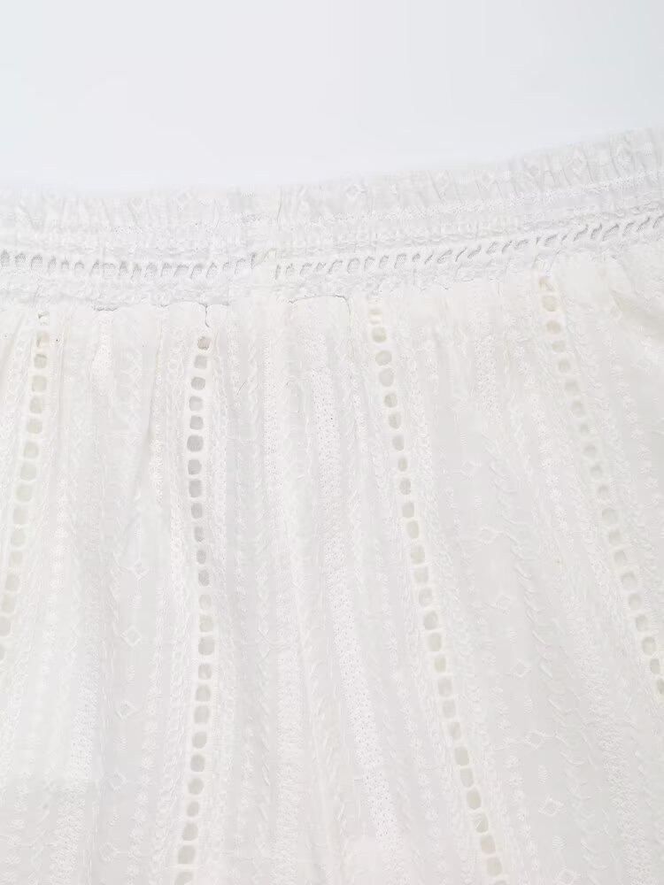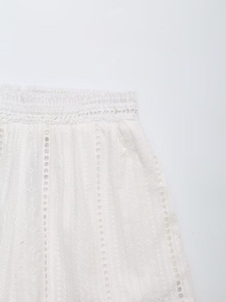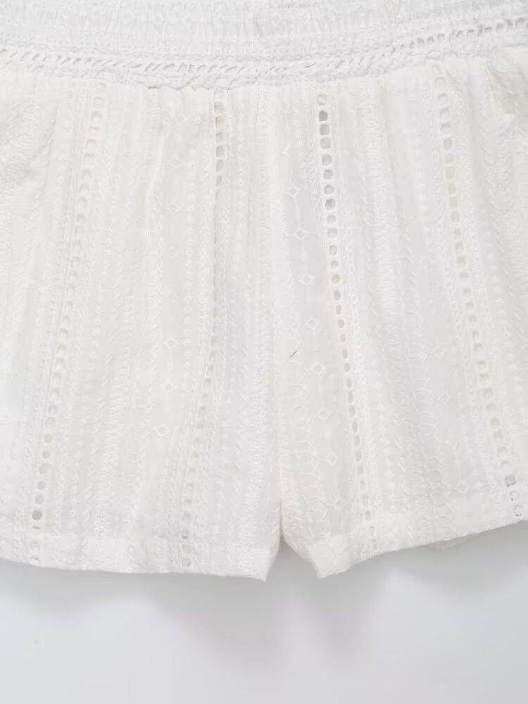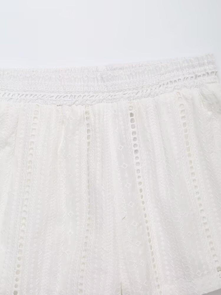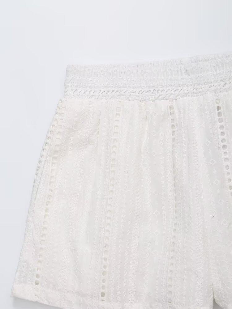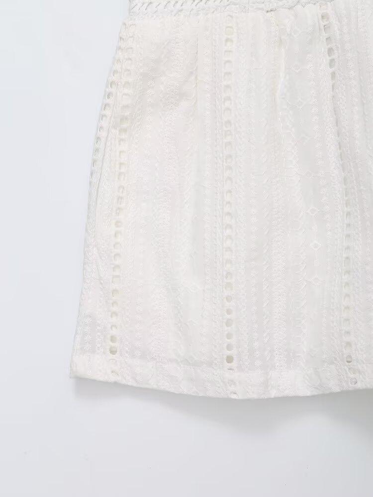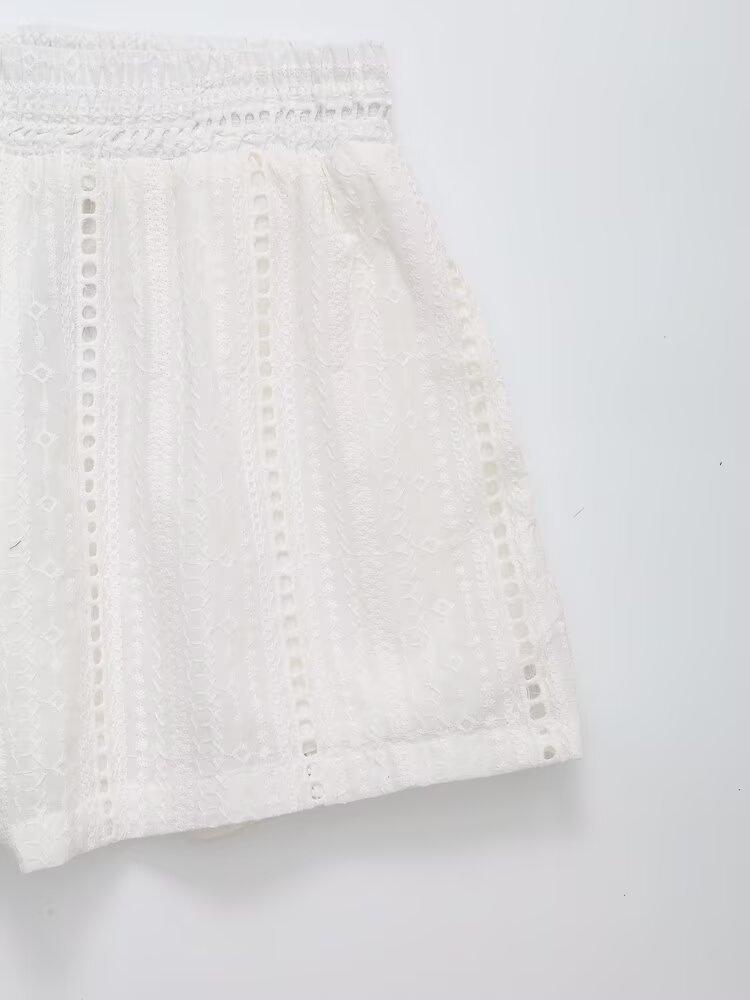 Exportación al por mayor transfronteriza Ropa de mujer Verano 2025 Estilo europeo y americano Color puro Cut out Bordado Casual Shorts de mujer E74070