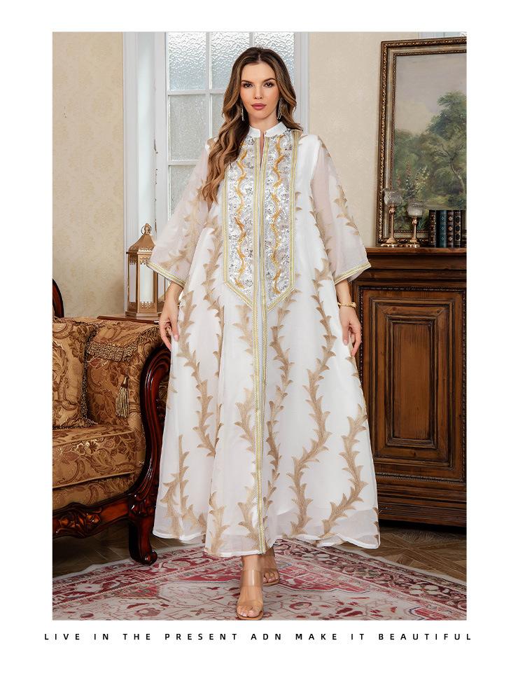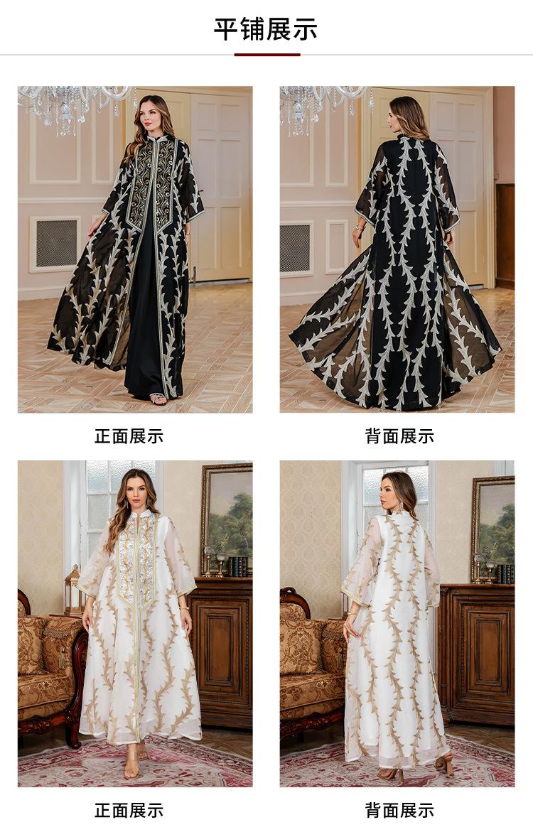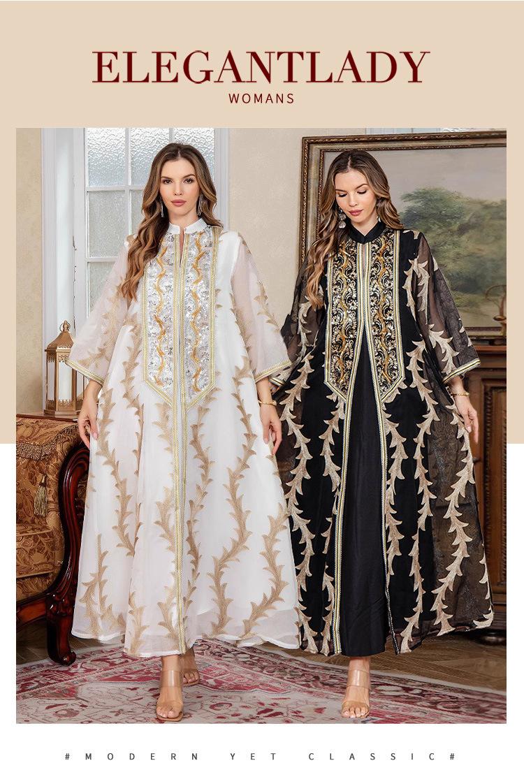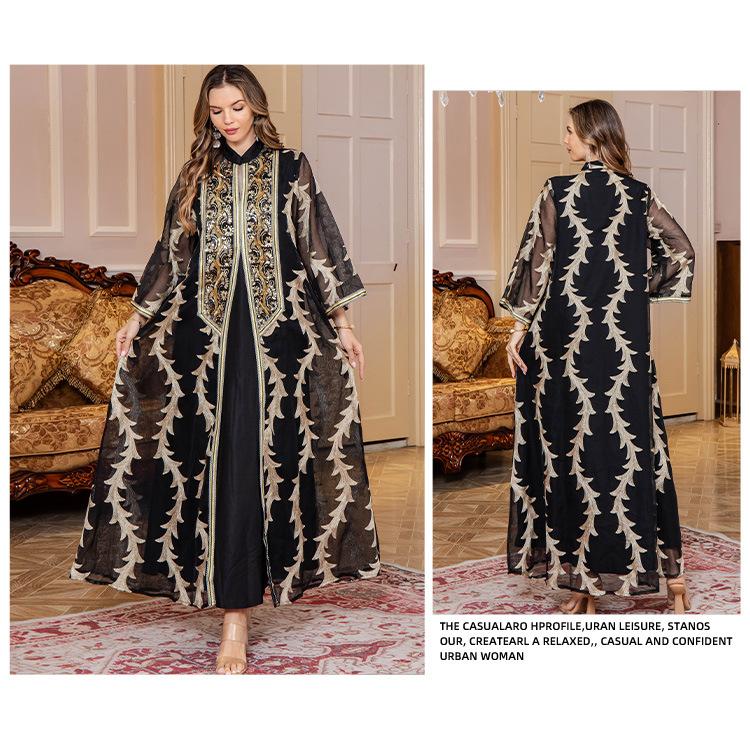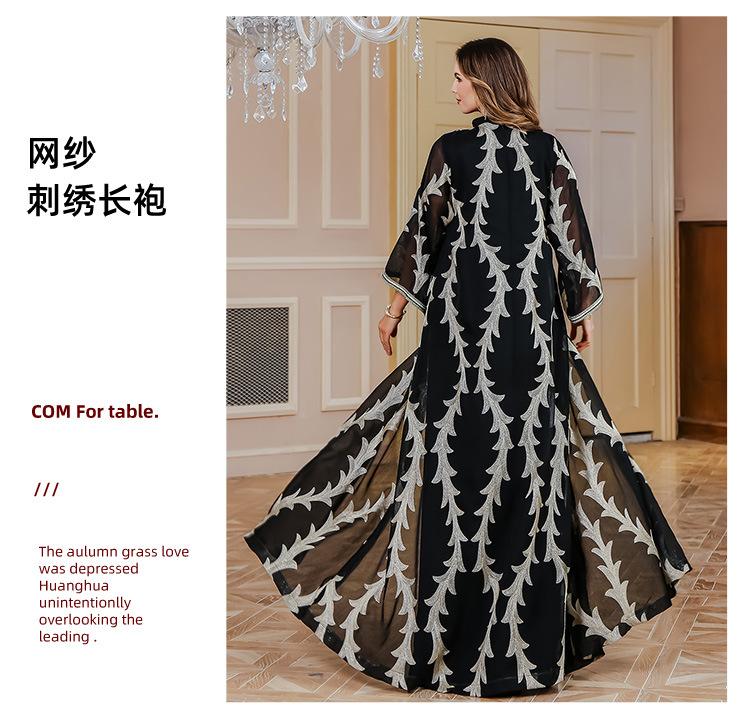 Verano Nuevo Bata de Malla Bordada de Alta Resistencia Vestido de Fiesta Dubái Falda Larga de Oriente Medio Bata para Mujer Musulmana