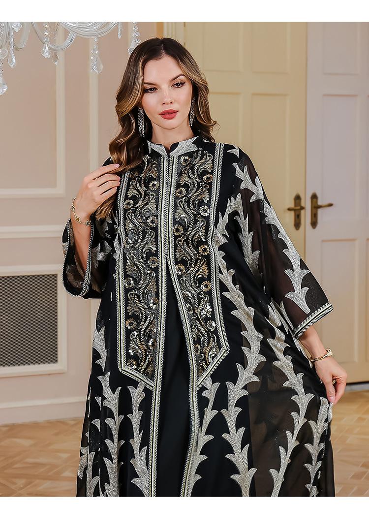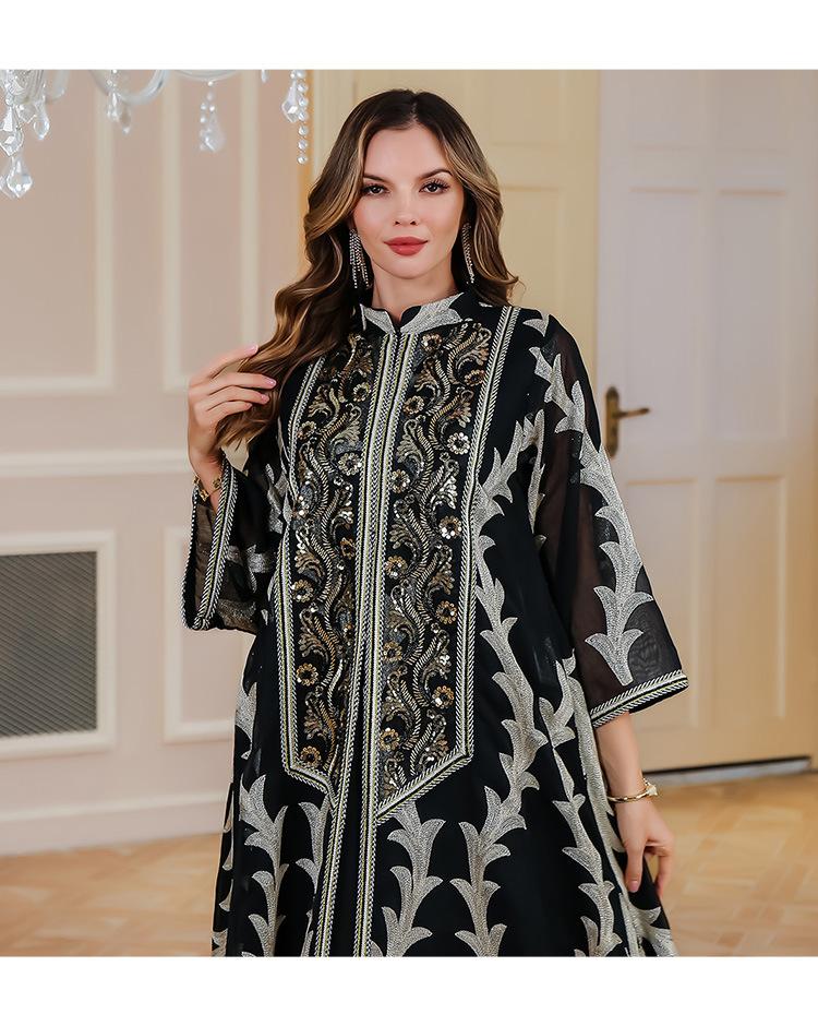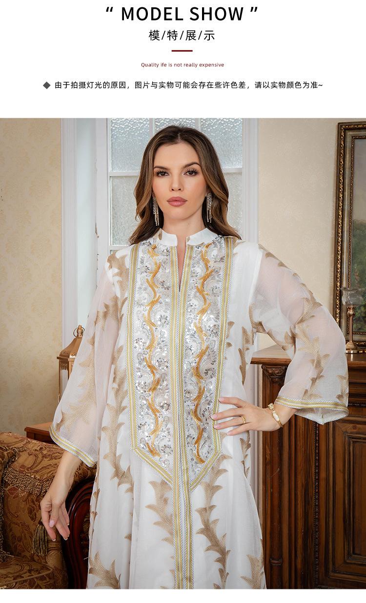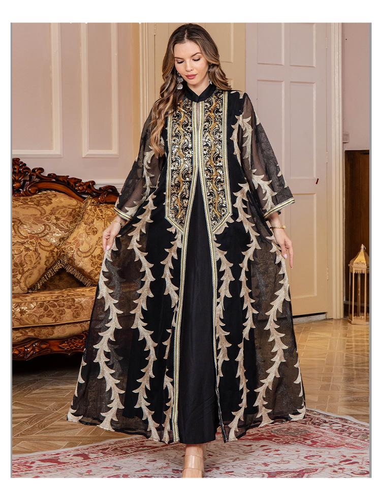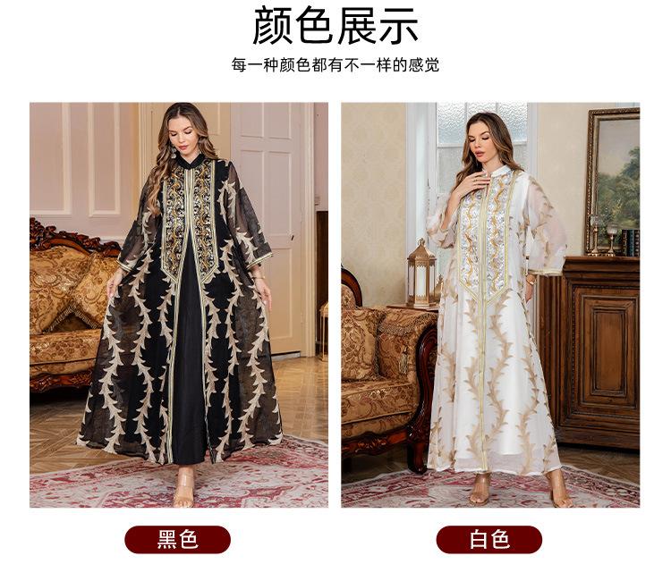 Verano Nuevo Bata de Malla Bordada de Alta Resistencia Vestido de Fiesta Dubái Falda Larga de Oriente Medio Bata para Mujer Musulmana