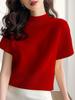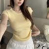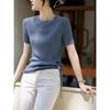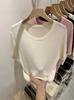 Verano 2025 Nueva Camiseta de Punto de Manga Corta Cuello Redondo Suéter Holgado Ajustado Base Moda Top Corto Camiseta Mujer