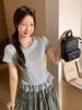 Playera Versátil de Encaje Dulce con Manga Corta para Mujer Verano Nuevo Diseño Look Adelgazante Top de Hombro Derecho