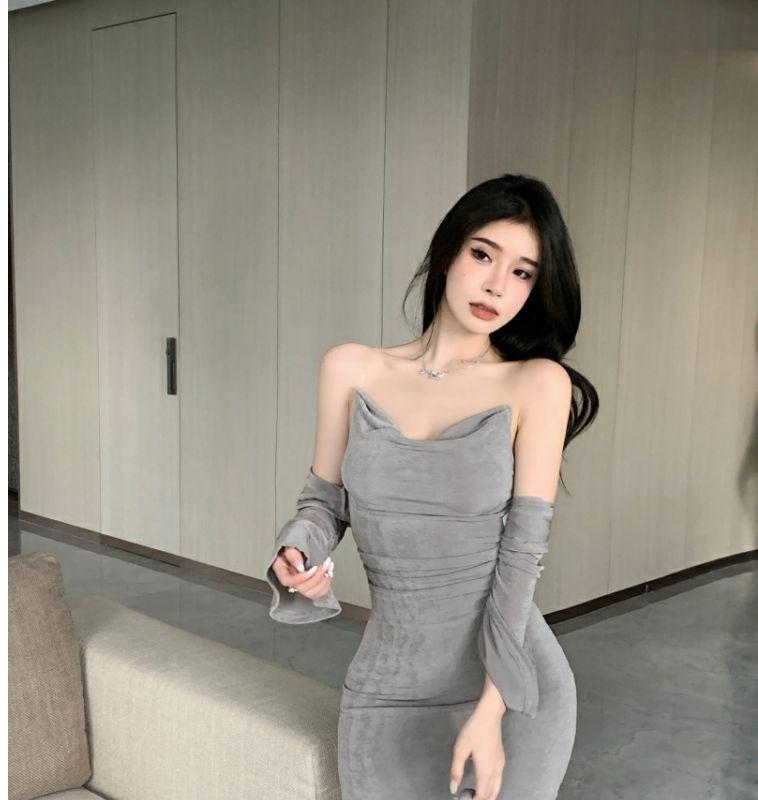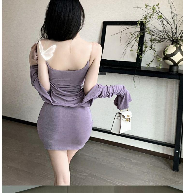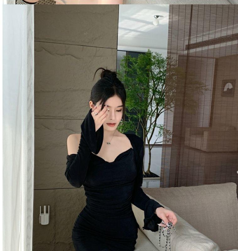 [100,000 Vendidos por Mes] Vestido sin Mangas de un Hombro para Chicas Hot Look Adelgazante de Dos Piezas Cárdigan de Manga Larga Nuevo Traje