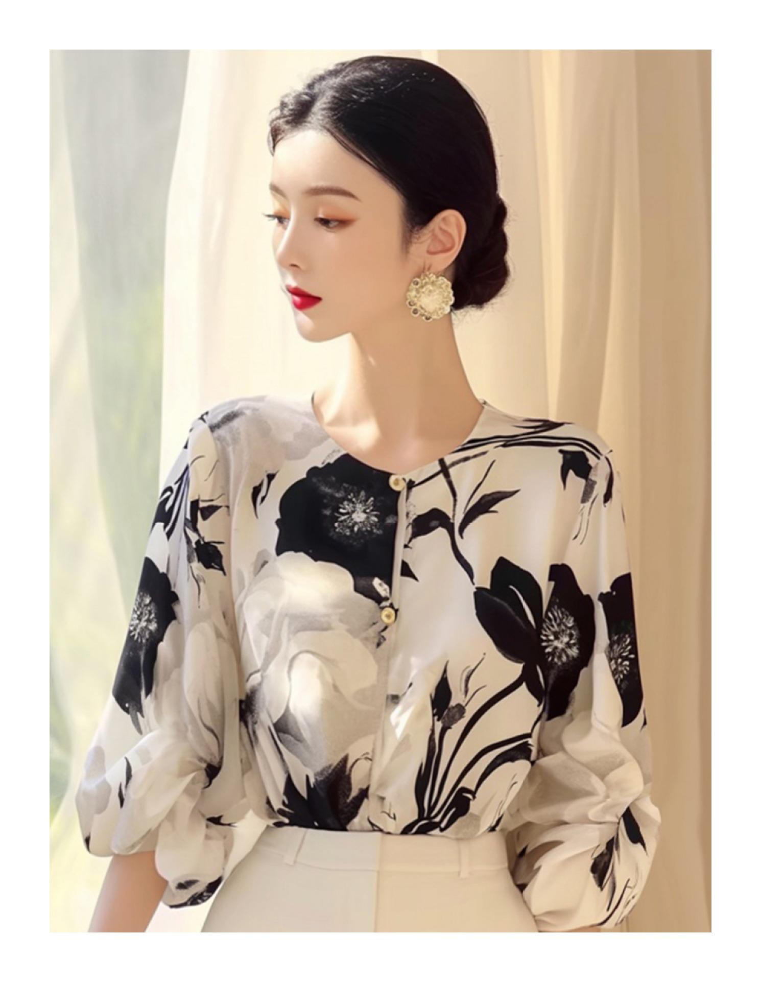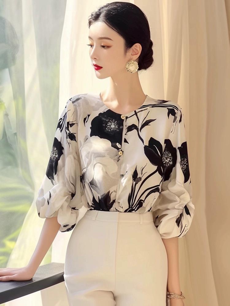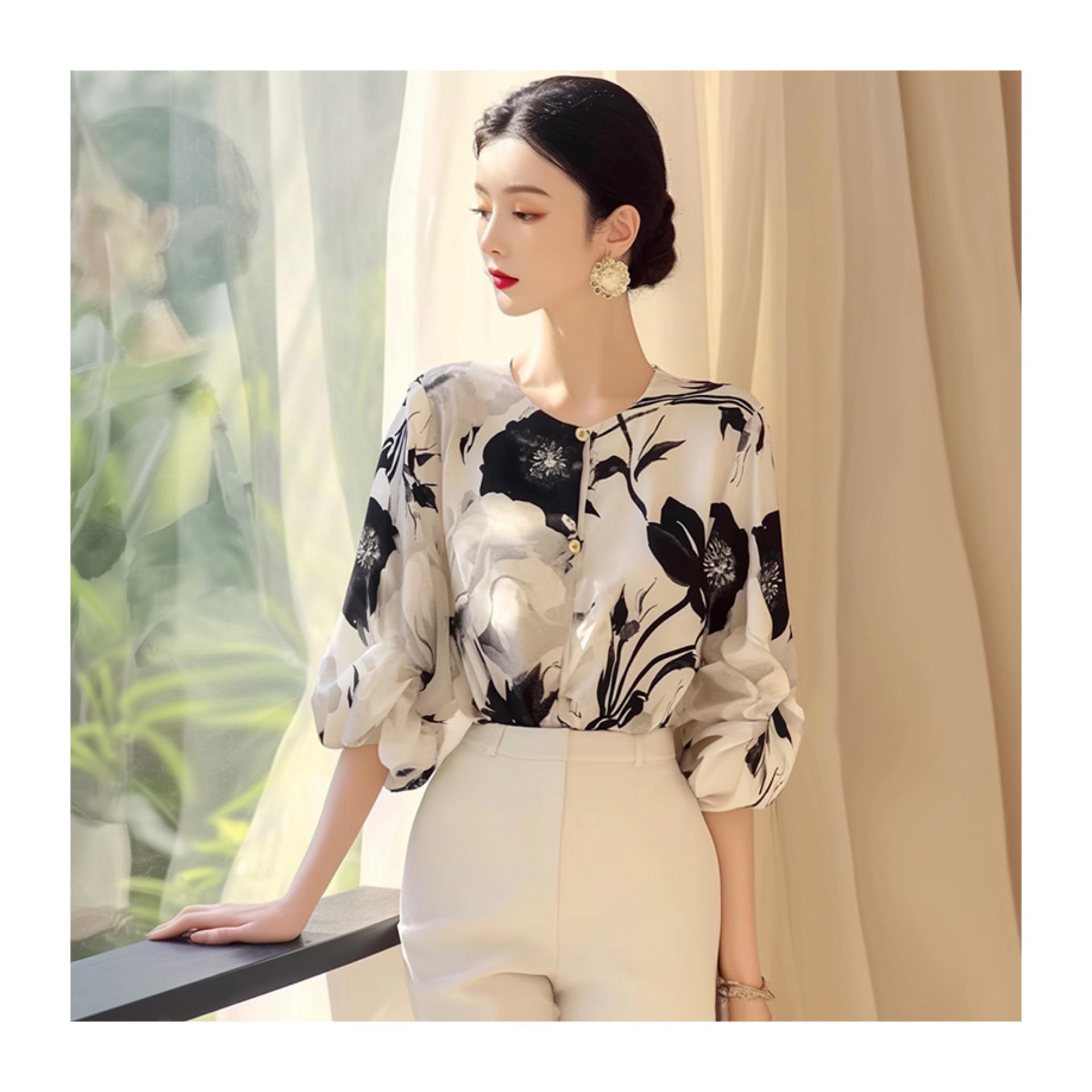Camisa Estampada Sofisticada de Diseño Nicho Francés Maduro Ligero de Verano