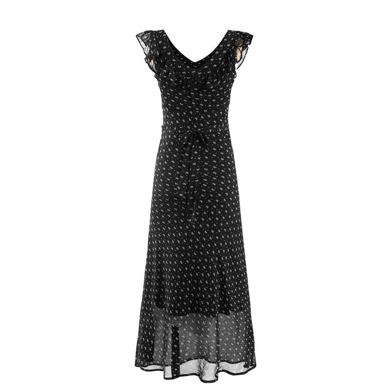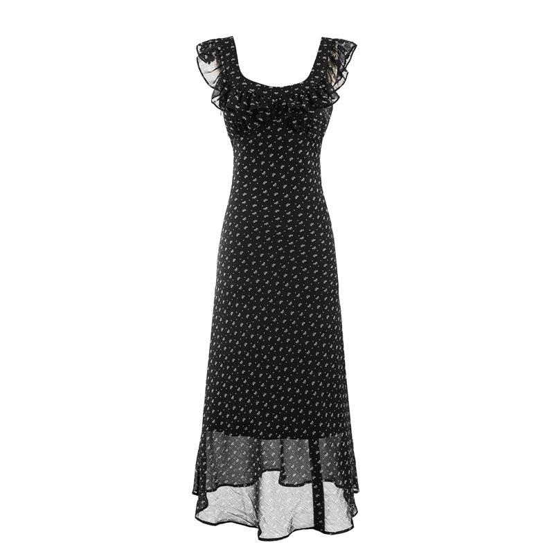 Vestido de Verano Largo para Mujer Estilo Francés Dulce con Volantes, Mangas Vuelo y Cintura Entallada para Adelgazar, para Vacaciones