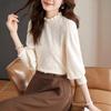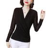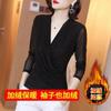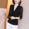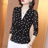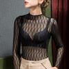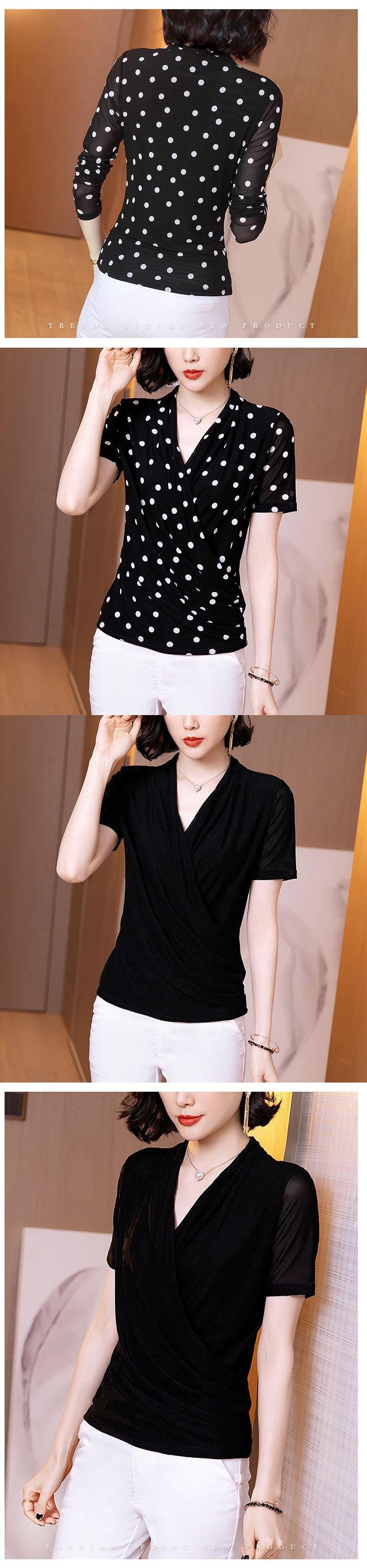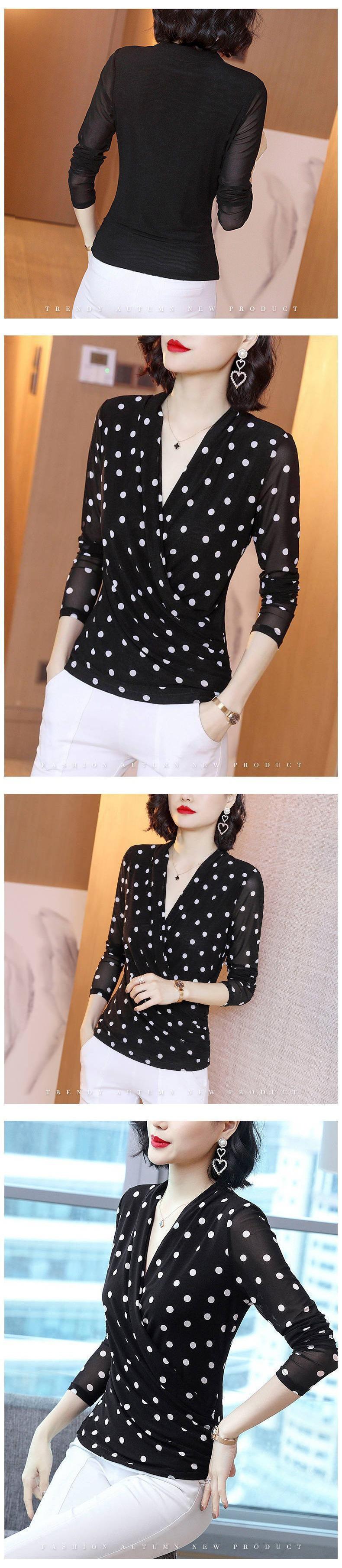 Polo de encaje de manga larga con lunares para mujer, novedad de 2024, elegante, combinable, con escote tipo polo y bajo que cubre el vientre.