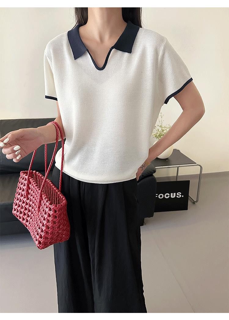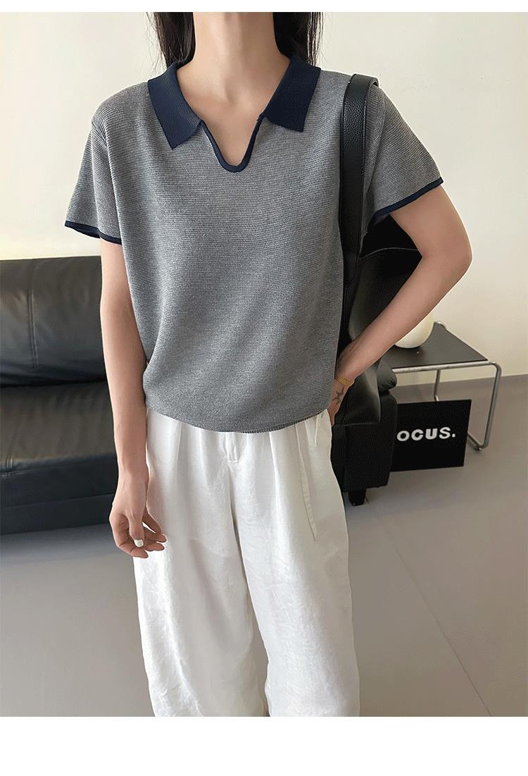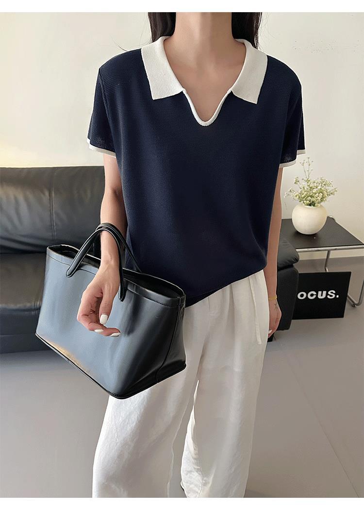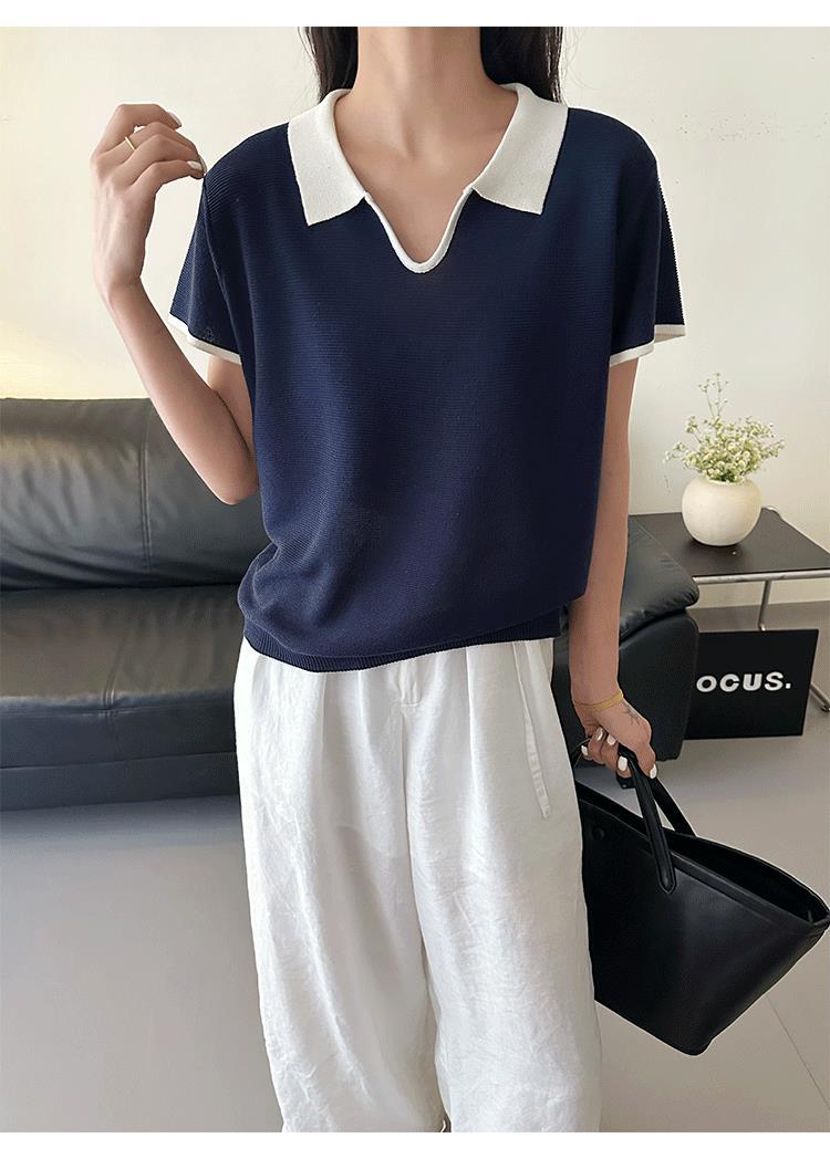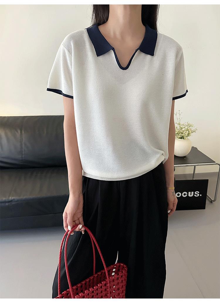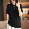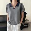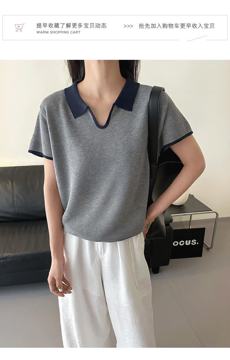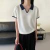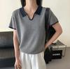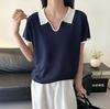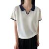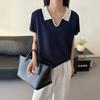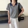 Playera de Punto Tencel de Solapa y Manga Corta para Mujer 2025 Nuevo Verano Delgada Diseño Holgado Nicho Tops para Mujer