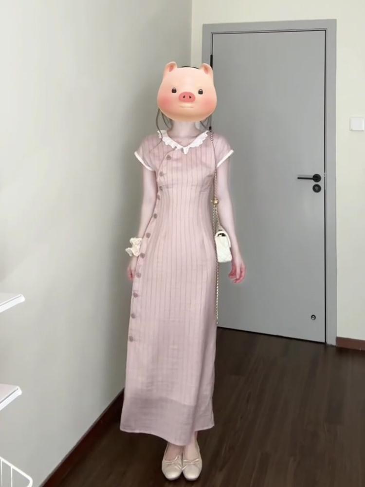 Nuevo Vestido de Manga Corta Estilo Chino para Mujer 2025 Verano Nuevo Estilo Chino Versión Mejorada de Cheongsam Aspecto Adelgazante de Cintura Falda de Largo Medio