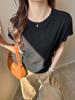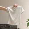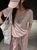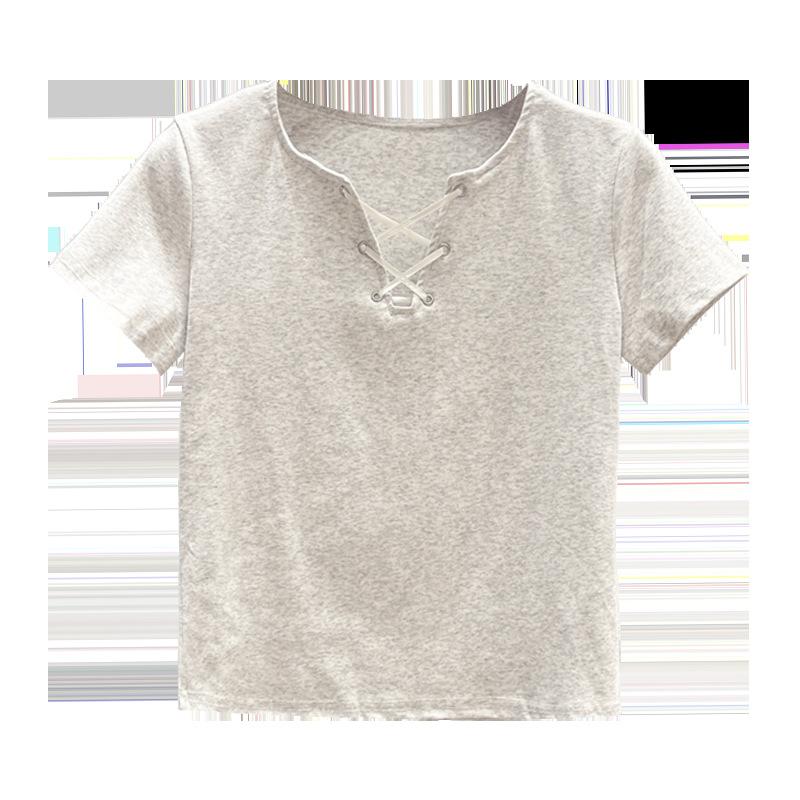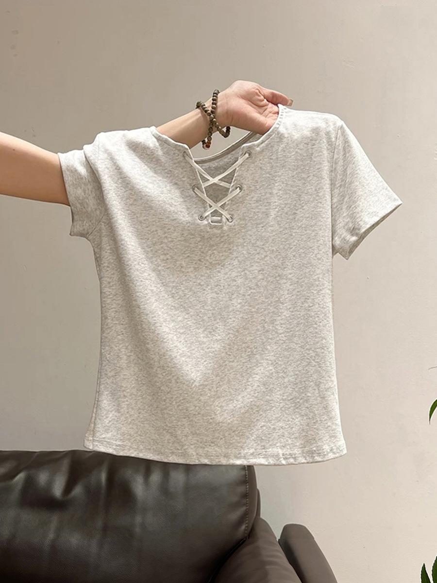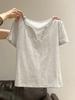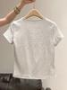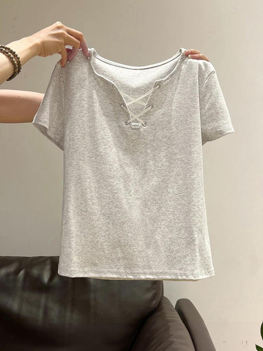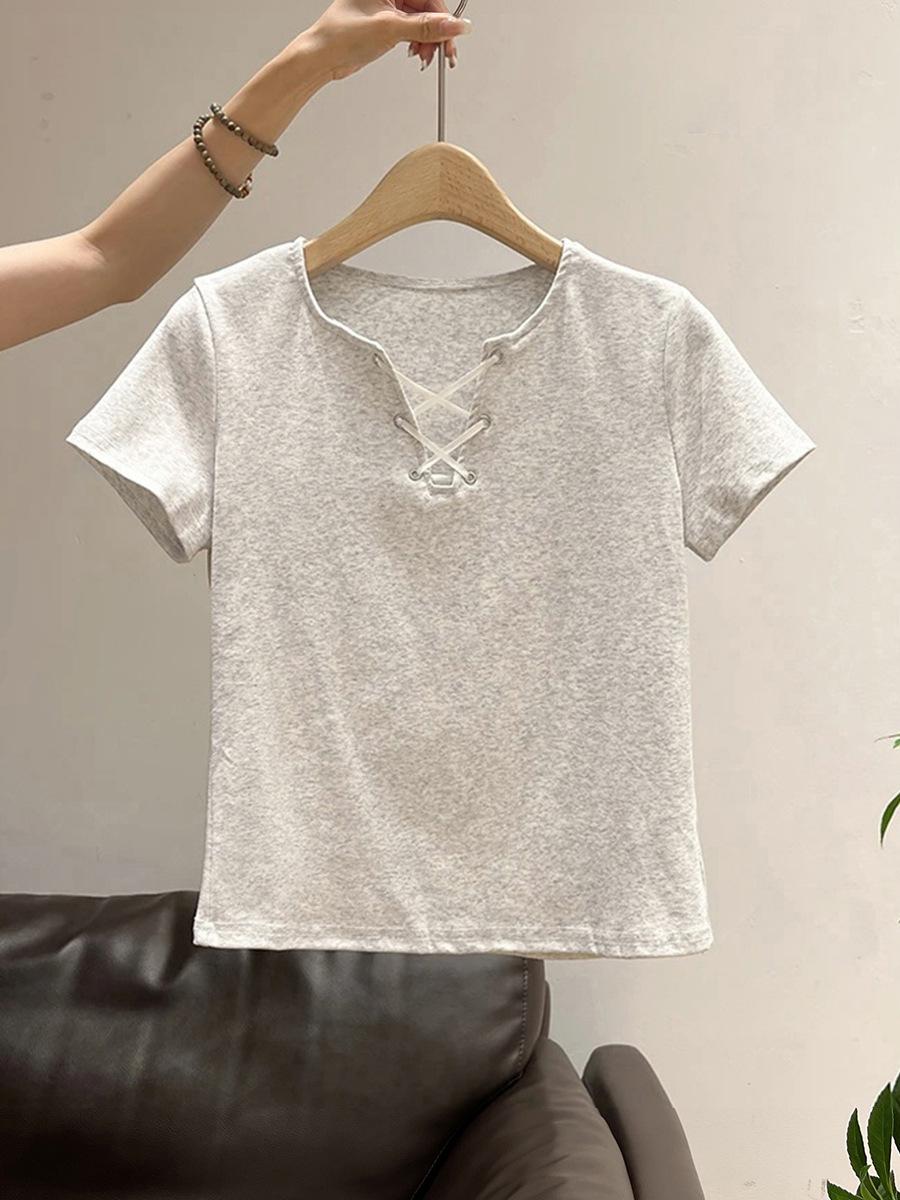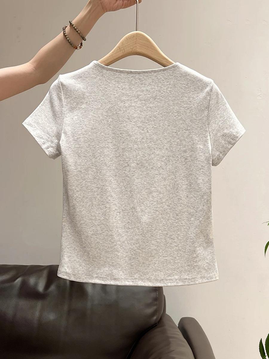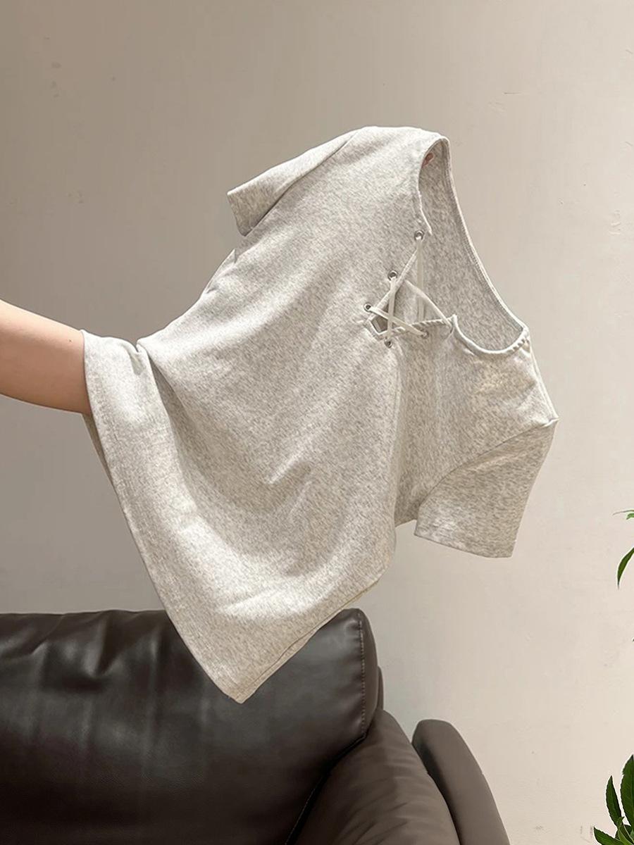 Camiseta de Tirantes con Cuello en V Gris de Manga Corta para Mujer Verano 2025 Look Adelgazante Cintura y Hombro Derecho Top