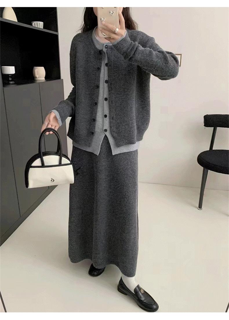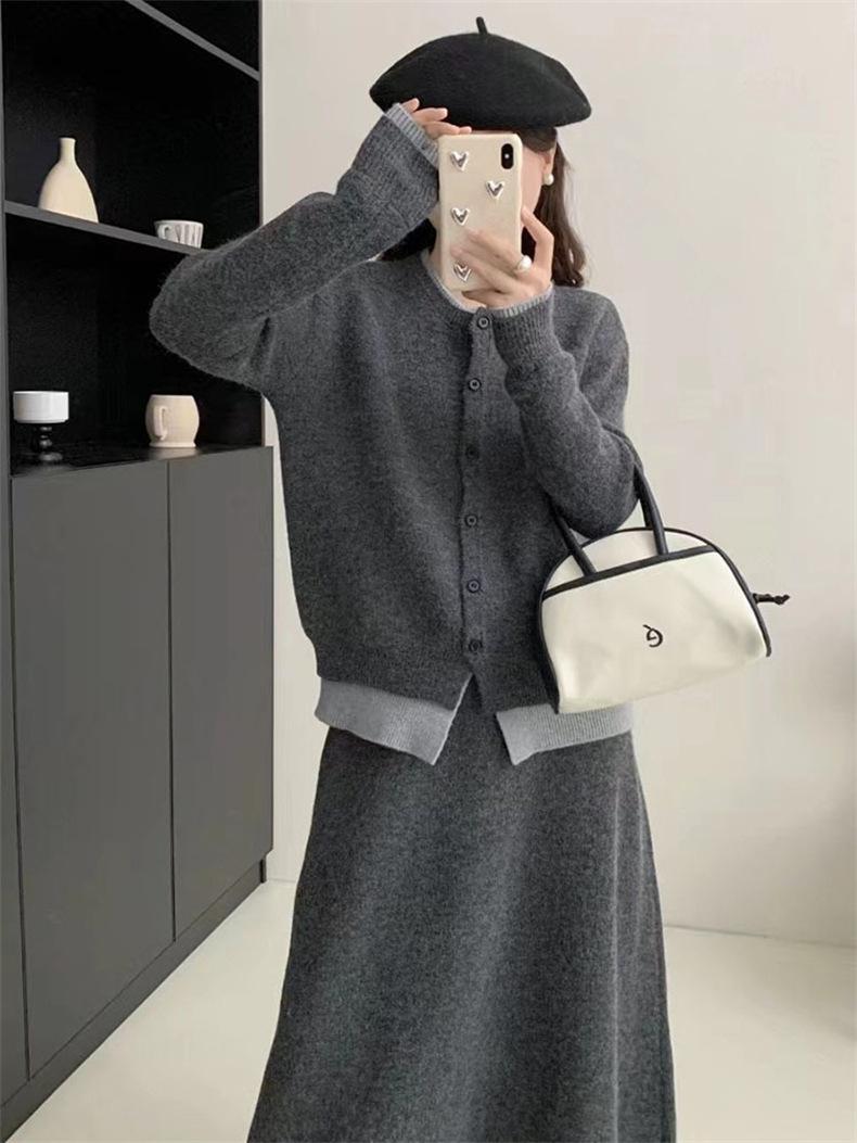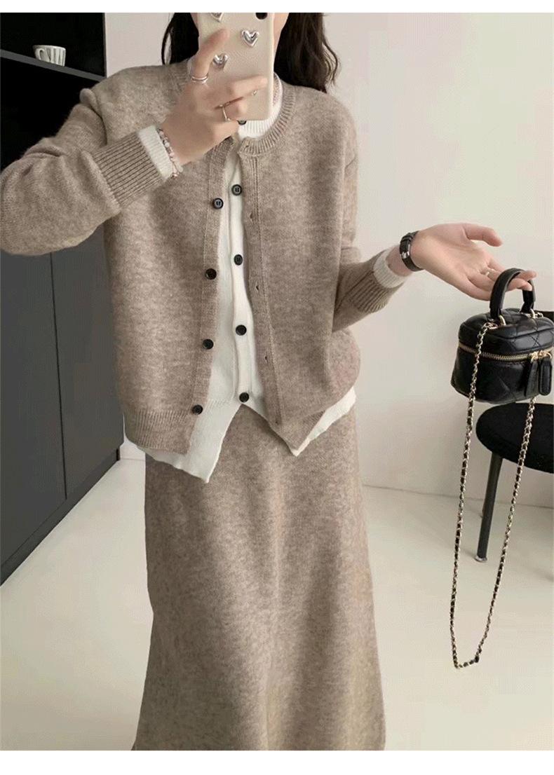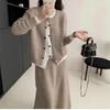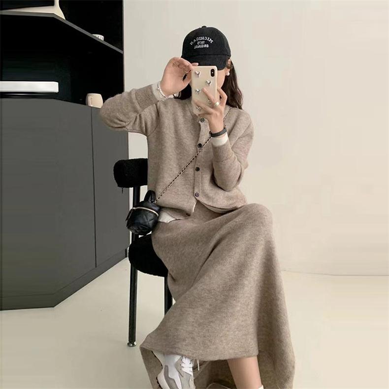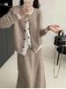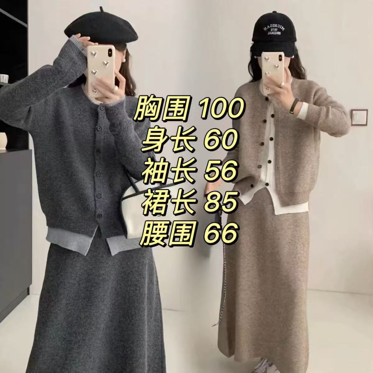 Nuevo Traje de Falda Cárdigan Falso de Dos Piezas 2025 para Mujer Otoño Estilo Casual Holgado Look Adelgazante Traje de Dos Piezas para Mujer