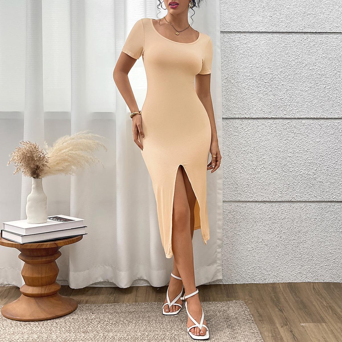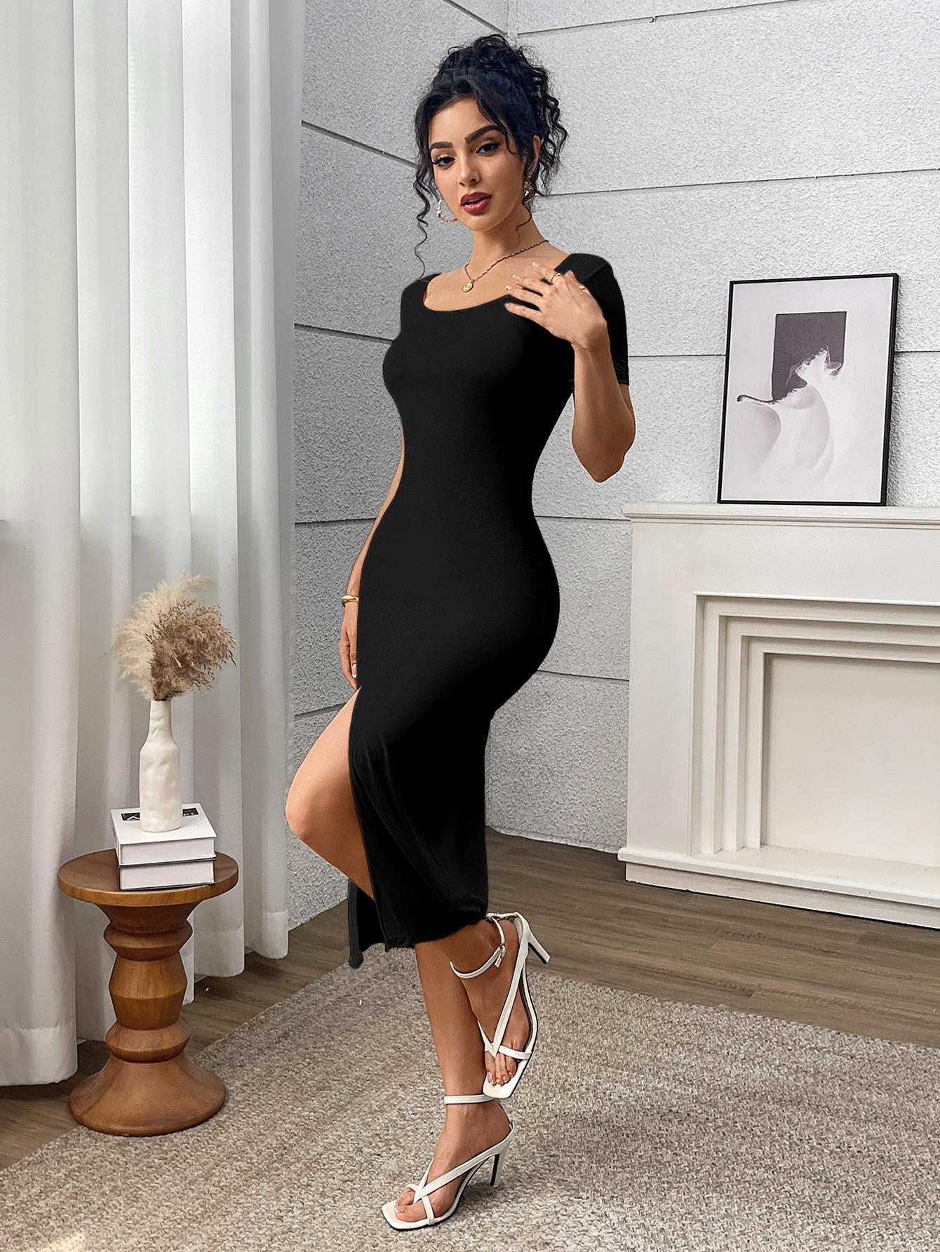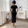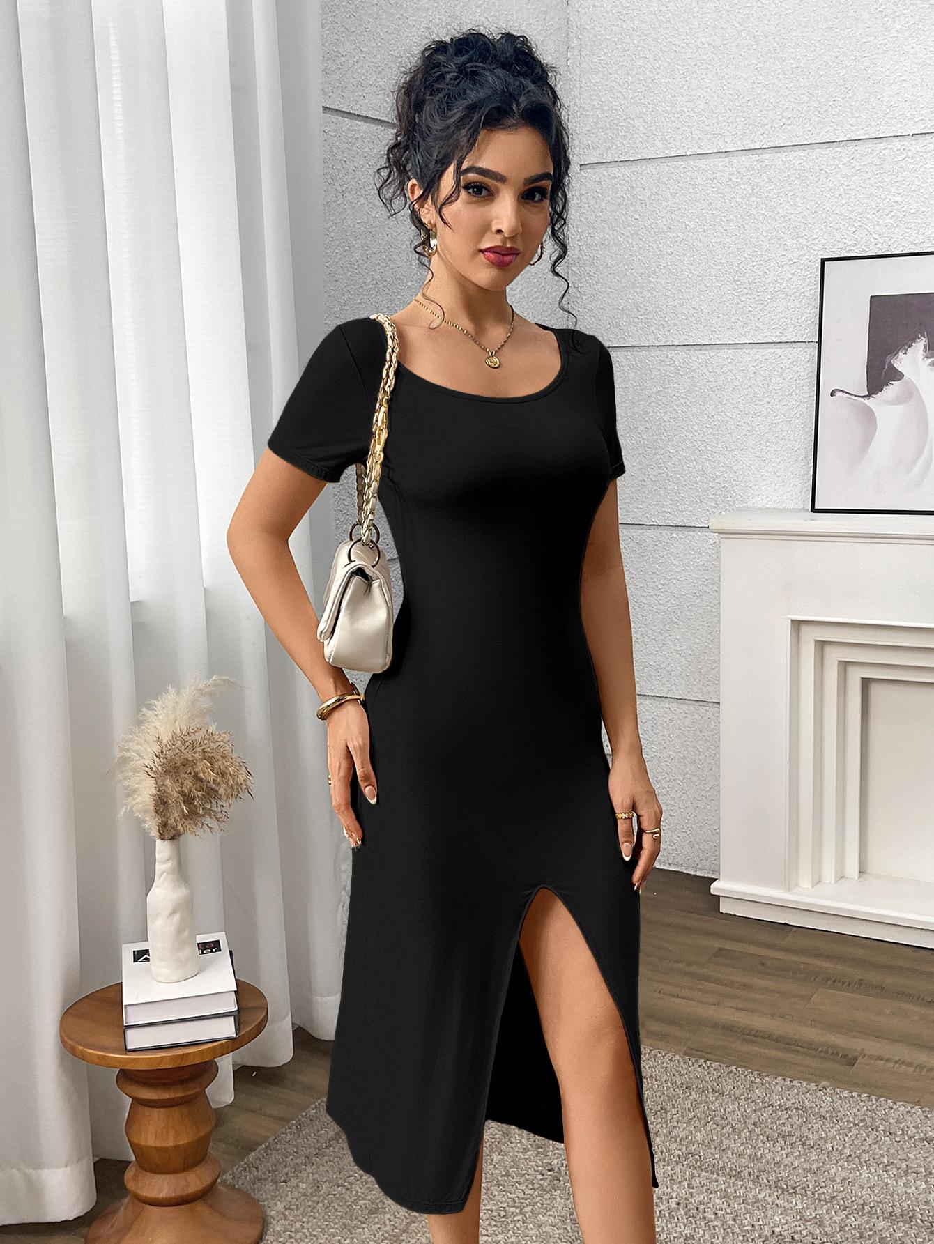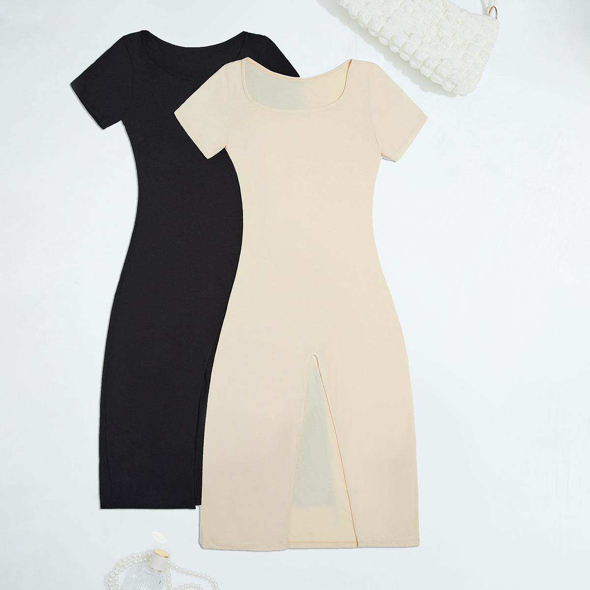 Vestido de cuello retro francés para mujer Verano Nuevo Adelgazante Cintura Deseo Puro Abertura Chica Caliente Cubre Caderas Falda Midi para Mujer