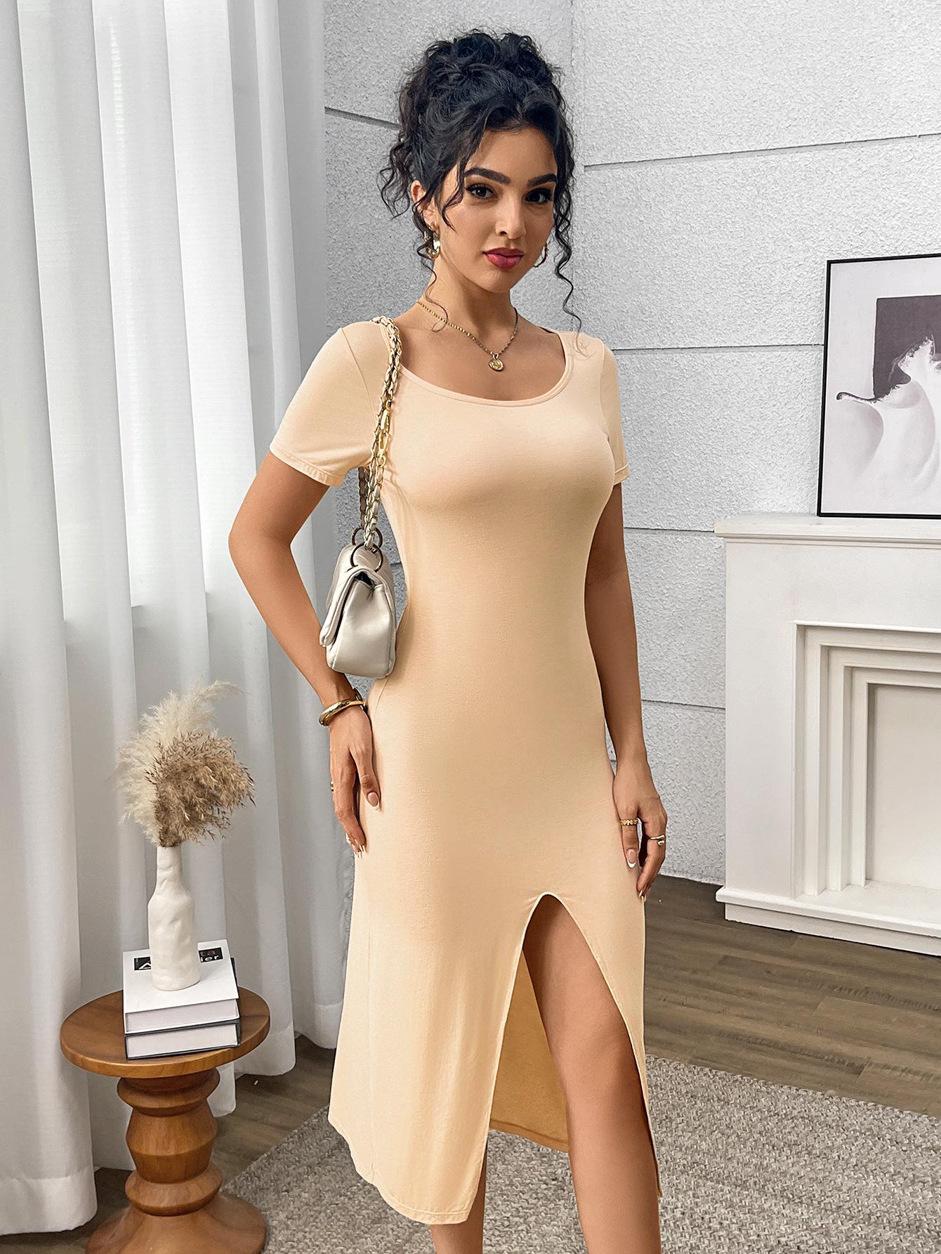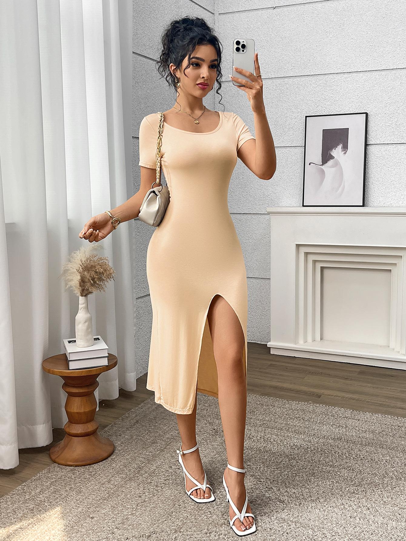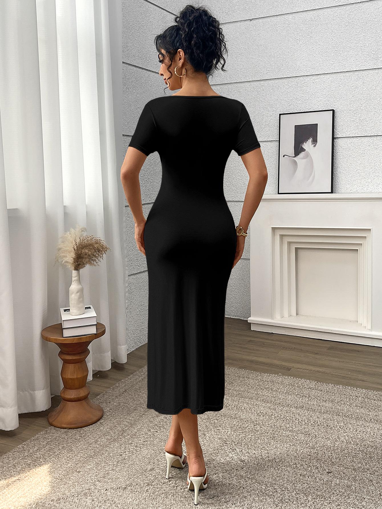 Vestido de cuello retro francés para mujer Verano Nuevo Adelgazante Cintura Deseo Puro Abertura Chica Caliente Cubre Caderas Falda Midi para Mujer