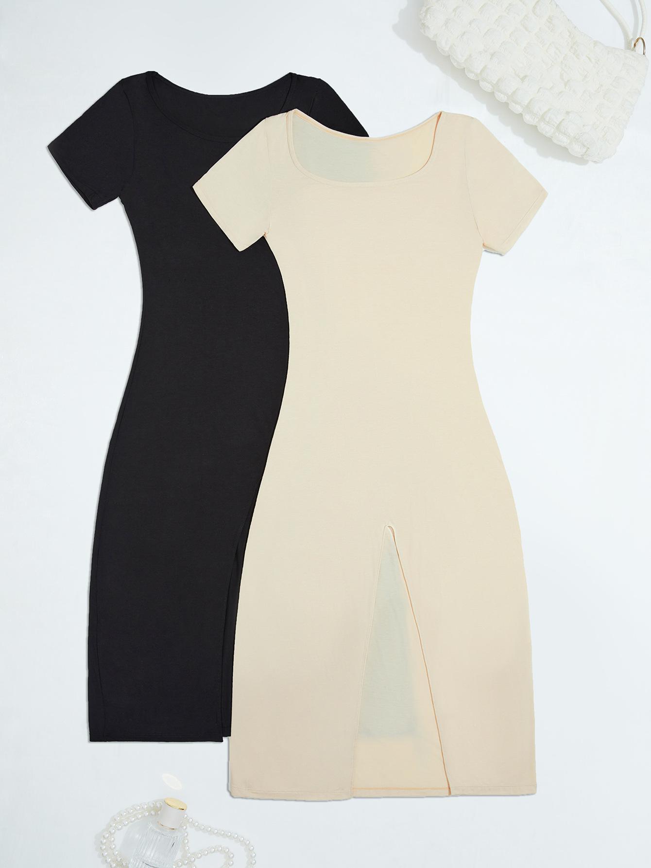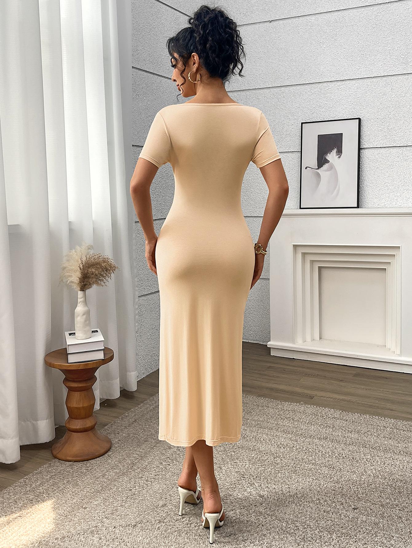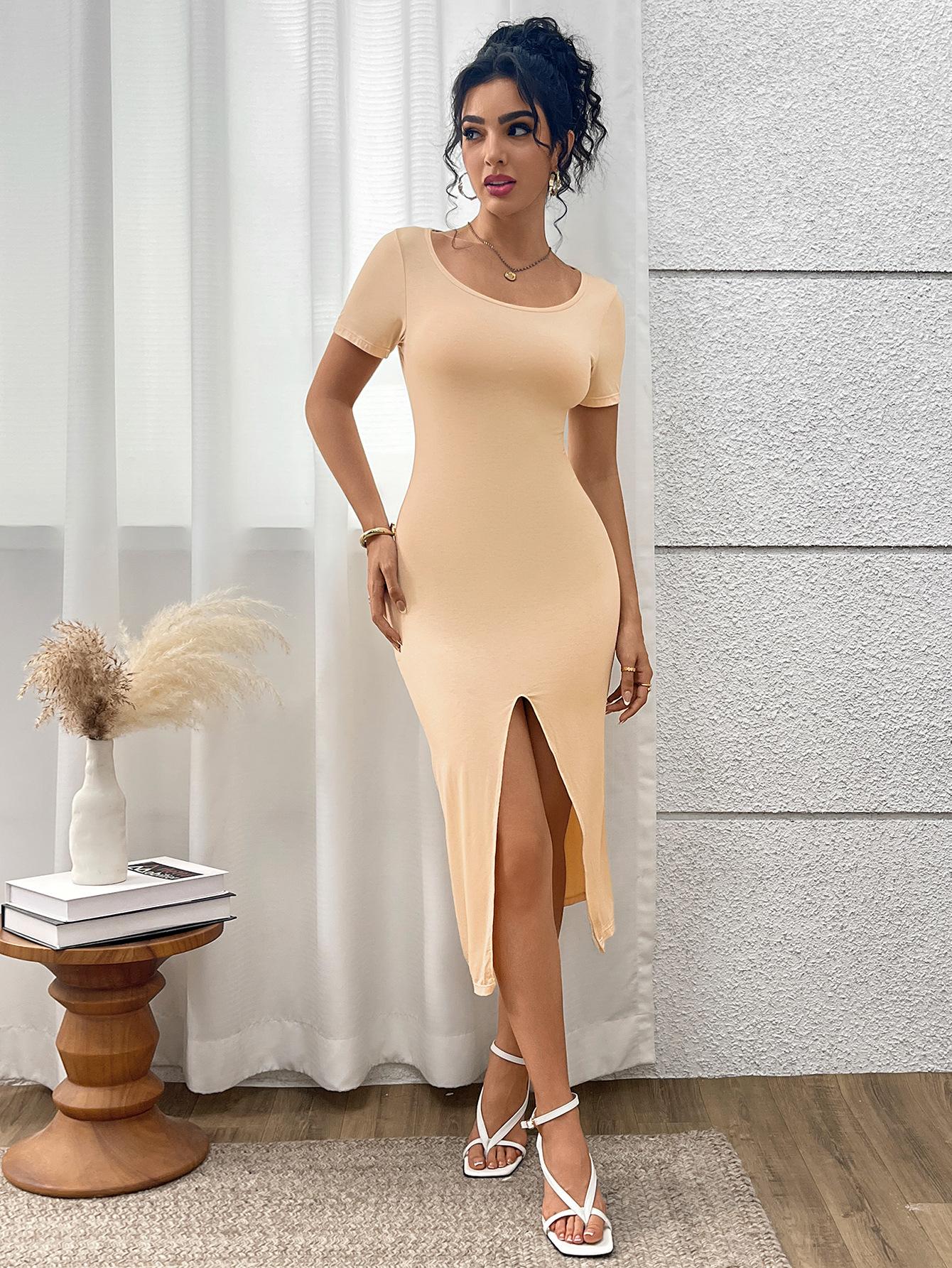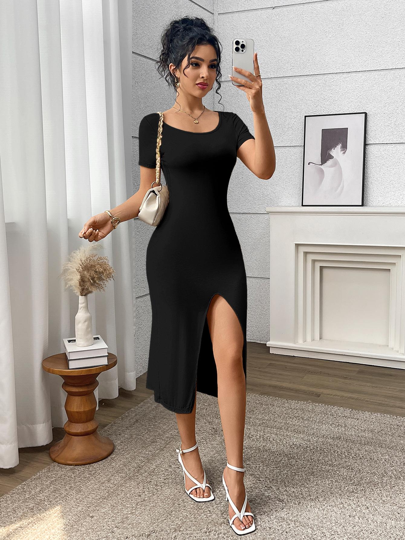 Vestido de cuello retro francés para mujer Verano Nuevo Adelgazante Cintura Deseo Puro Abertura Chica Caliente Cubre Caderas Falda Midi para Mujer