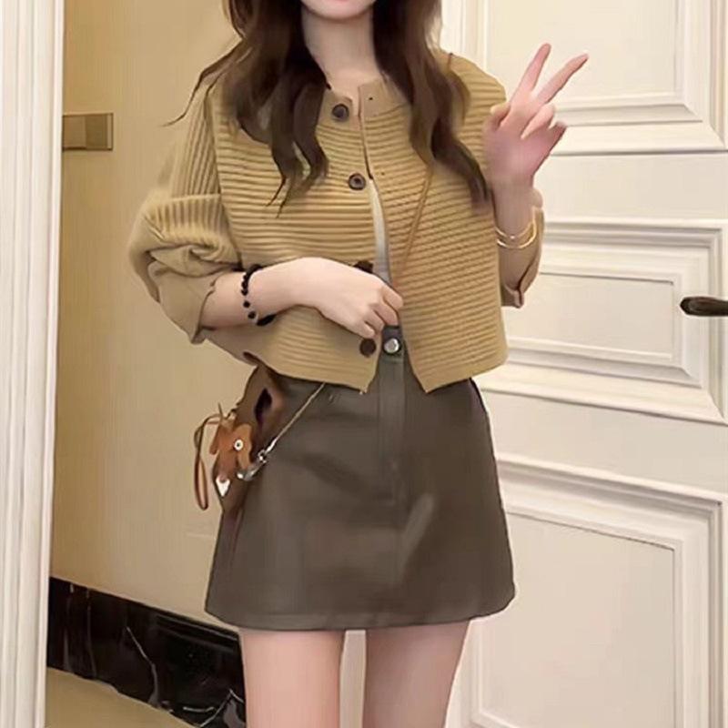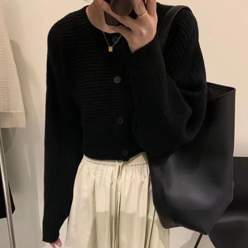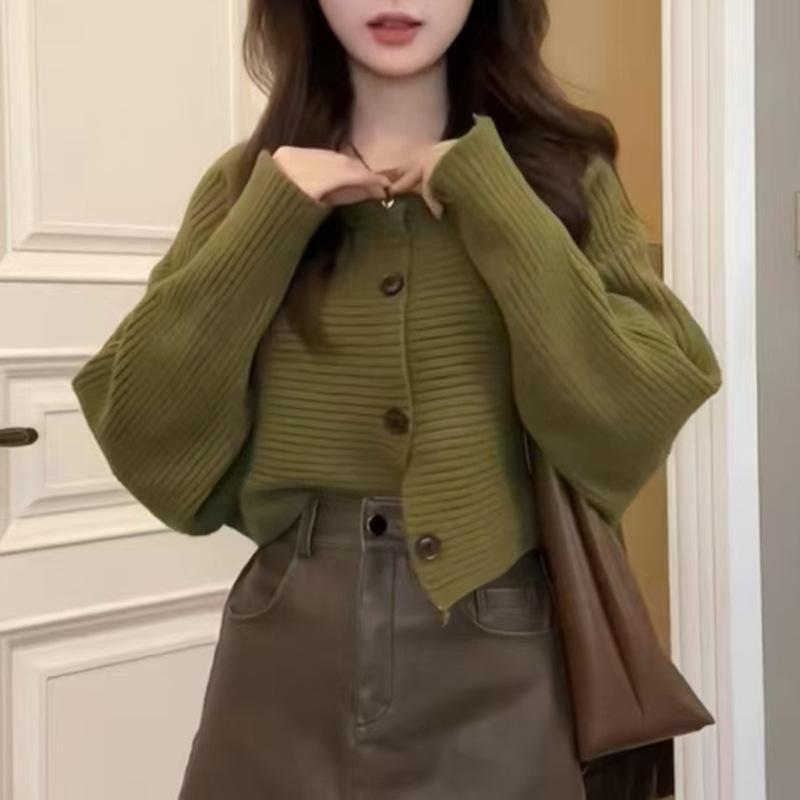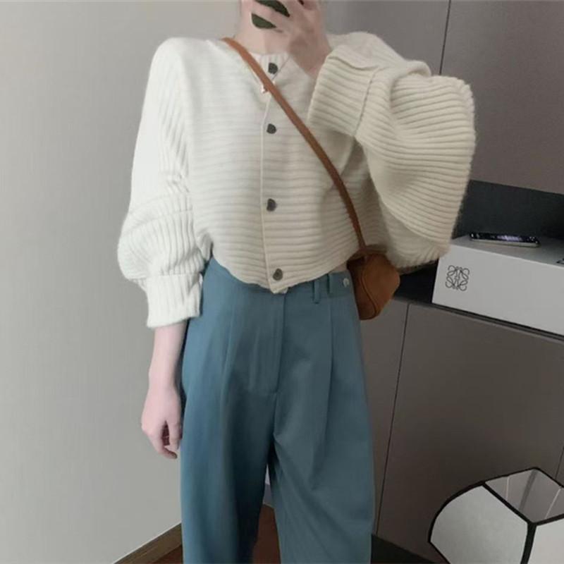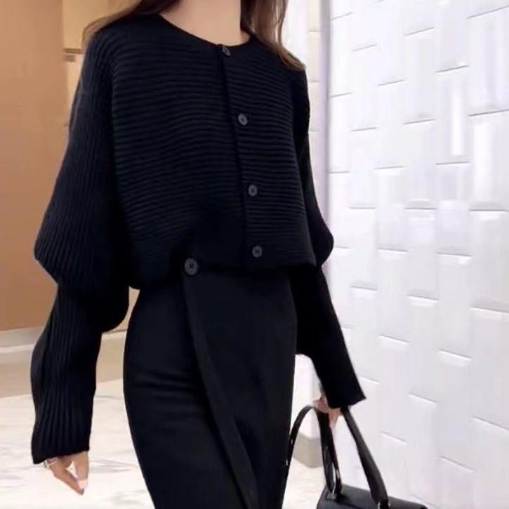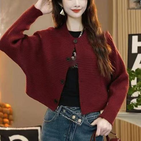Cárdigan de punto para mujer 2025 Ropa exterior Estilo nuevo Estilo holgazán Cuello redondo Mangas murciélago sueltas Versátil Casual Chaqueta de otoño e invierno para mujer