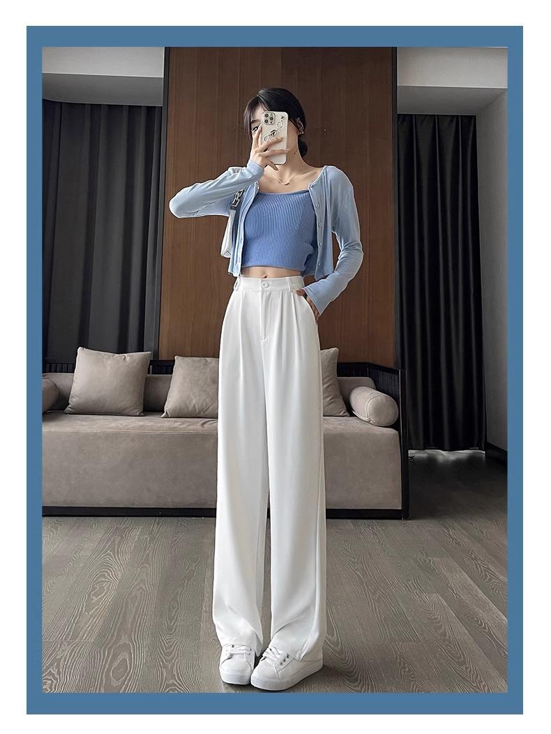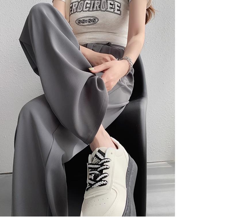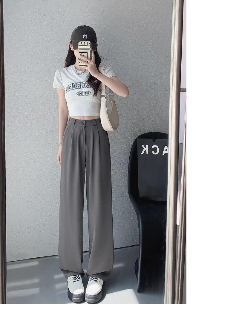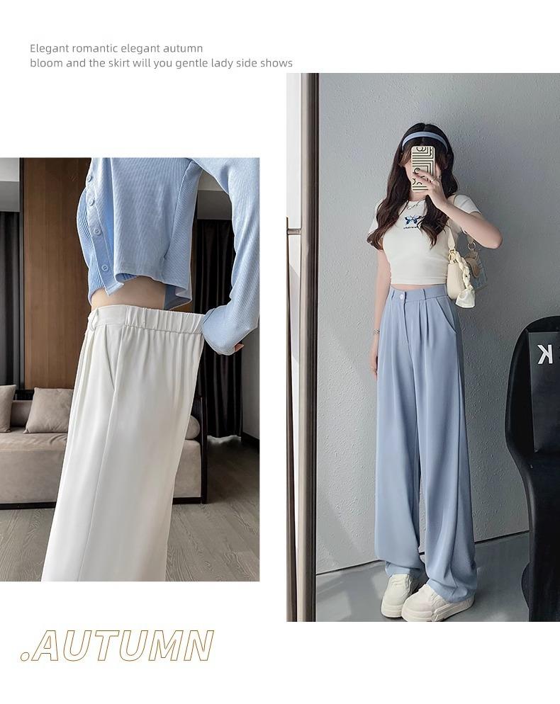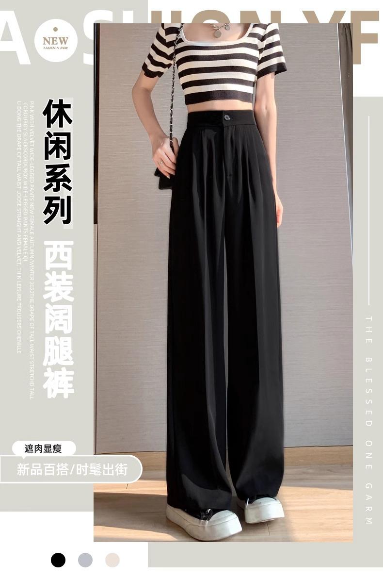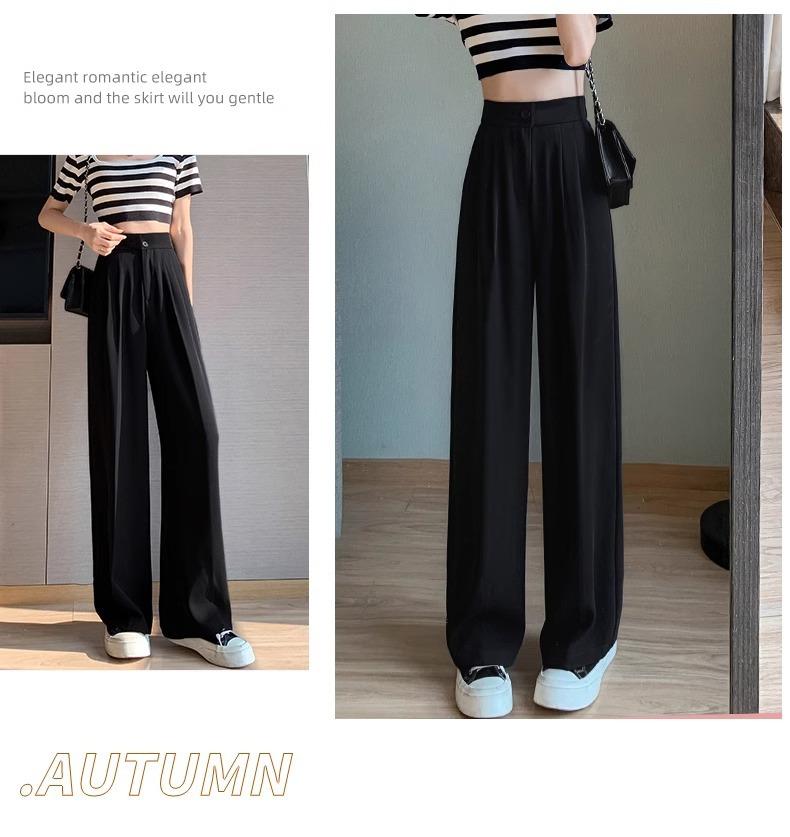 Pantalones casuales de pierna ancha estrecha nuevos de Primavera y Verano 2025 para mujer, de cintura alta, drapeados, holgados, rectos, tipo traje