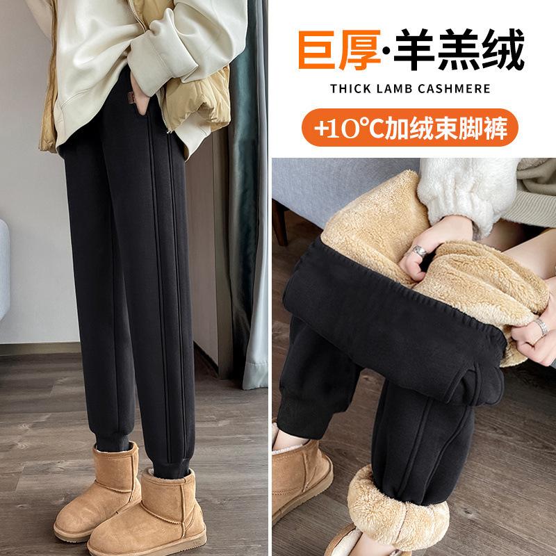 Pantalones de Maternidad Cálidos con Forro Polar Grueso para Invierno, Pantalones Deportivos de Maternidad de Lana de Cordero, Pantalones Deportivos Holgados de Algodón