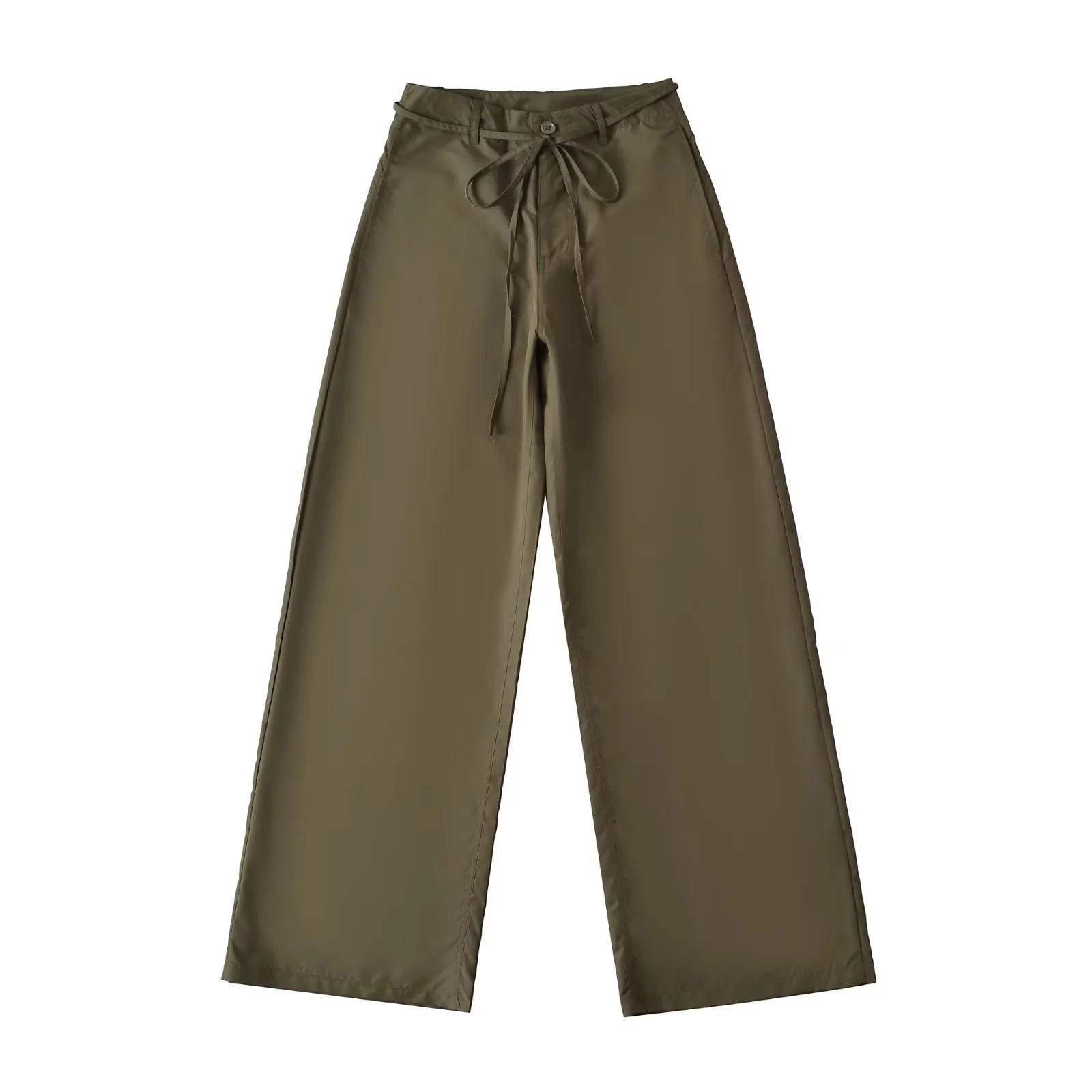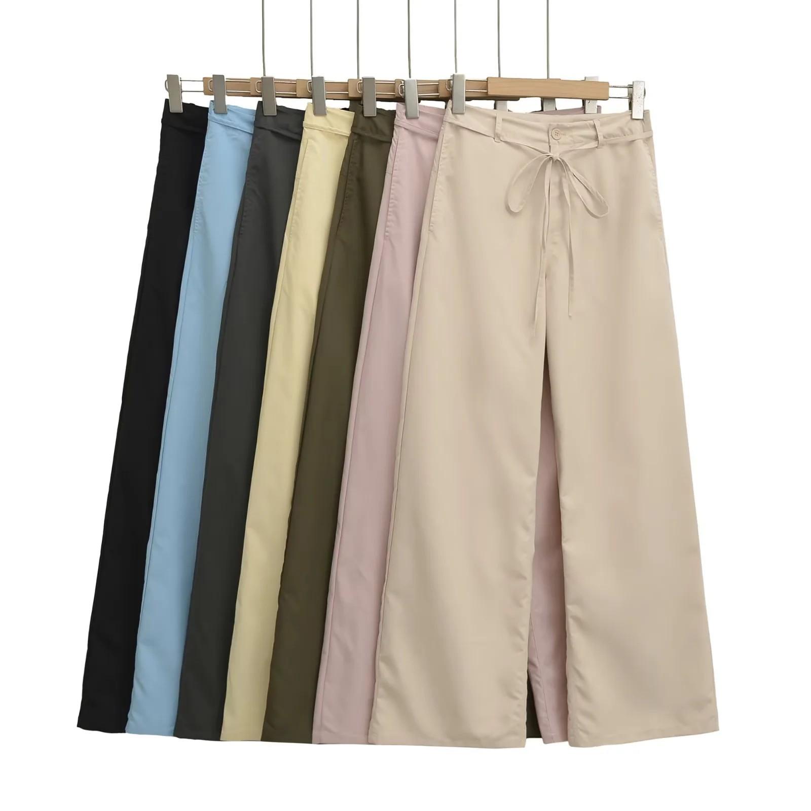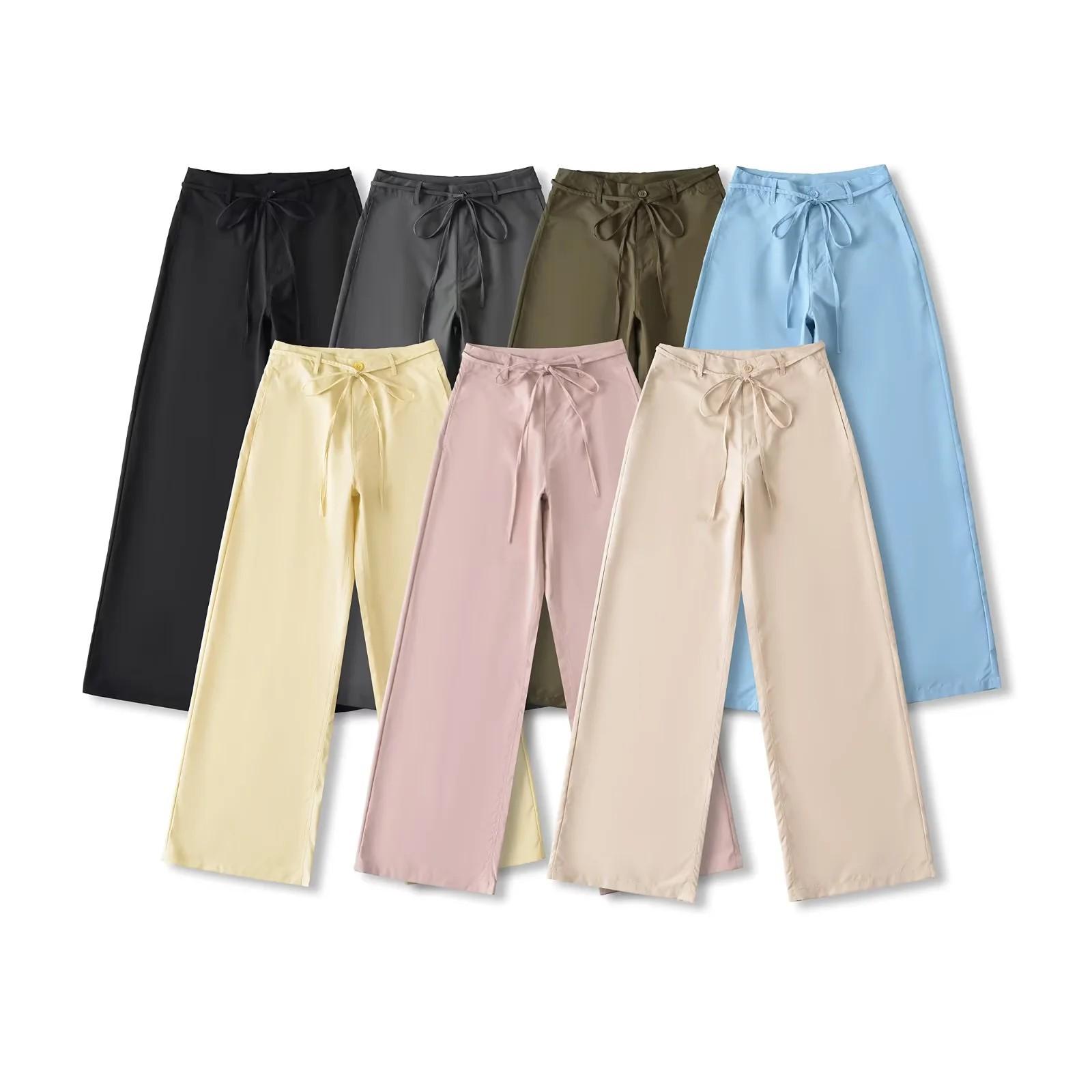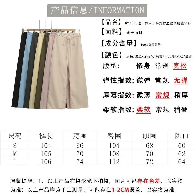 Pantalones Rectos Casuales de Secado Rápido 2025 Verano Nuevo Cintura Baja con Cordones Holgados Versátiles Deportes Fitness Pantalones de Pierna Ancha