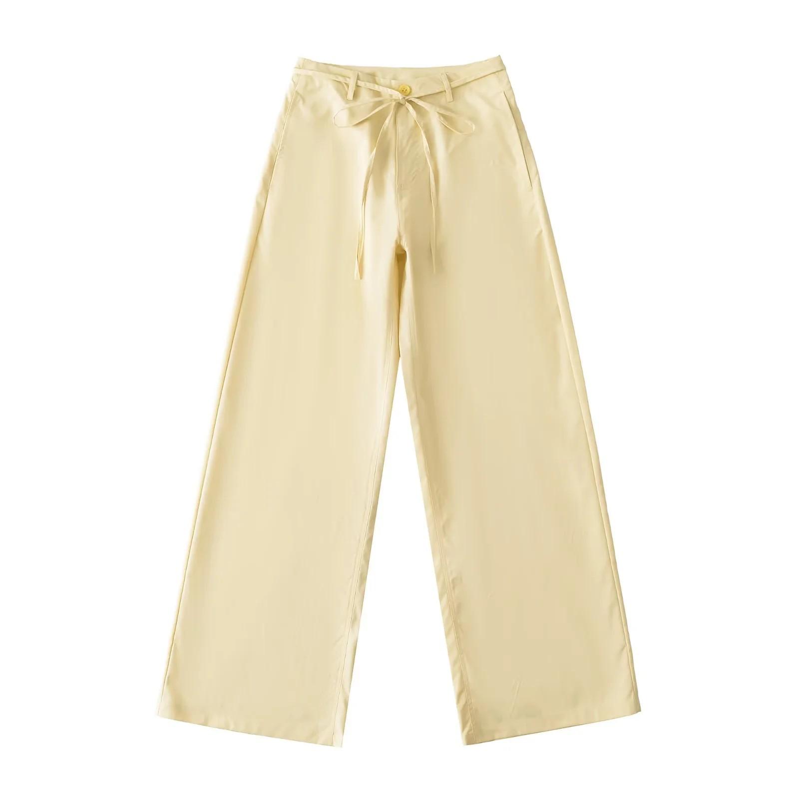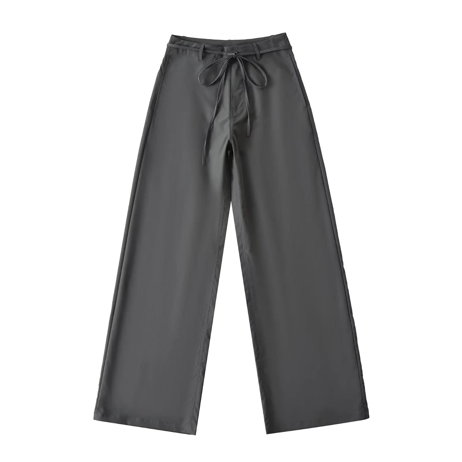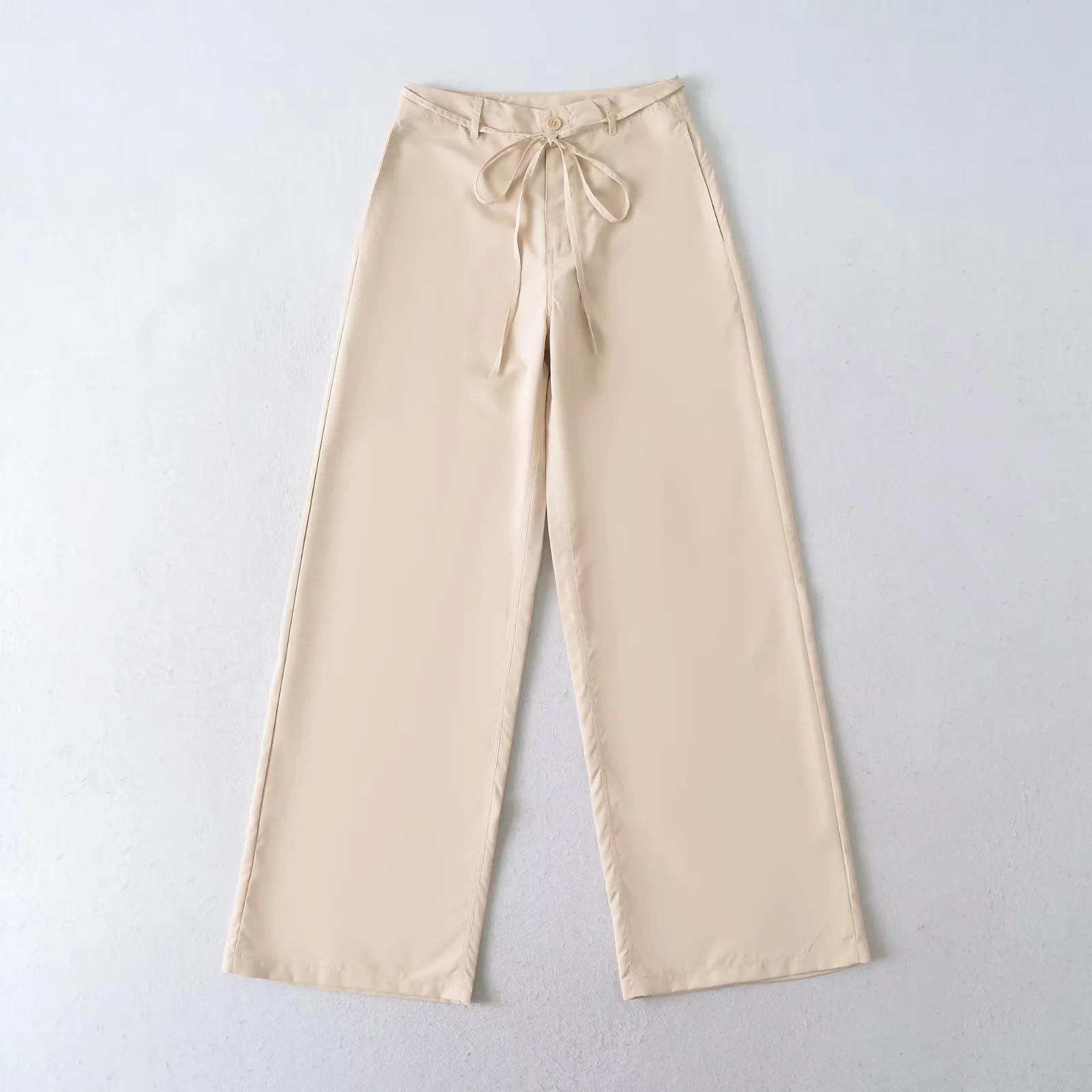 Pantalones Rectos Casuales de Secado Rápido 2025 Verano Nuevo Cintura Baja con Cordones Holgados Versátiles Deportes Fitness Pantalones de Pierna Ancha