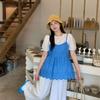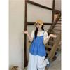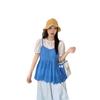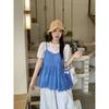 Blue sling [huaduoduo selection], White shirt [huaduoduo selection], Blue suspenders + white shirt [two-piece set]