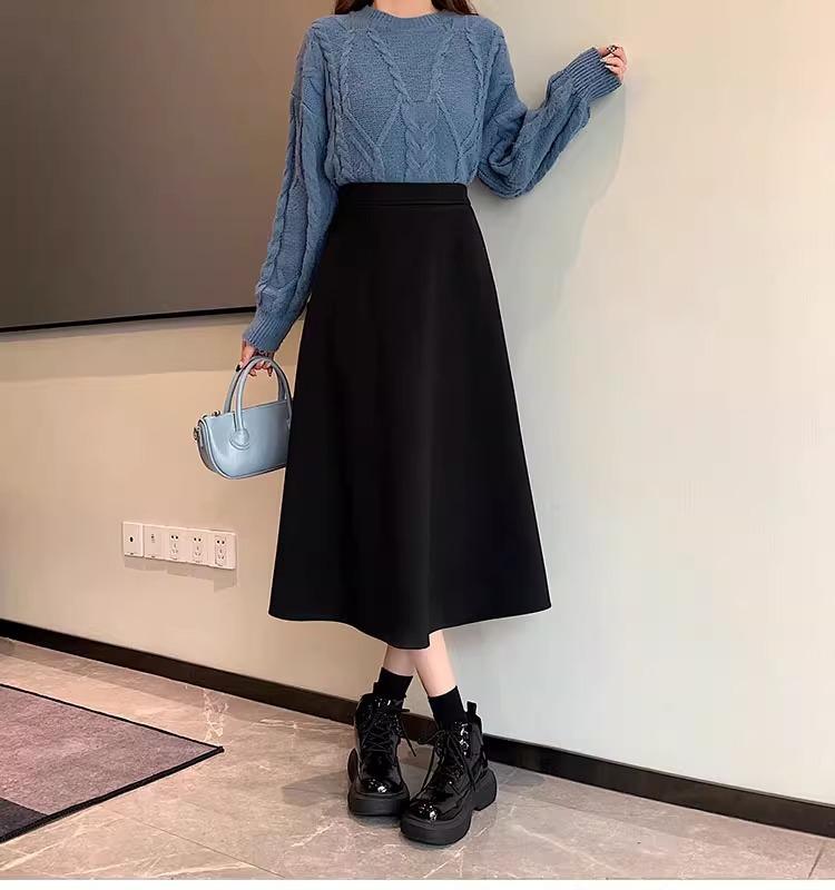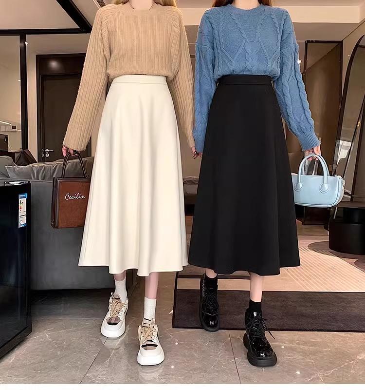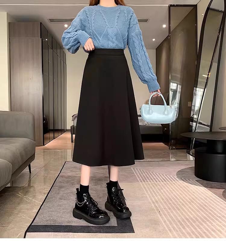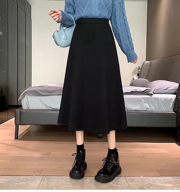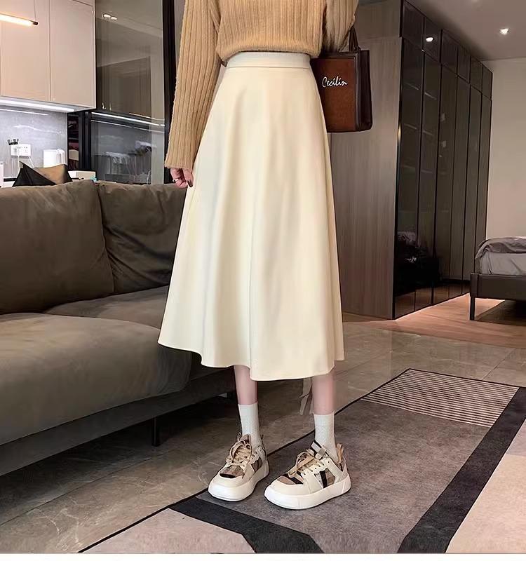 Falda estilo coreano primavera y otoño 2025, nueva, de cintura alta, corte A, longitud media, dobladillo grande, versátil, estilo paraguas.