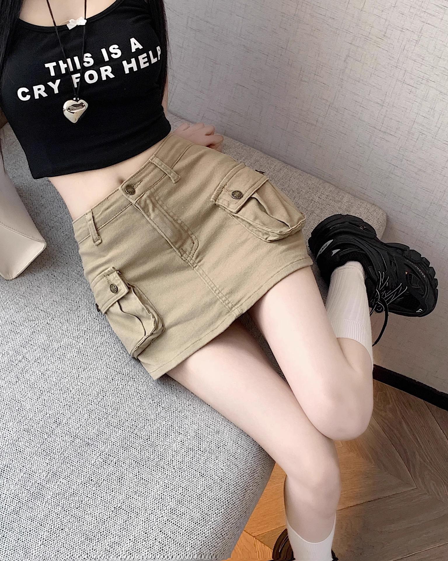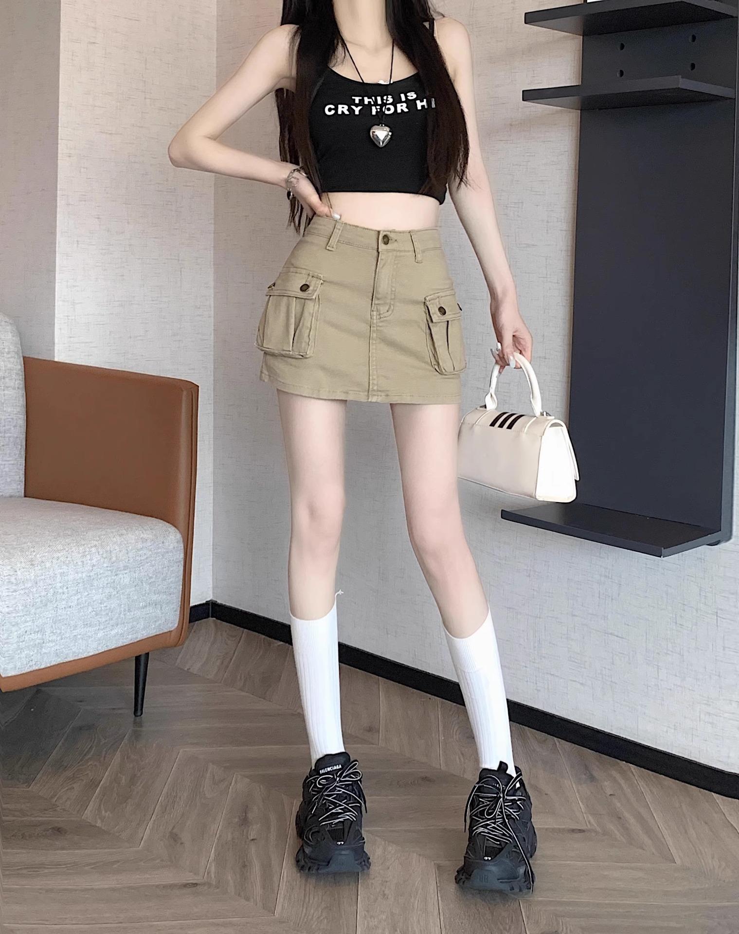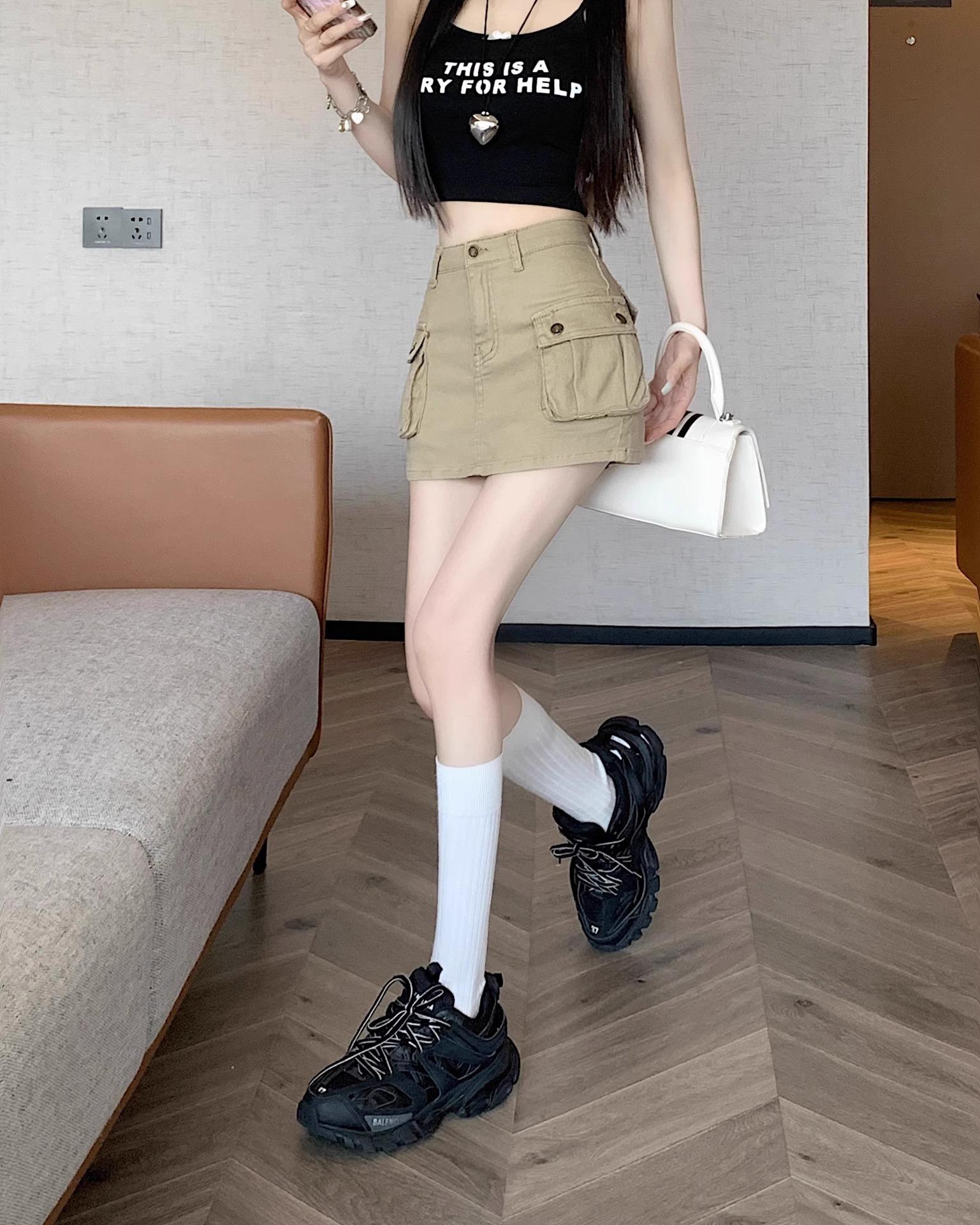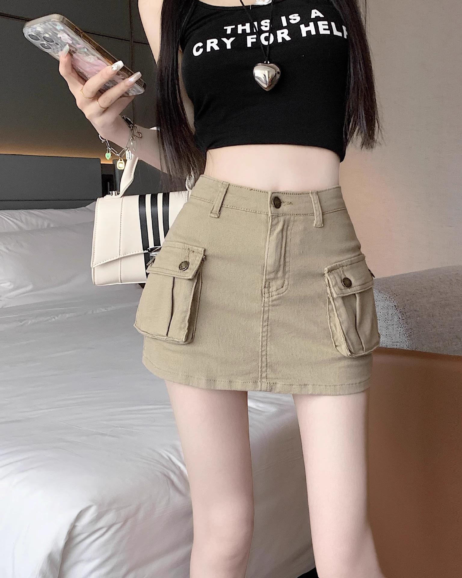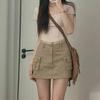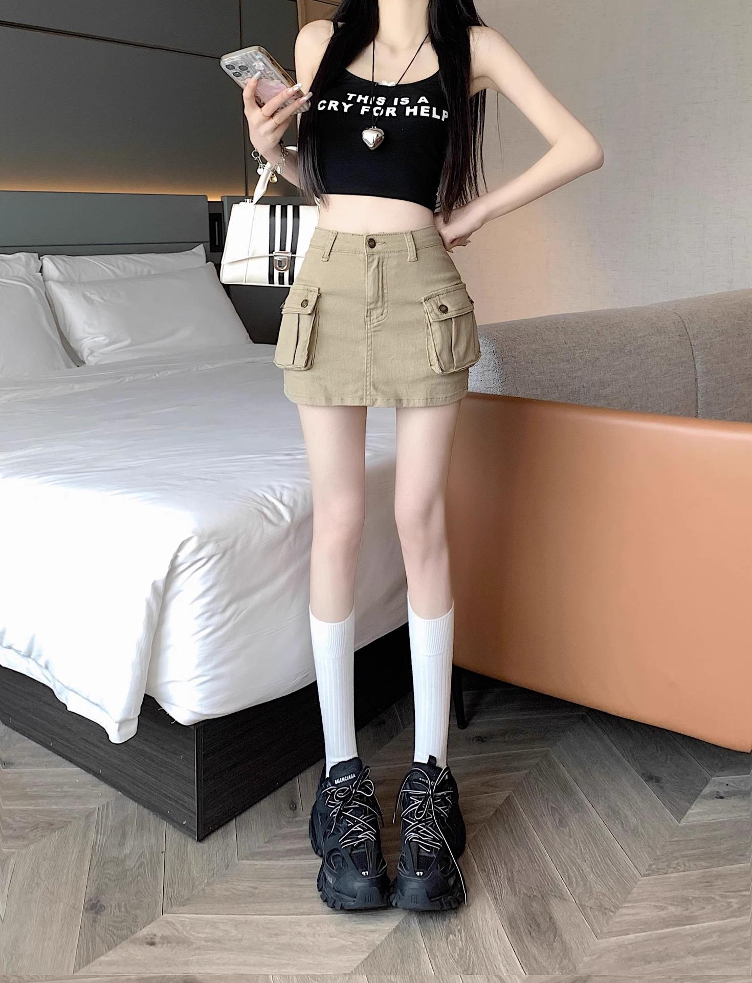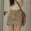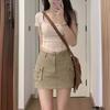 Falda de Trabajo para Mujer 2024 Verano Nueva Moda Cintura Alta Caqui Slim Hot Girl Falda Línea A Cubre Caderas Falda Corta