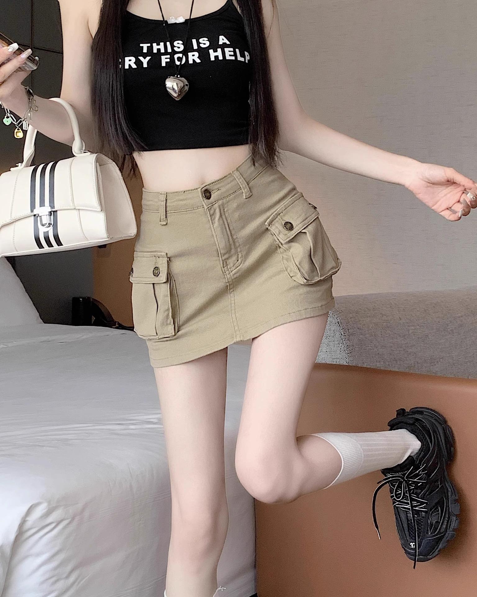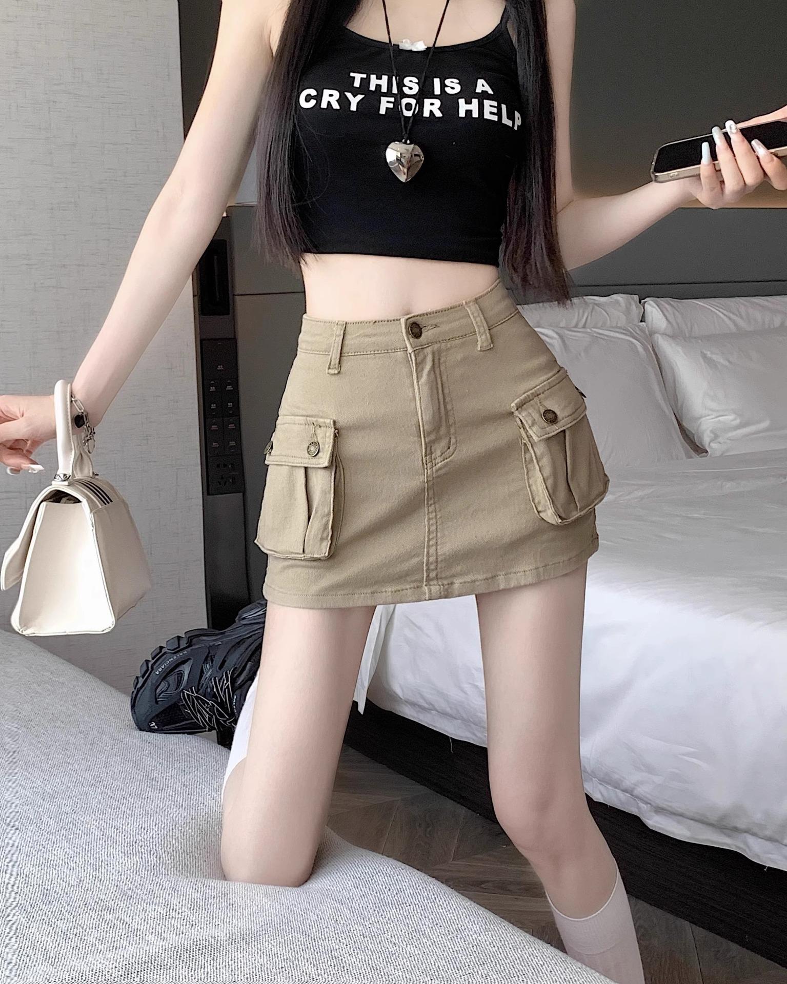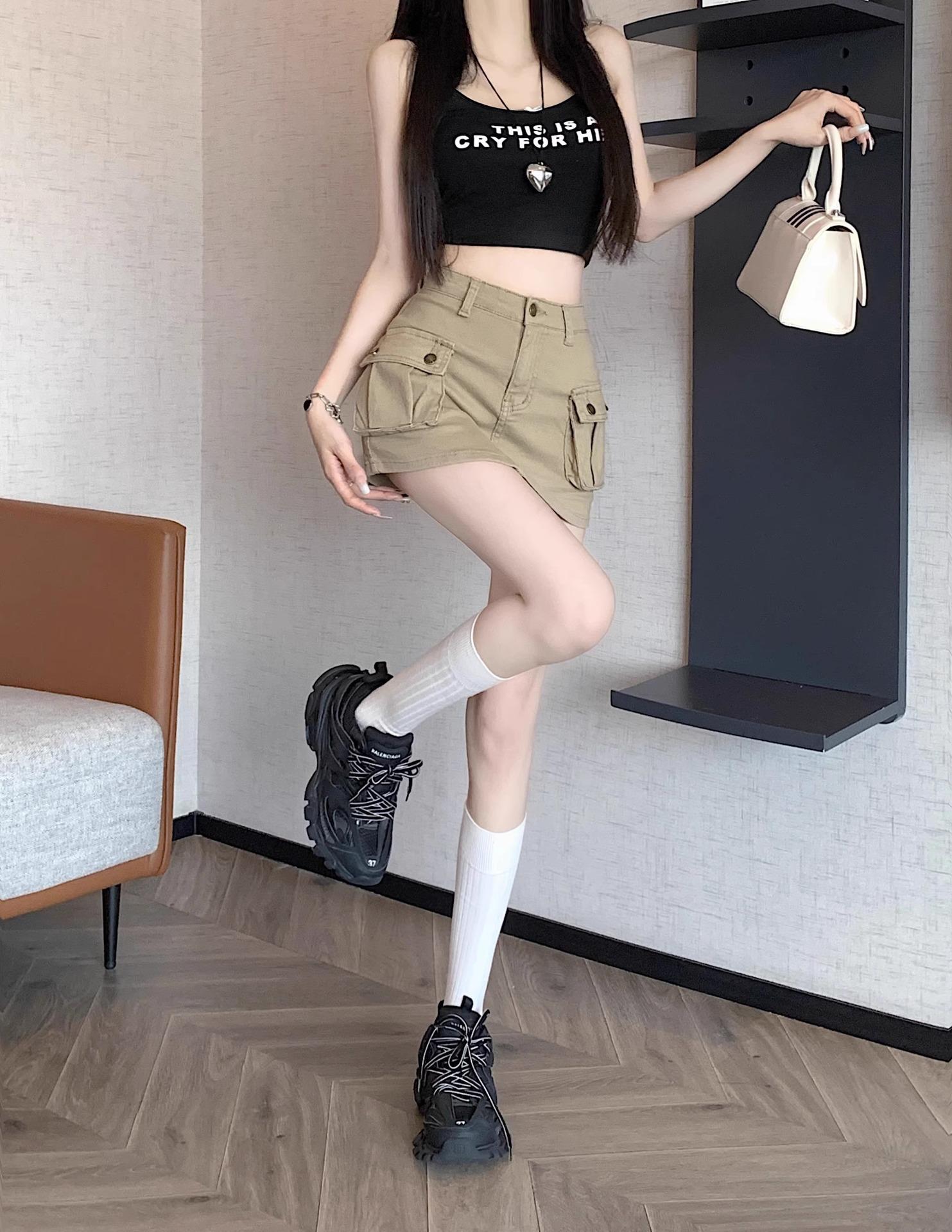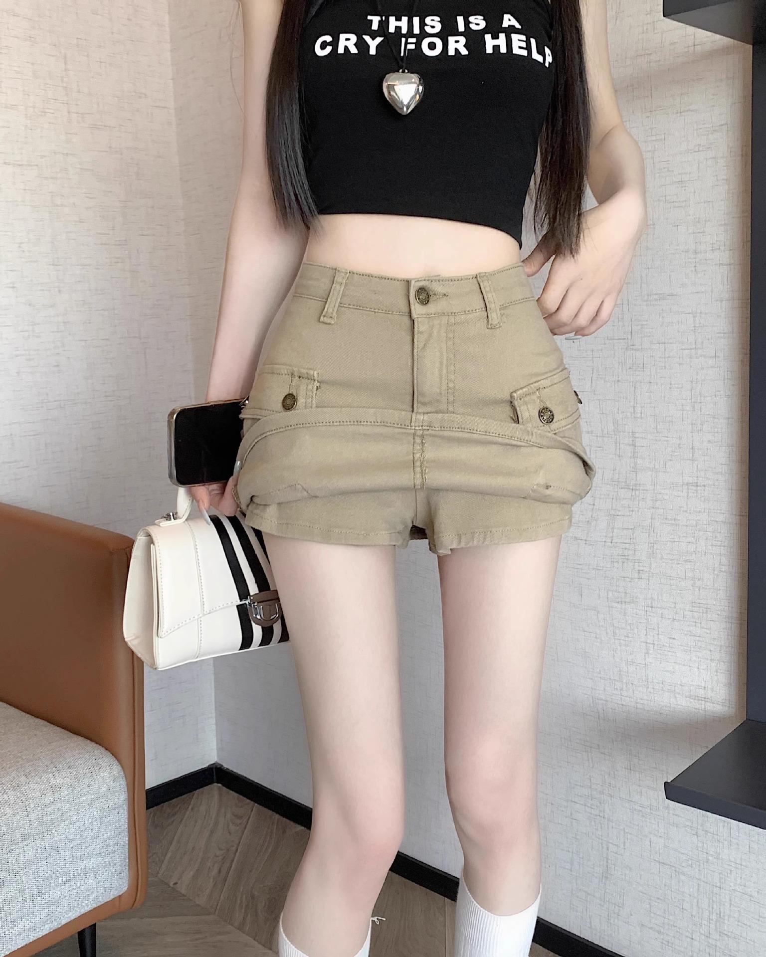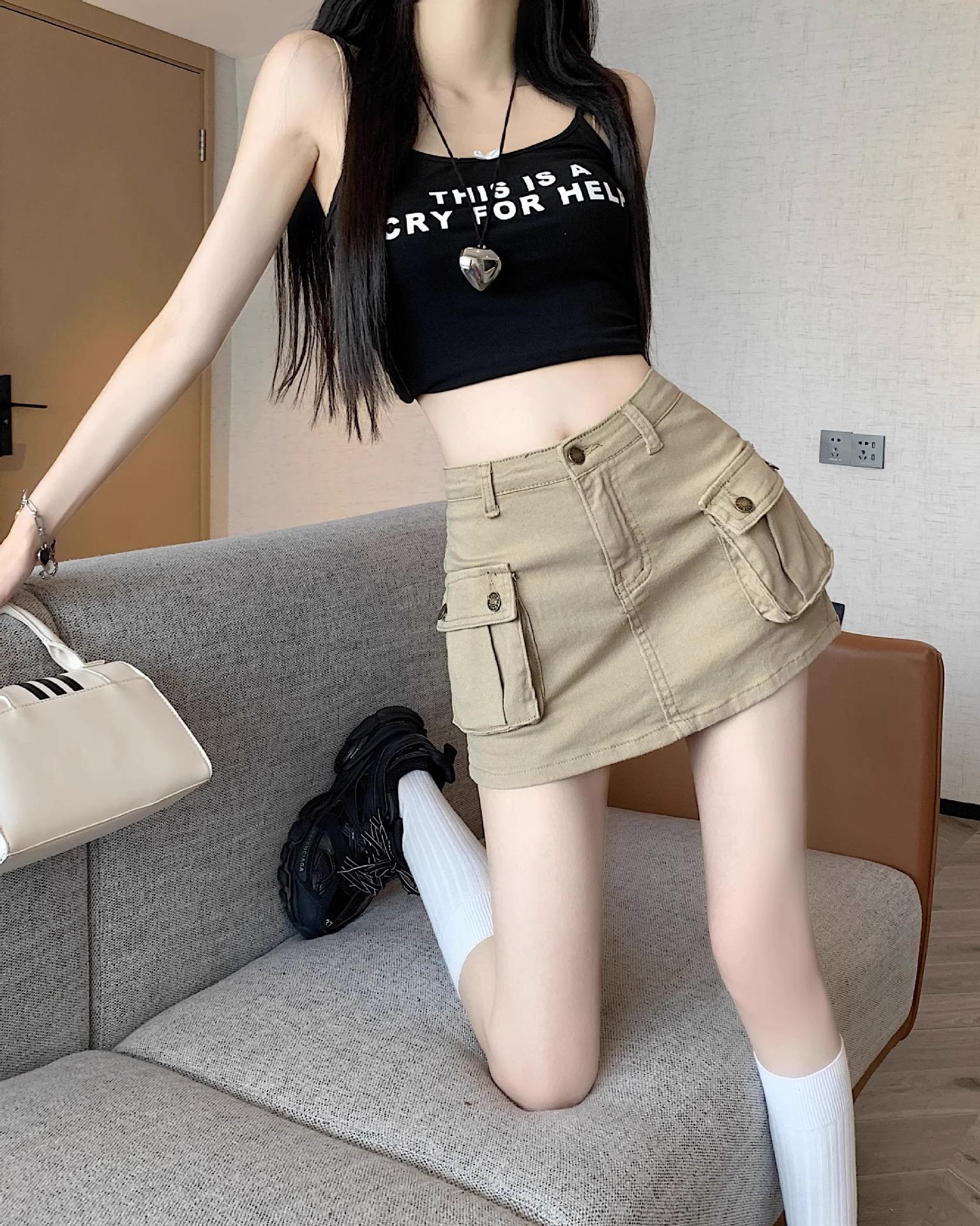 Falda de Trabajo para Mujer 2024 Verano Nueva Moda Cintura Alta Caqui Slim Hot Girl Falda Línea A Cubre Caderas Falda Corta