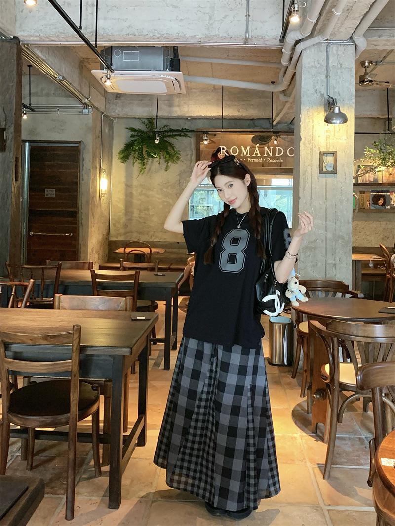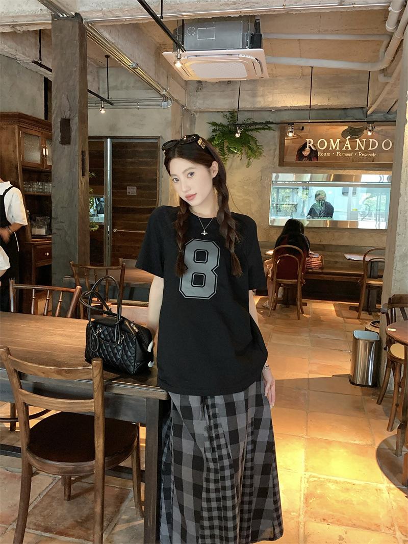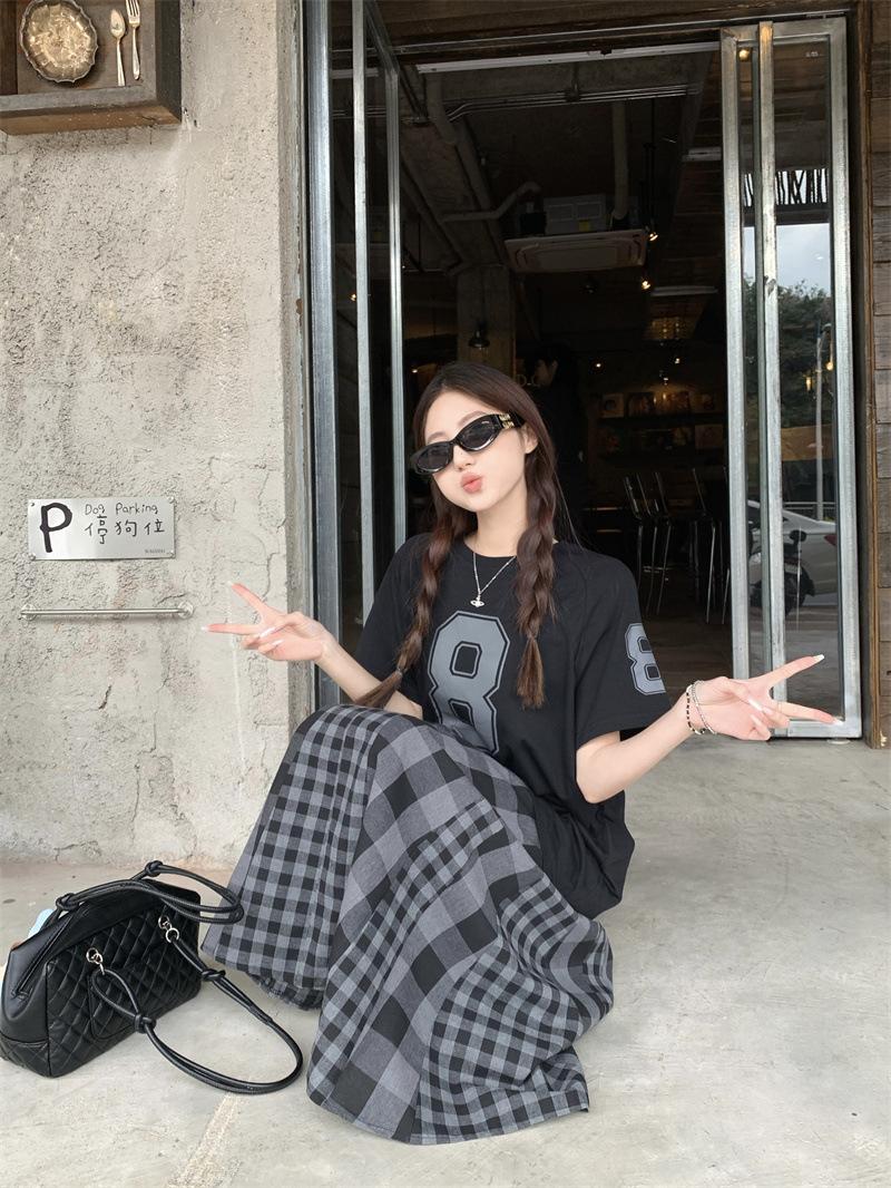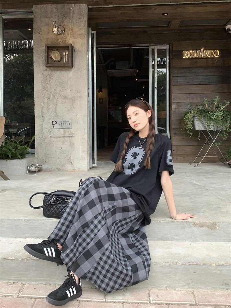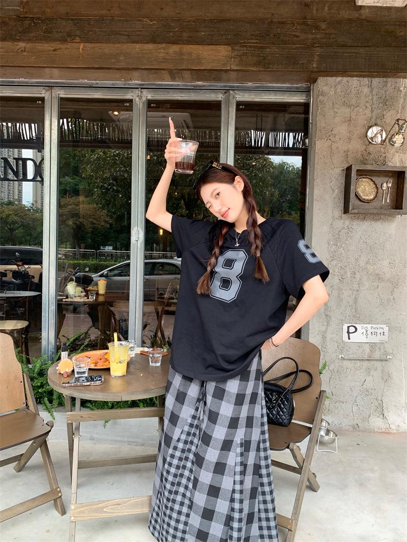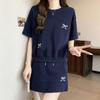 Traje de Estilo Coreano Estilo Perezoso Suelto Cuello Redondo Manga Corta Camiseta Traje Falda Slim de Cintura Alta para Verano para Mujer Conjunto de Dos Piezas