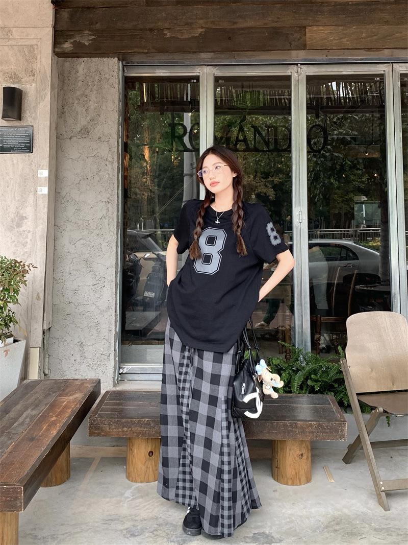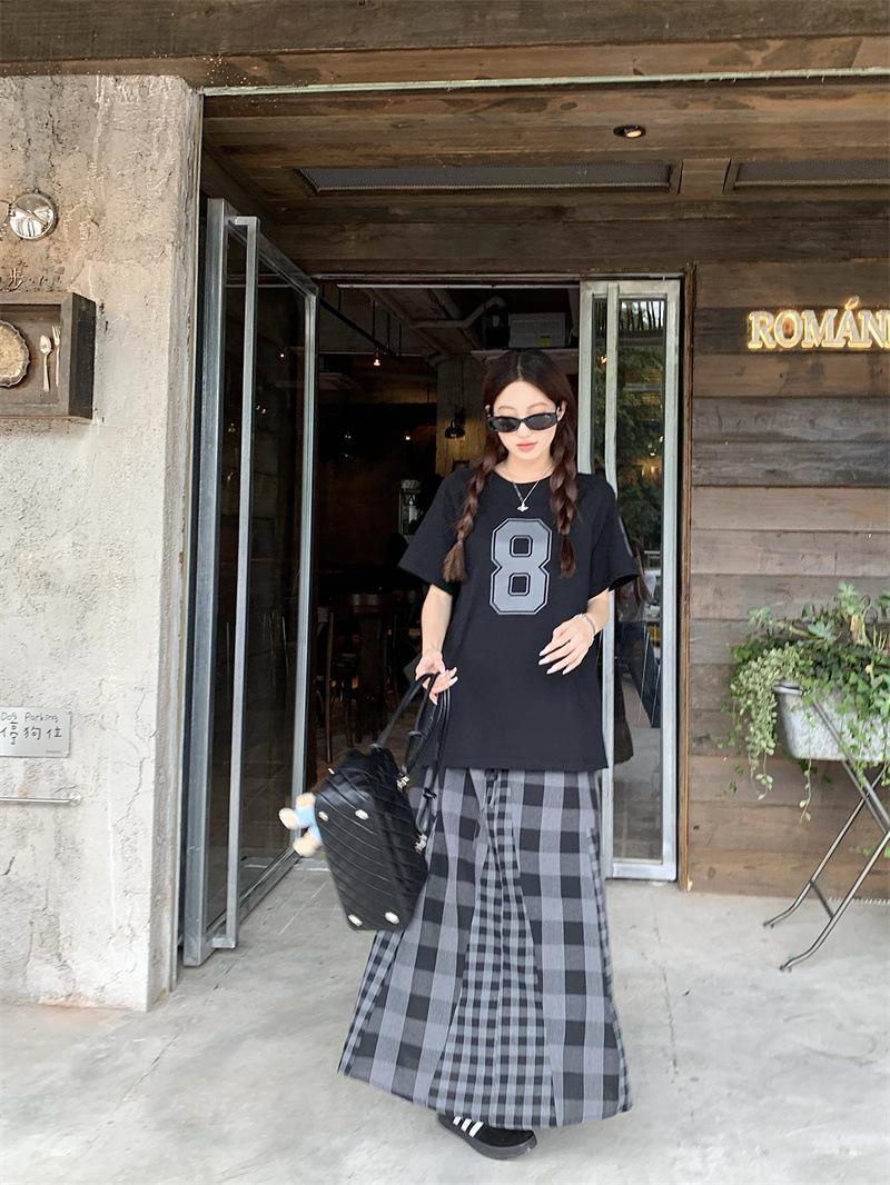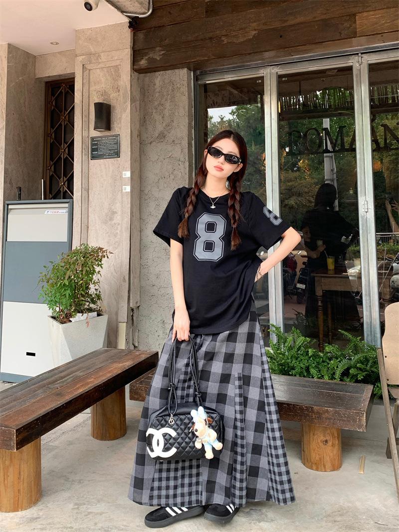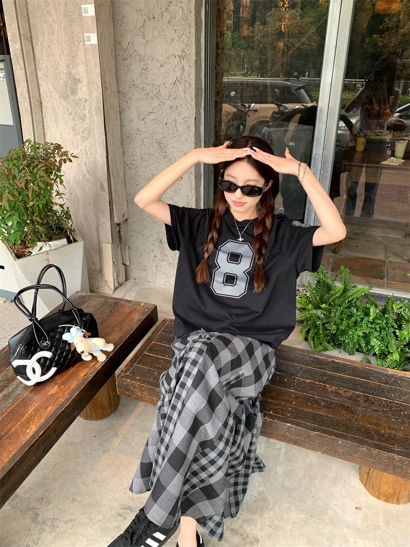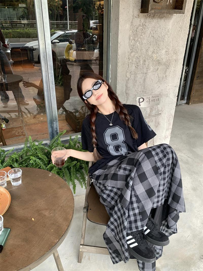 Traje de Estilo Coreano Estilo Perezoso Suelto Cuello Redondo Manga Corta Camiseta Traje Falda Slim de Cintura Alta para Verano para Mujer Conjunto de Dos Piezas