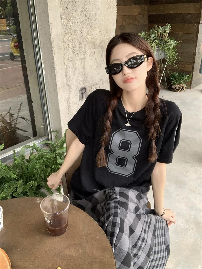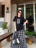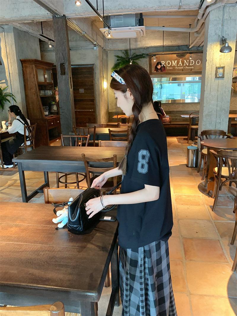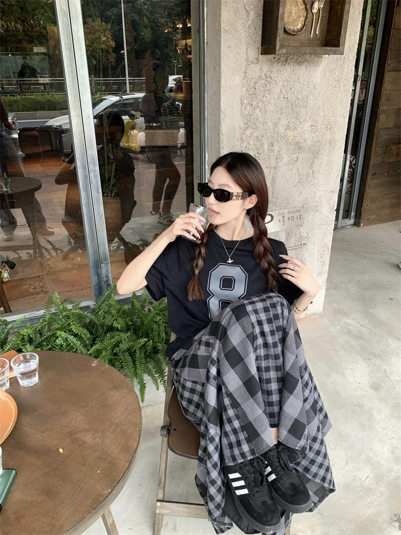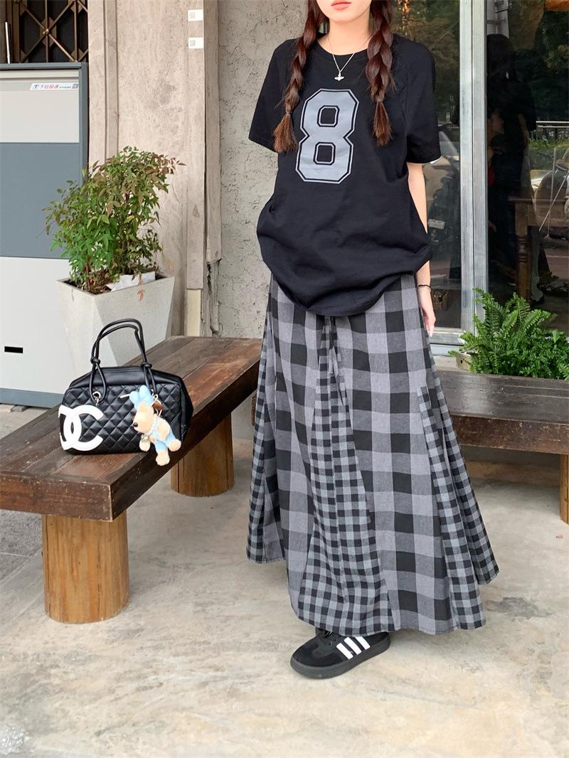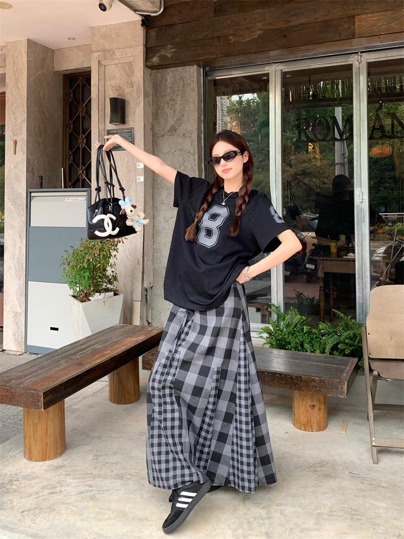 Traje de Estilo Coreano Estilo Perezoso Suelto Cuello Redondo Manga Corta Camiseta Traje Falda Slim de Cintura Alta para Verano para Mujer Conjunto de Dos Piezas