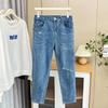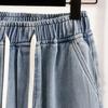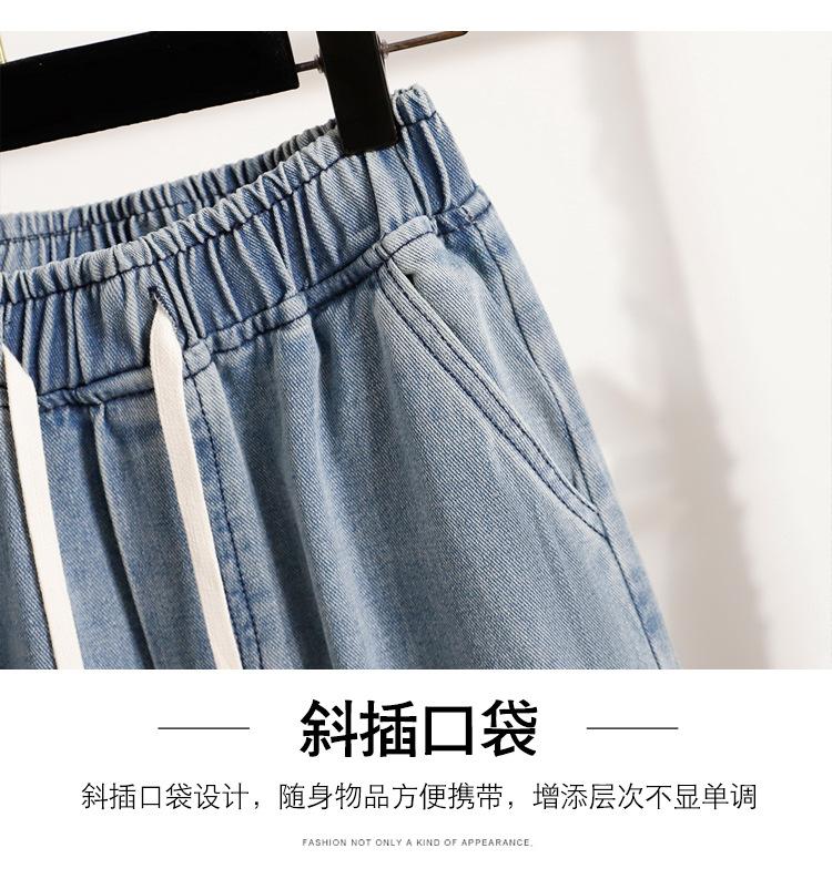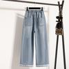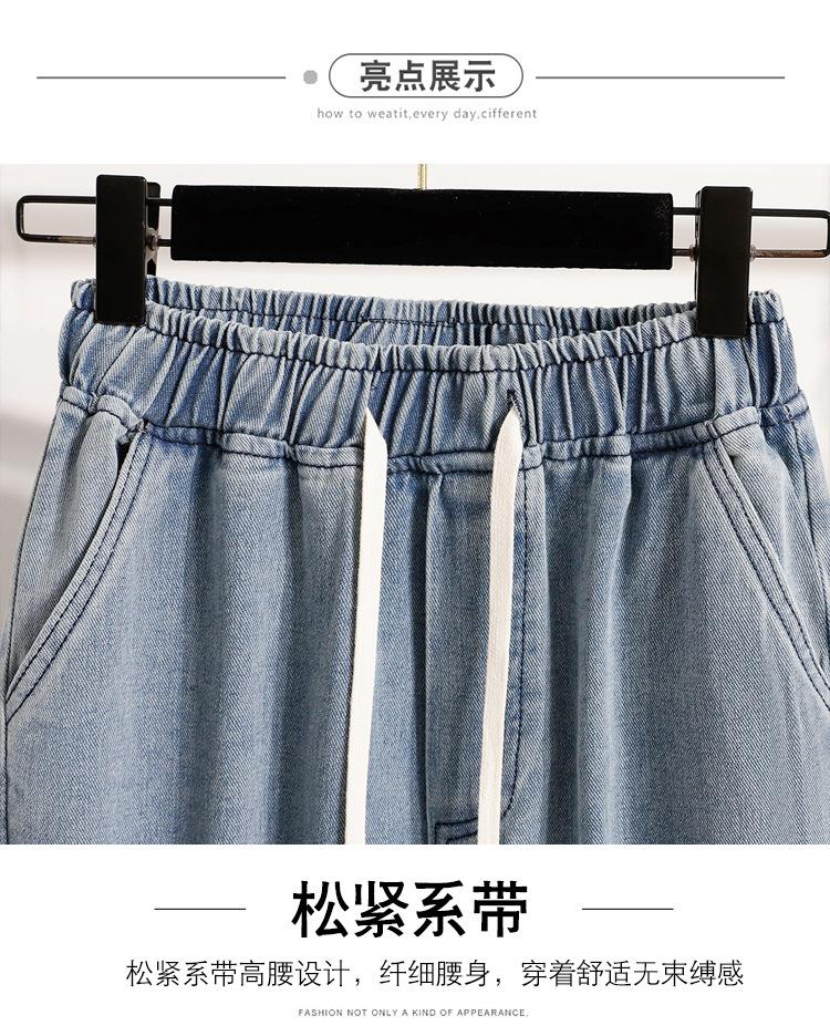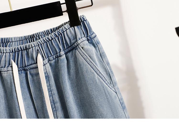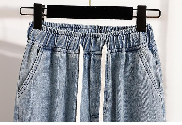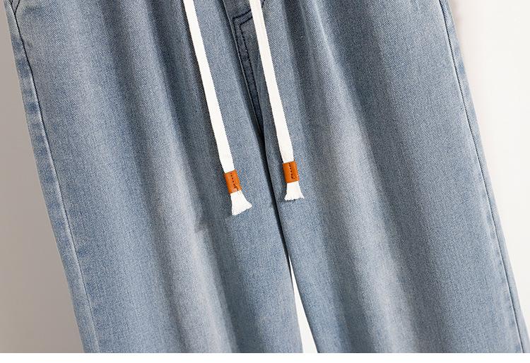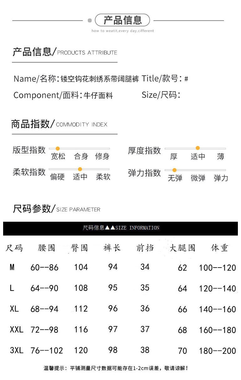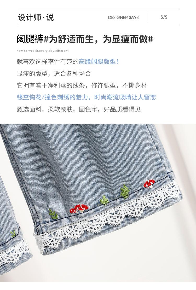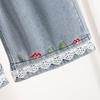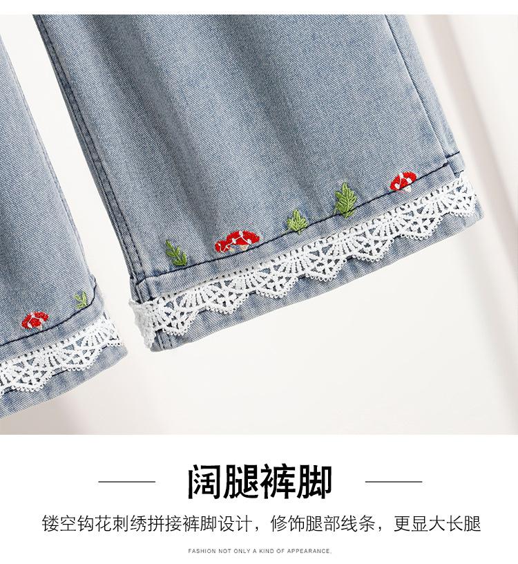 Jeans de Encaje Bordado Talla Grande para Mujer Verano Pantalones con Cordón Cintura Elástica Slim Versátil Pantalones de Pierna Ancha