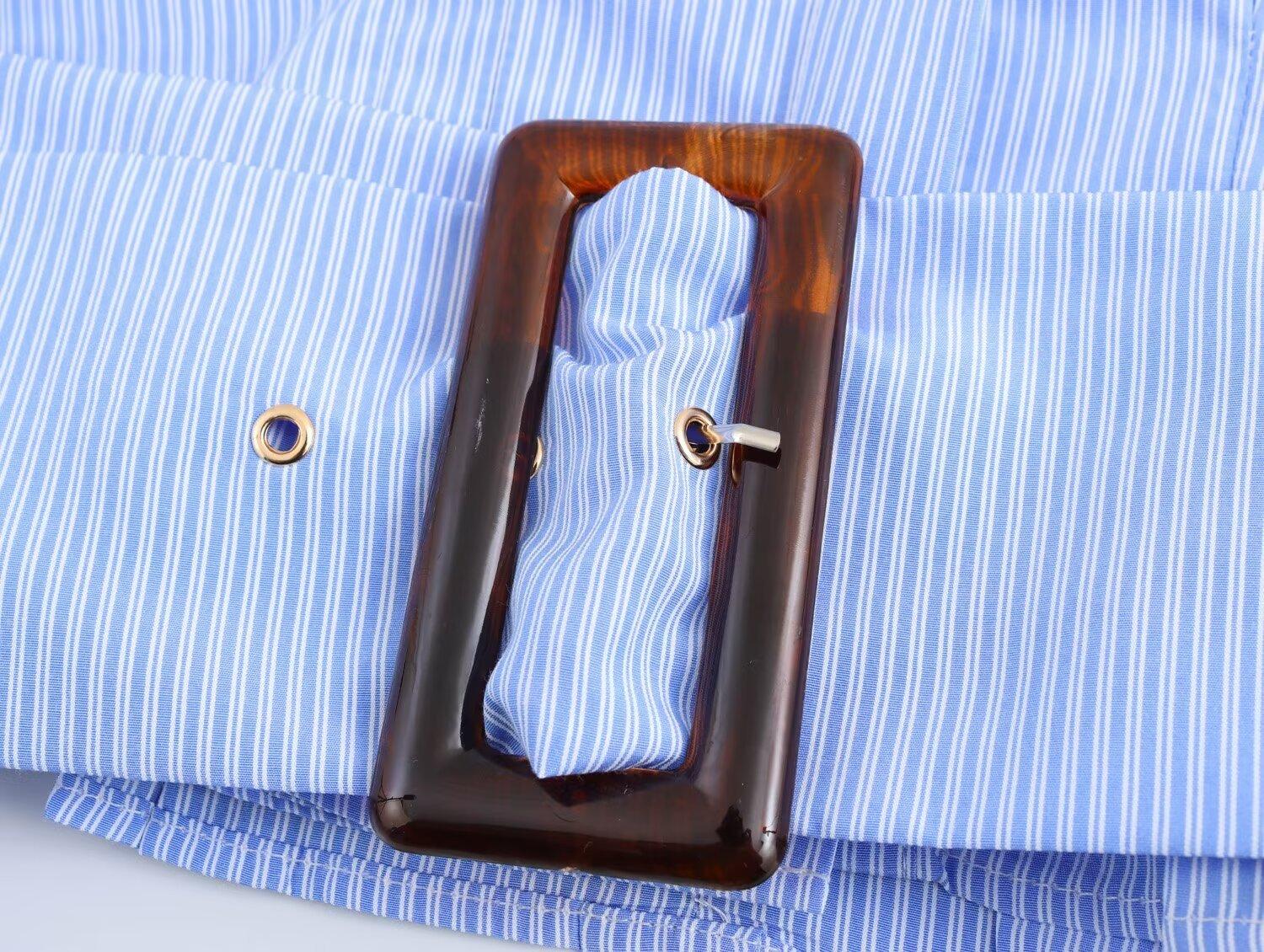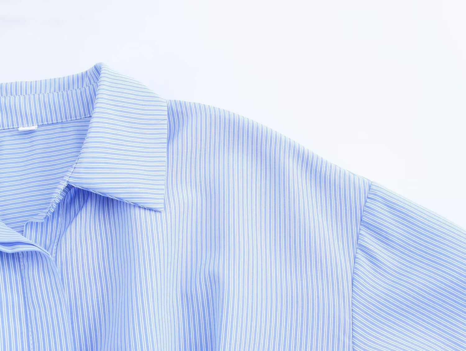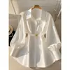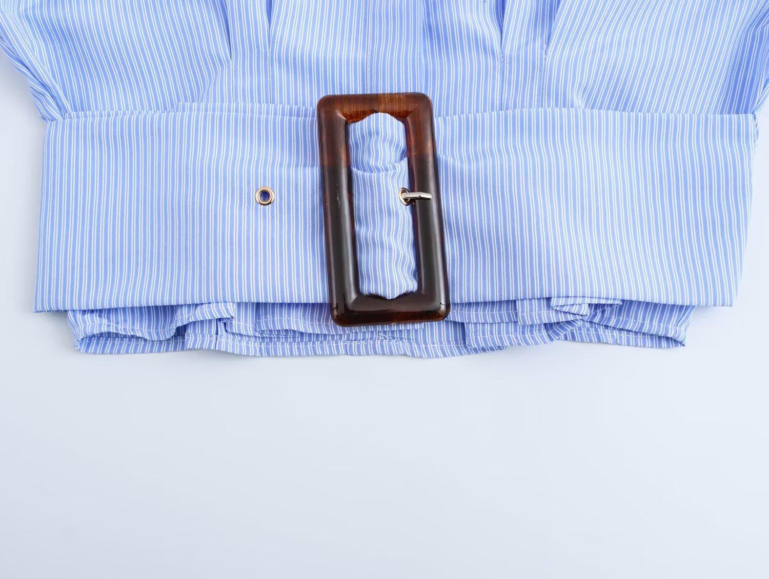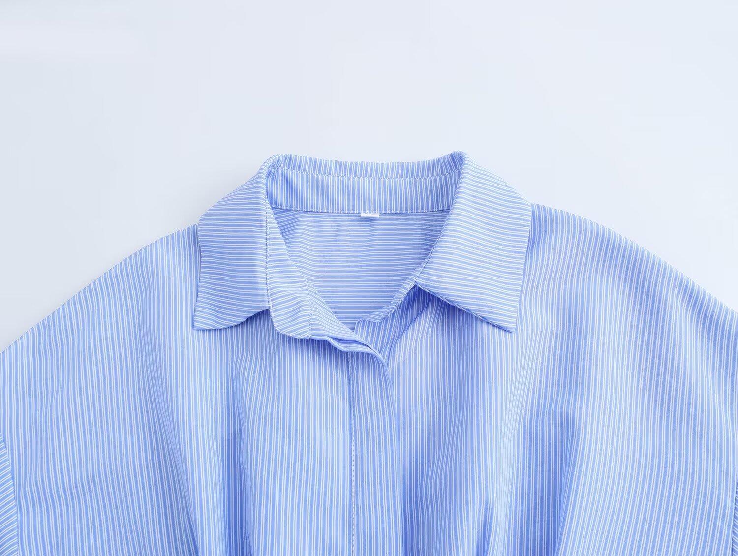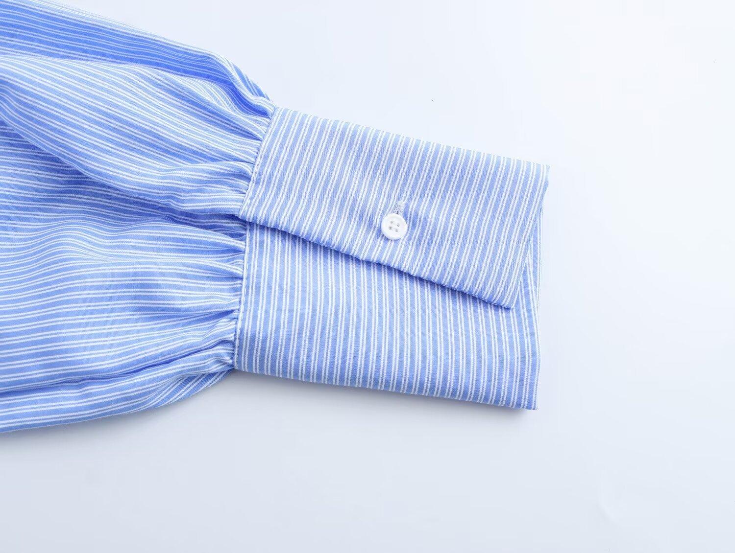 Ropa de Invierno para Mujer Nueva 2024 Estilo Europeo y Americano Sentido del Diseño y Diseño Versátil Camisa de Cintura de Manga Larga a Rayas