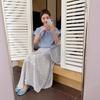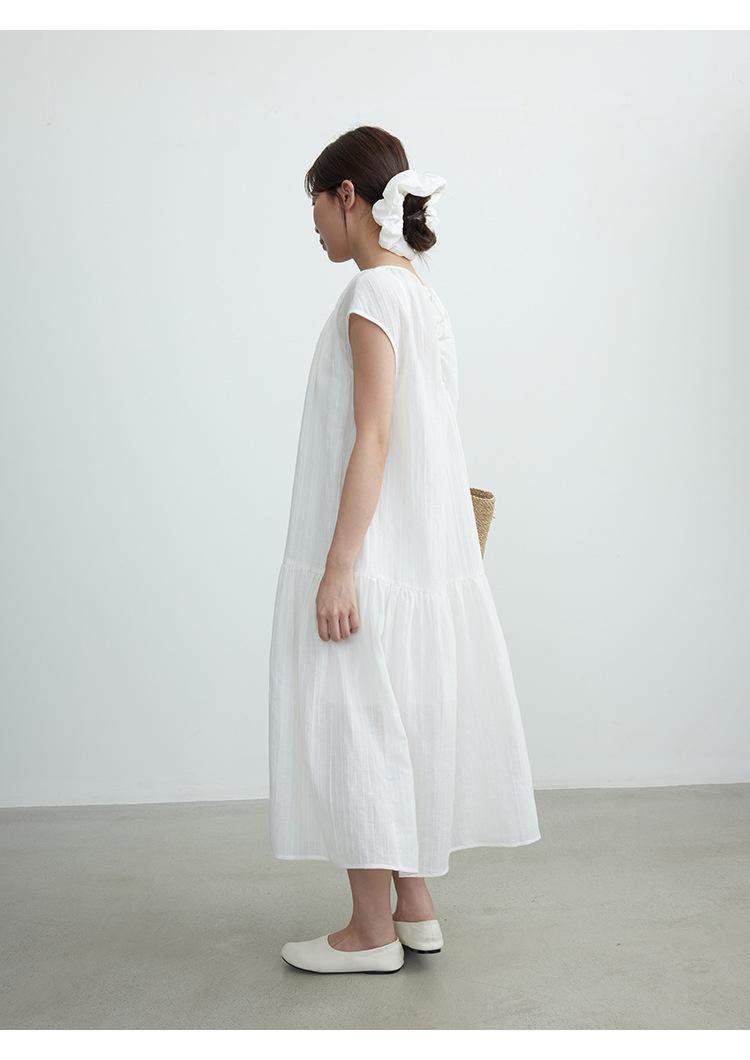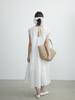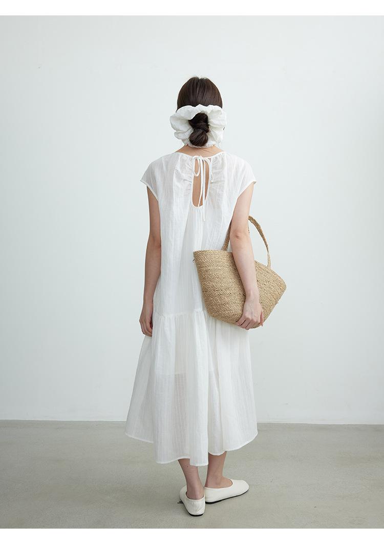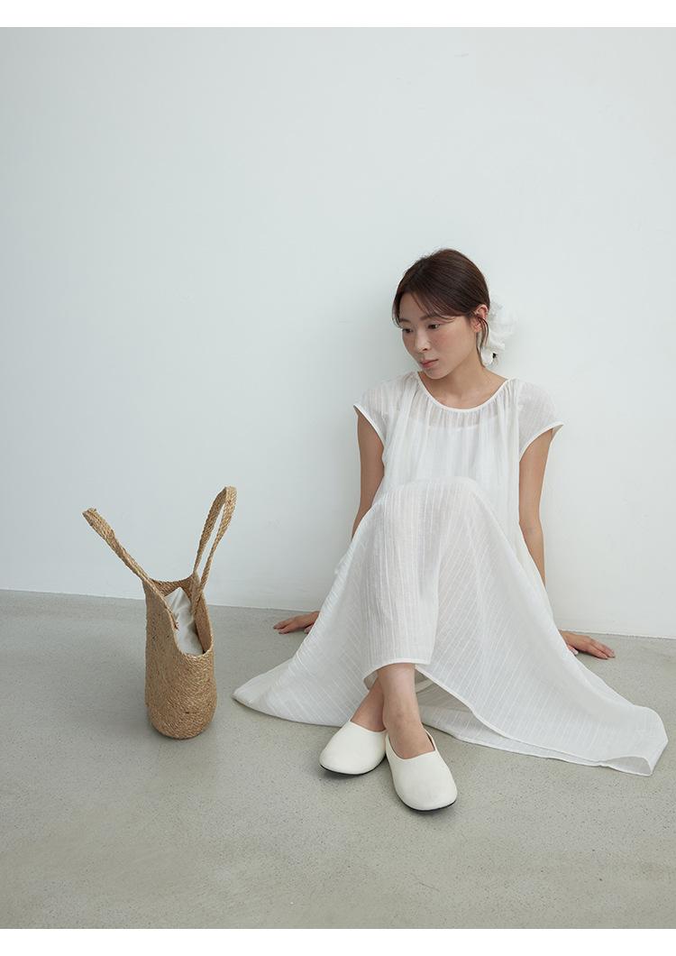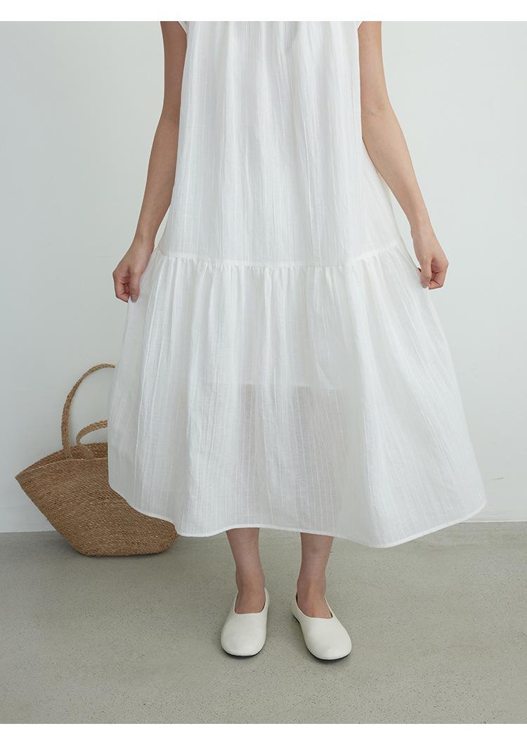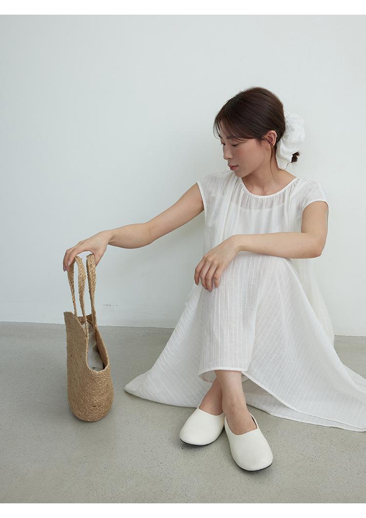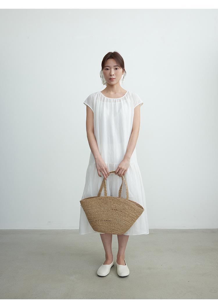 Evertrue 2025 Verano Coreano Nuevo Vestido Blanco de Ramio para Mujer Falda Midi hasta la Rodilla 91628