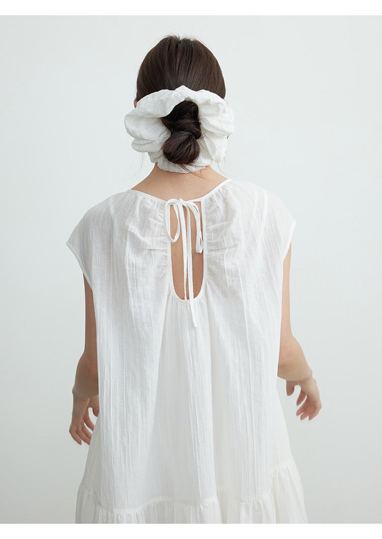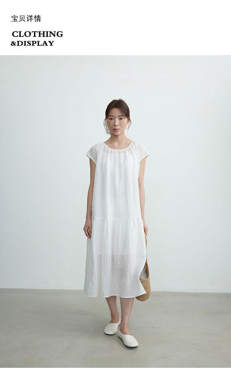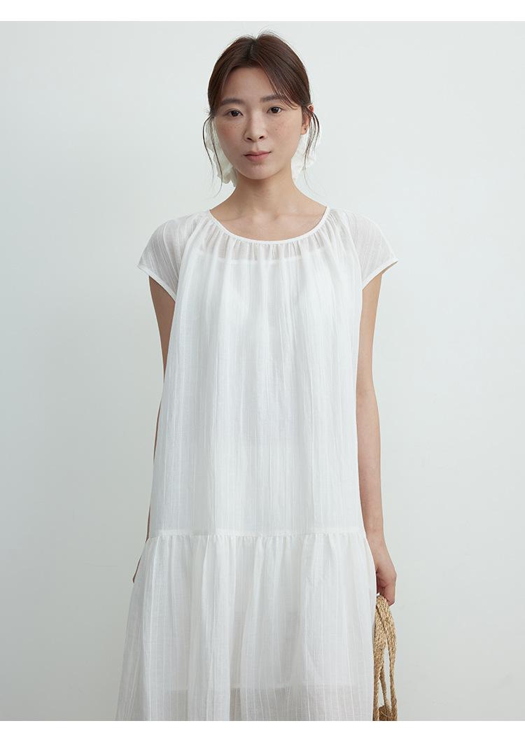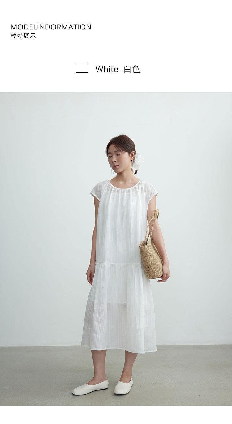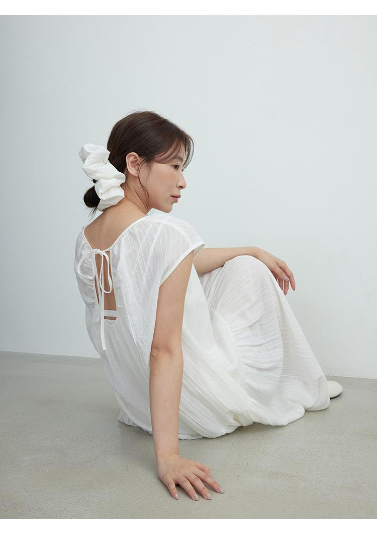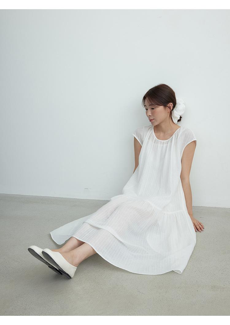 Evertrue 2025 Verano Coreano Nuevo Vestido Blanco de Ramio para Mujer Falda Midi hasta la Rodilla 91628