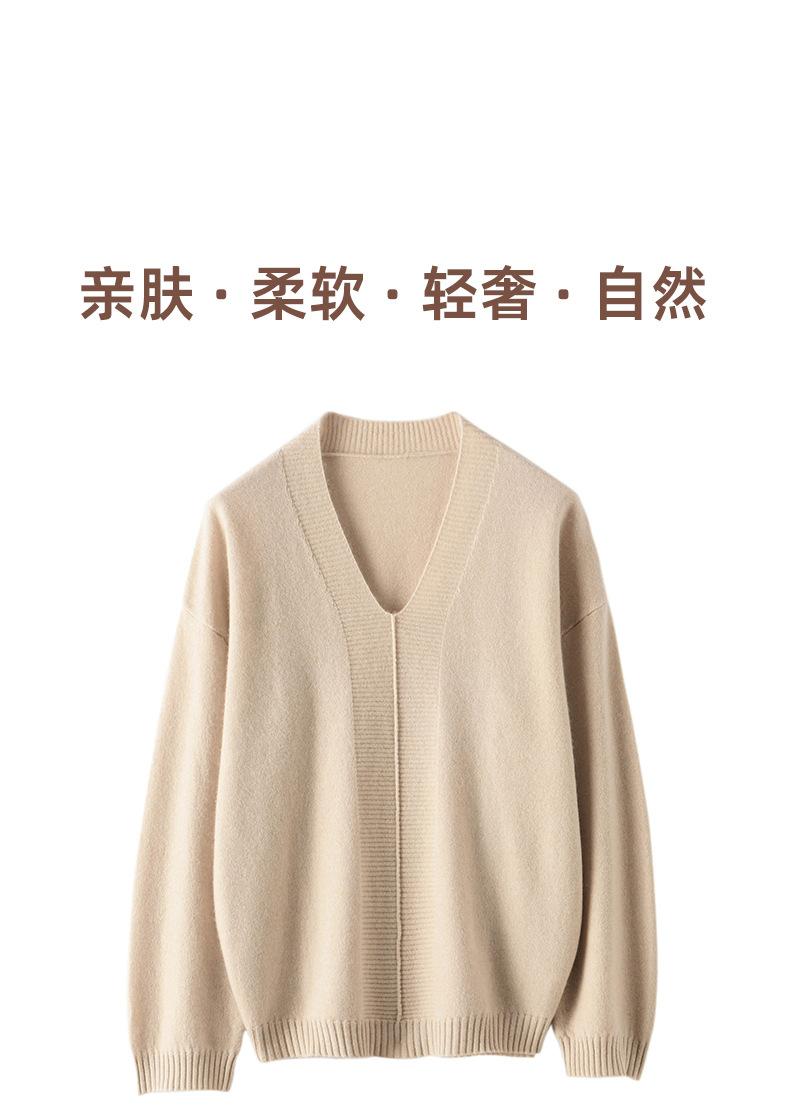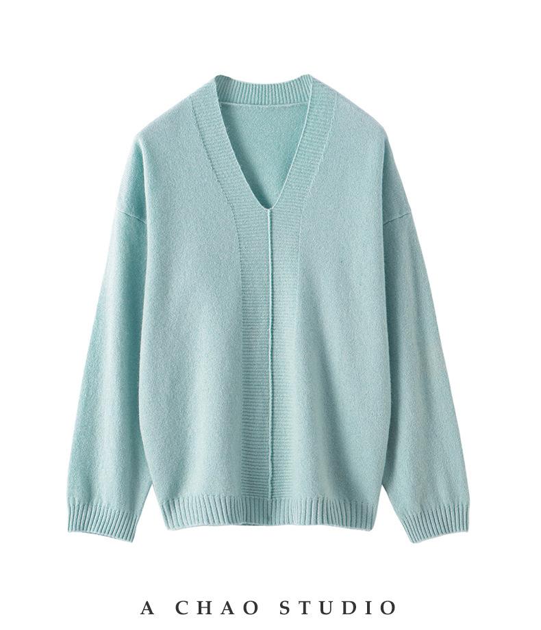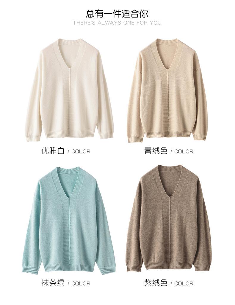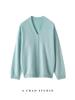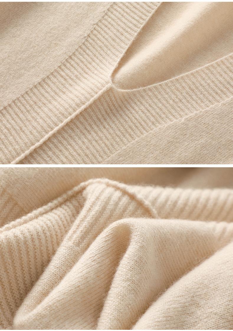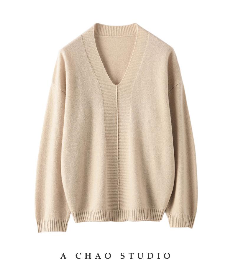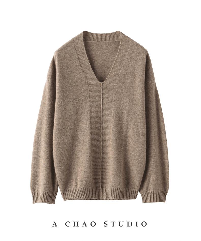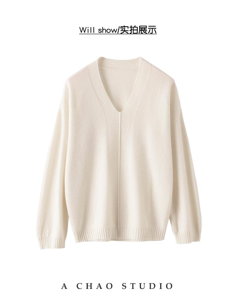 Suéter de Punto Casual Versátil para Mujer Otoño/Invierno 2025 Nuevo Cachemira de Cabra Cuello en V Manga Larga Regular Color Sólido Suelto para Ir al Trabajo