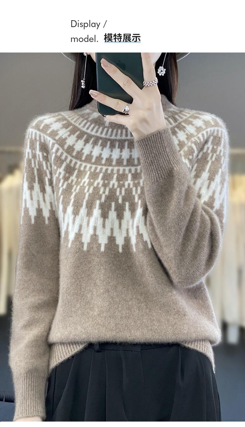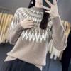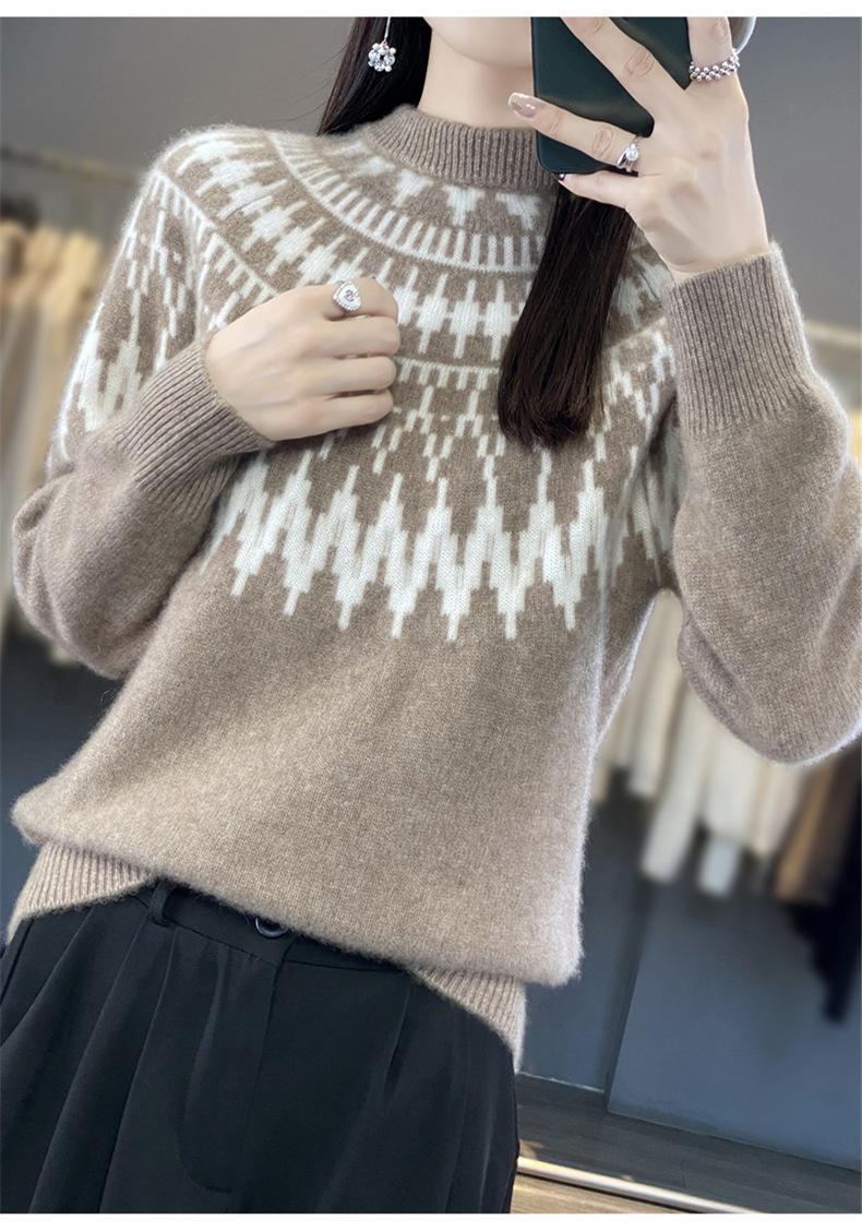 Nuevo Otoño e Invierno Tejido de Punto Cuello Alto Medio Tejido de Punto Ropa de Punto para Mujer Siete Agujas Engrosado Color Contrastante Camiseta Interior con Top Holgado
