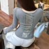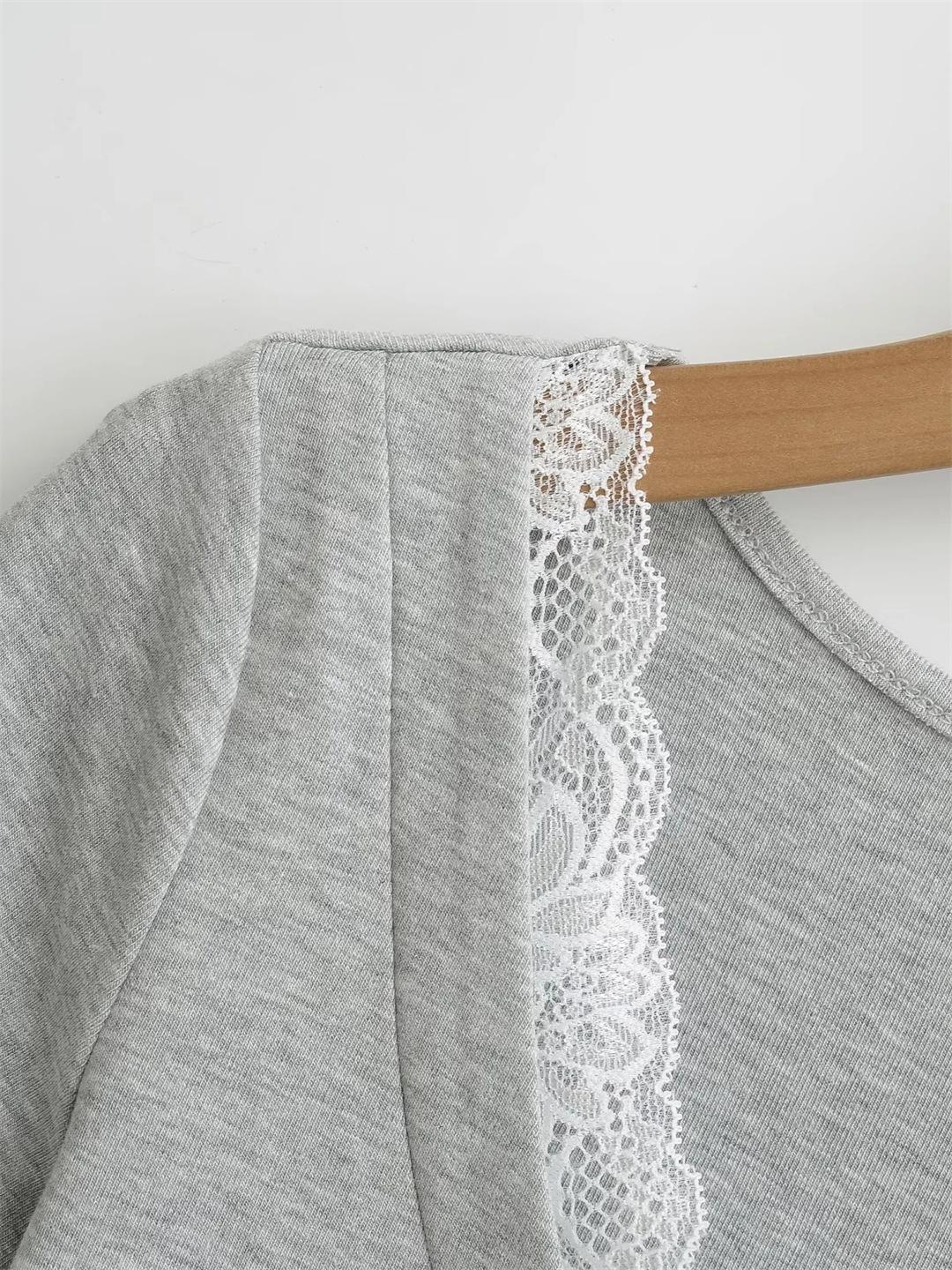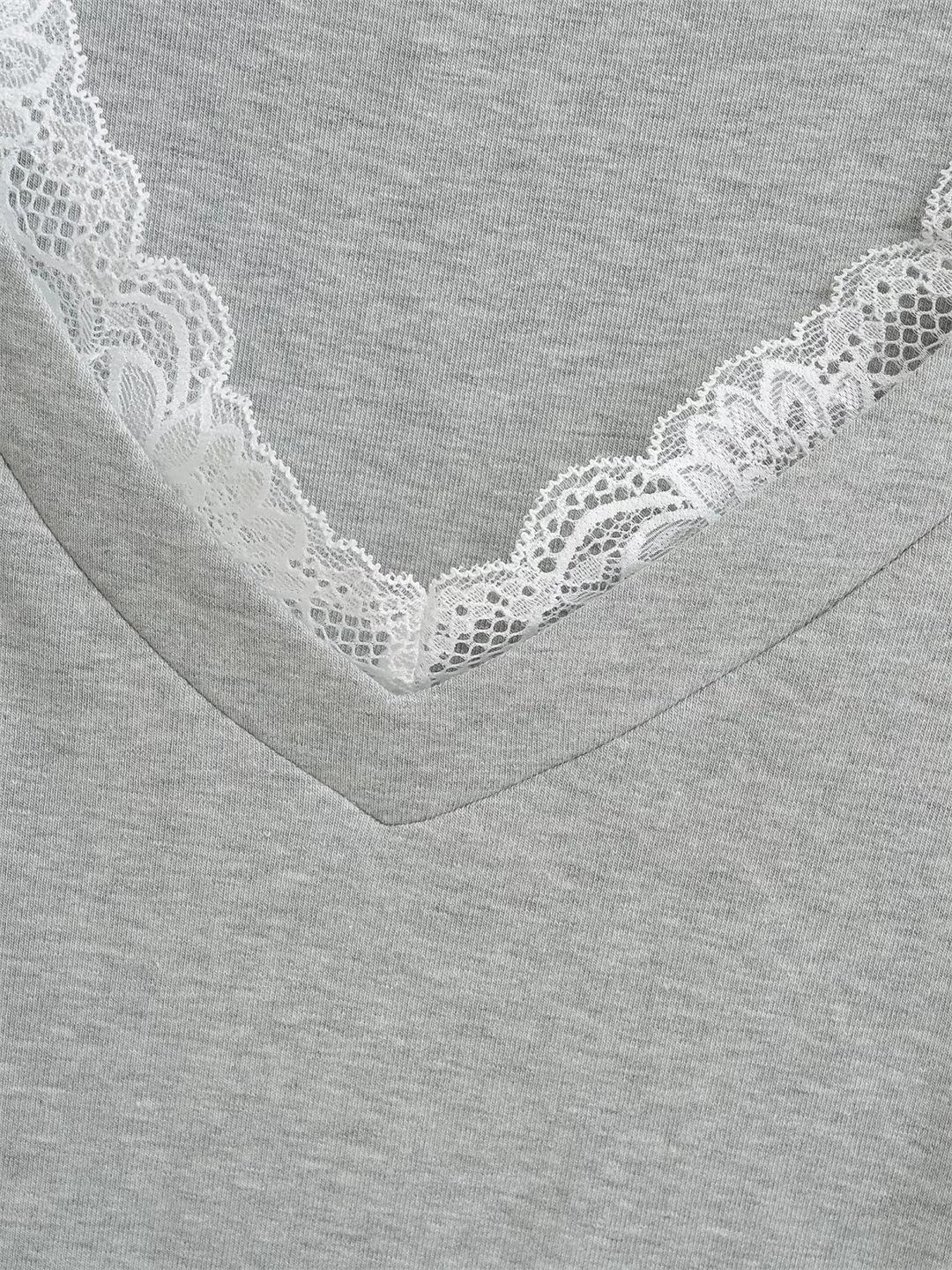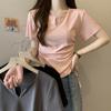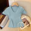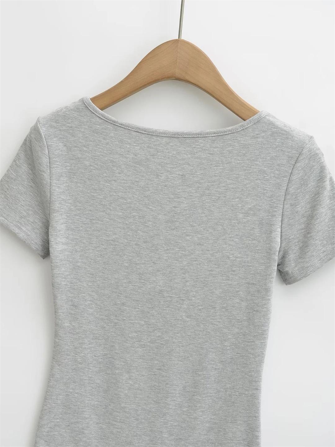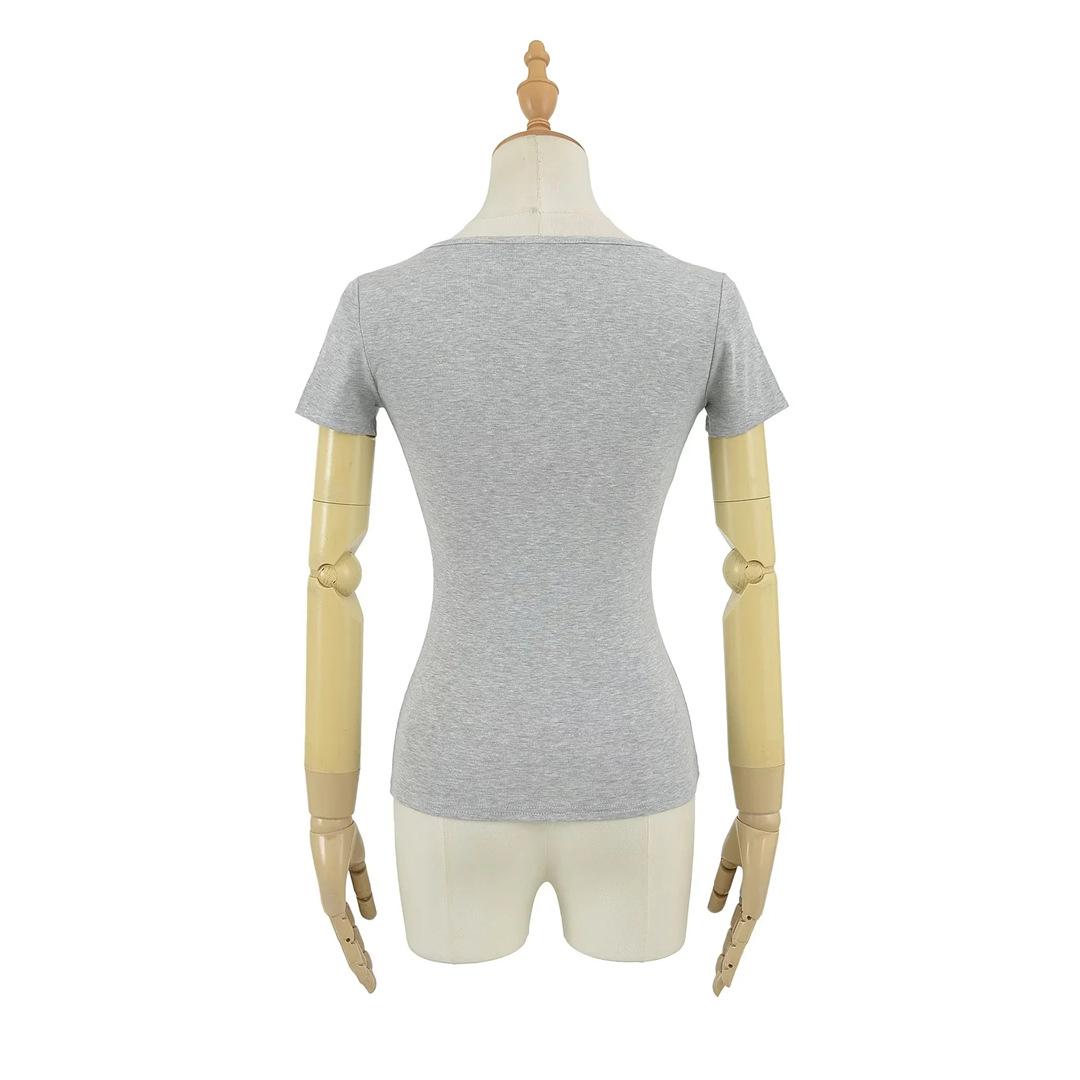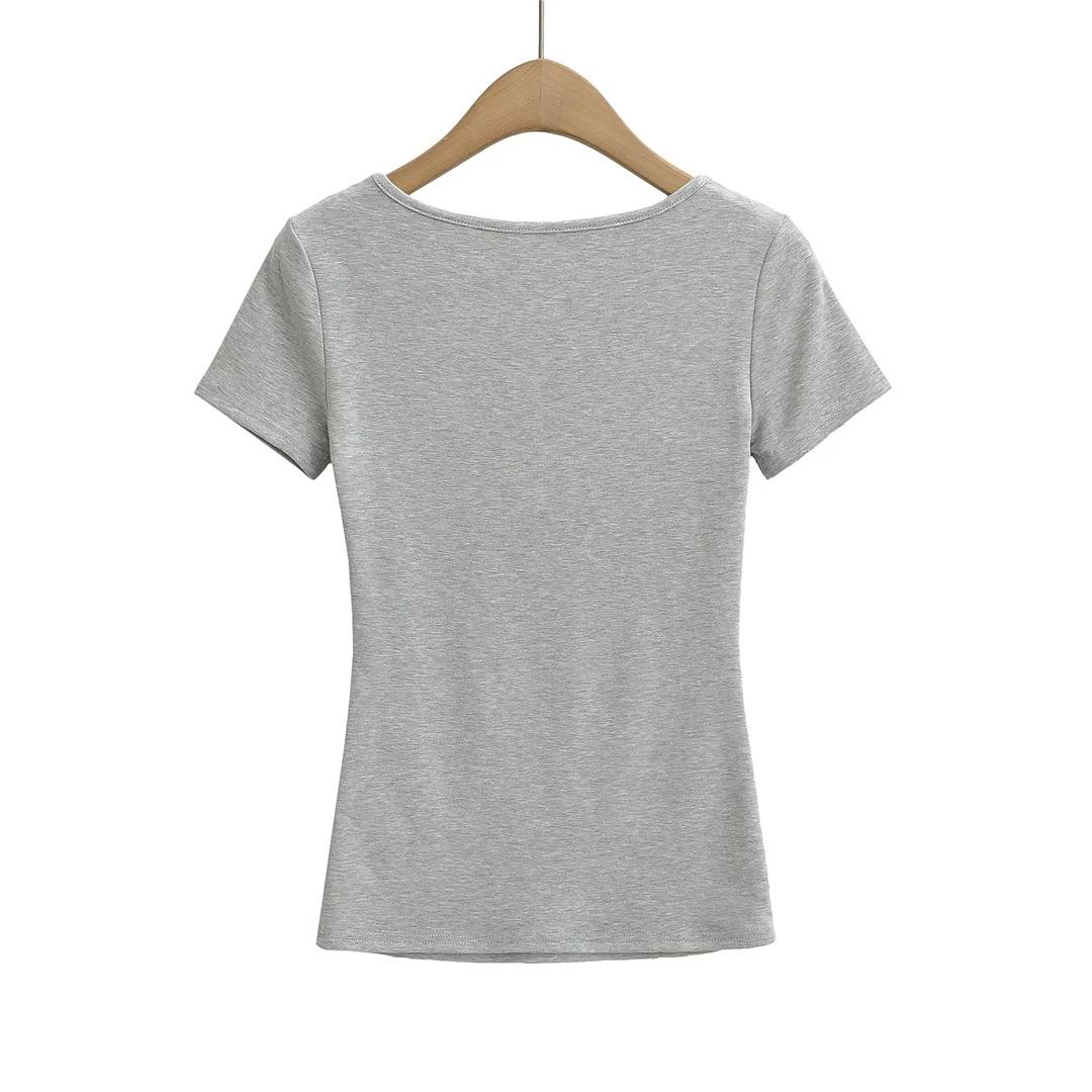 Playera de Manga Corta con Cuello en V y Encaje Puro y Sexy para Mujer Verano Nueva Ajuste Slim Dulce y Picante Chica Exponiendo Clavícula Adelgazante Top Corto