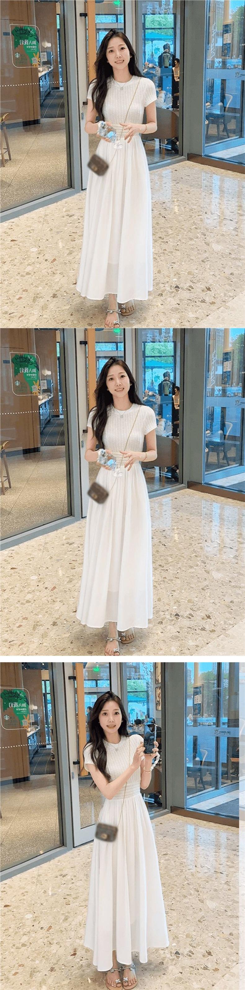 Vestido de Moda Casual Elegante de Talla Grande para Mujer Verano Nuevo de Cintura Alta Delgado Línea A Falda Larga