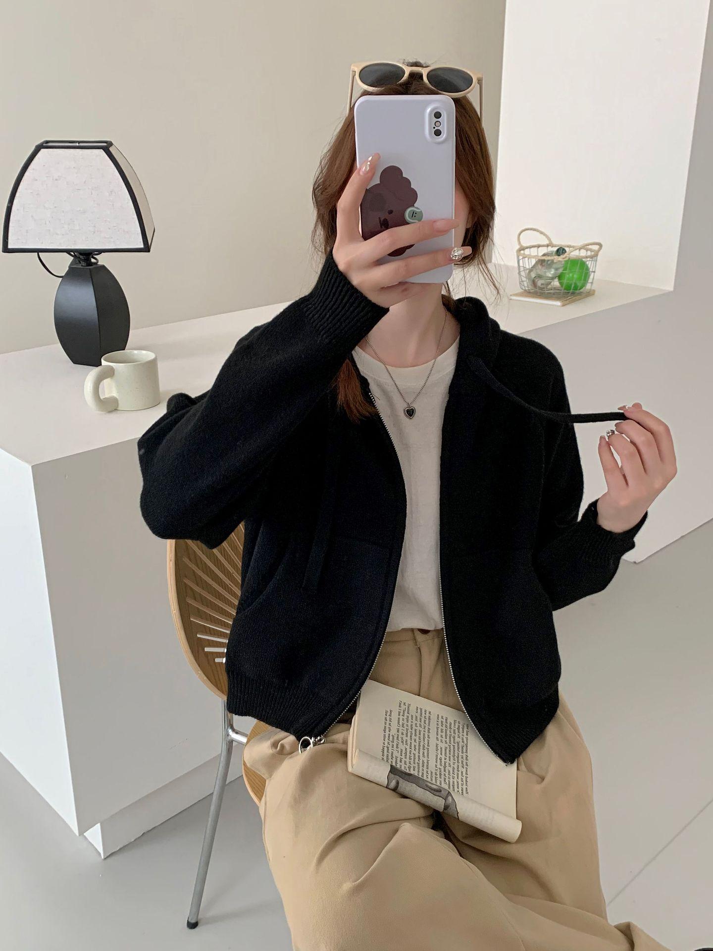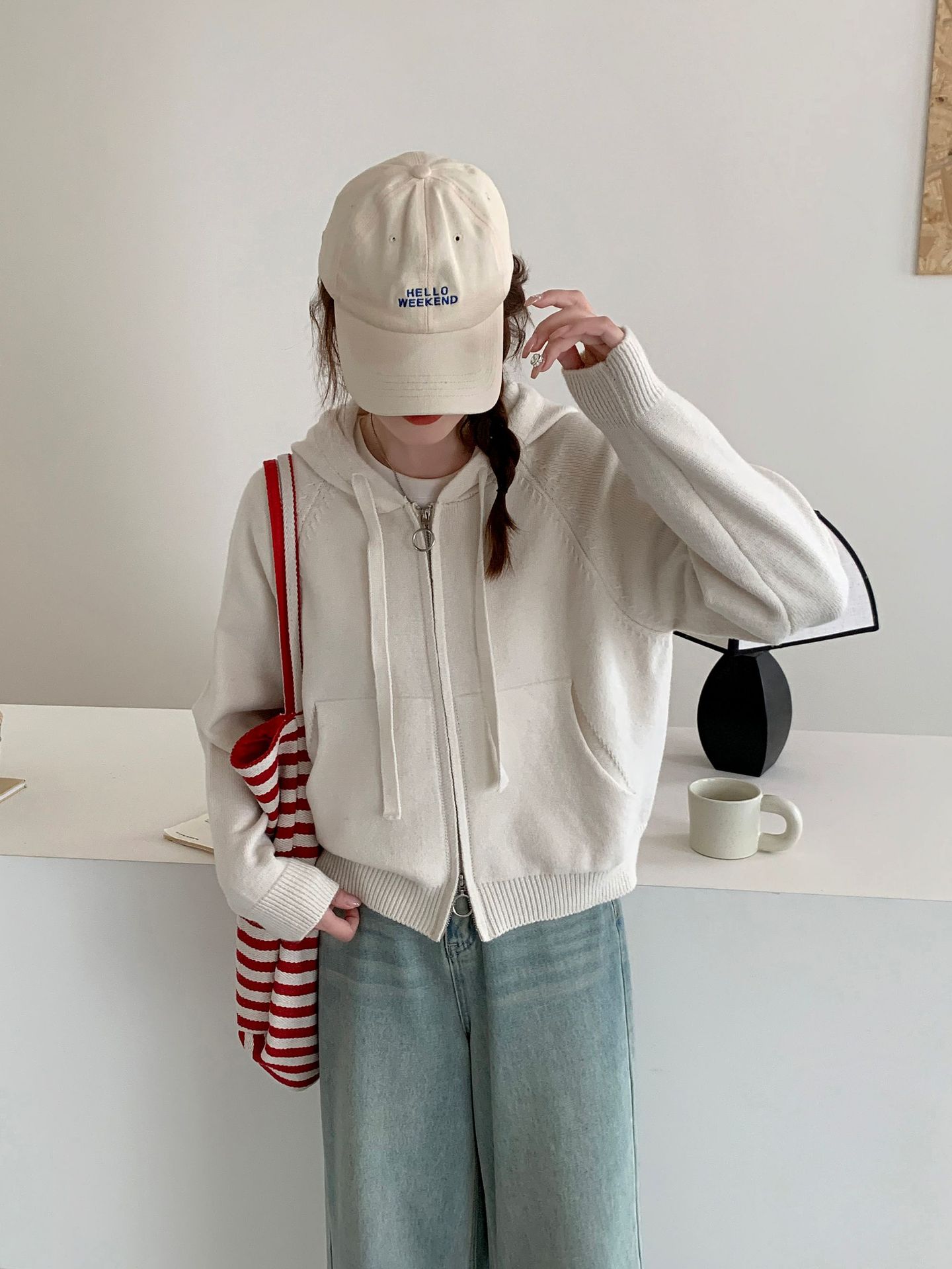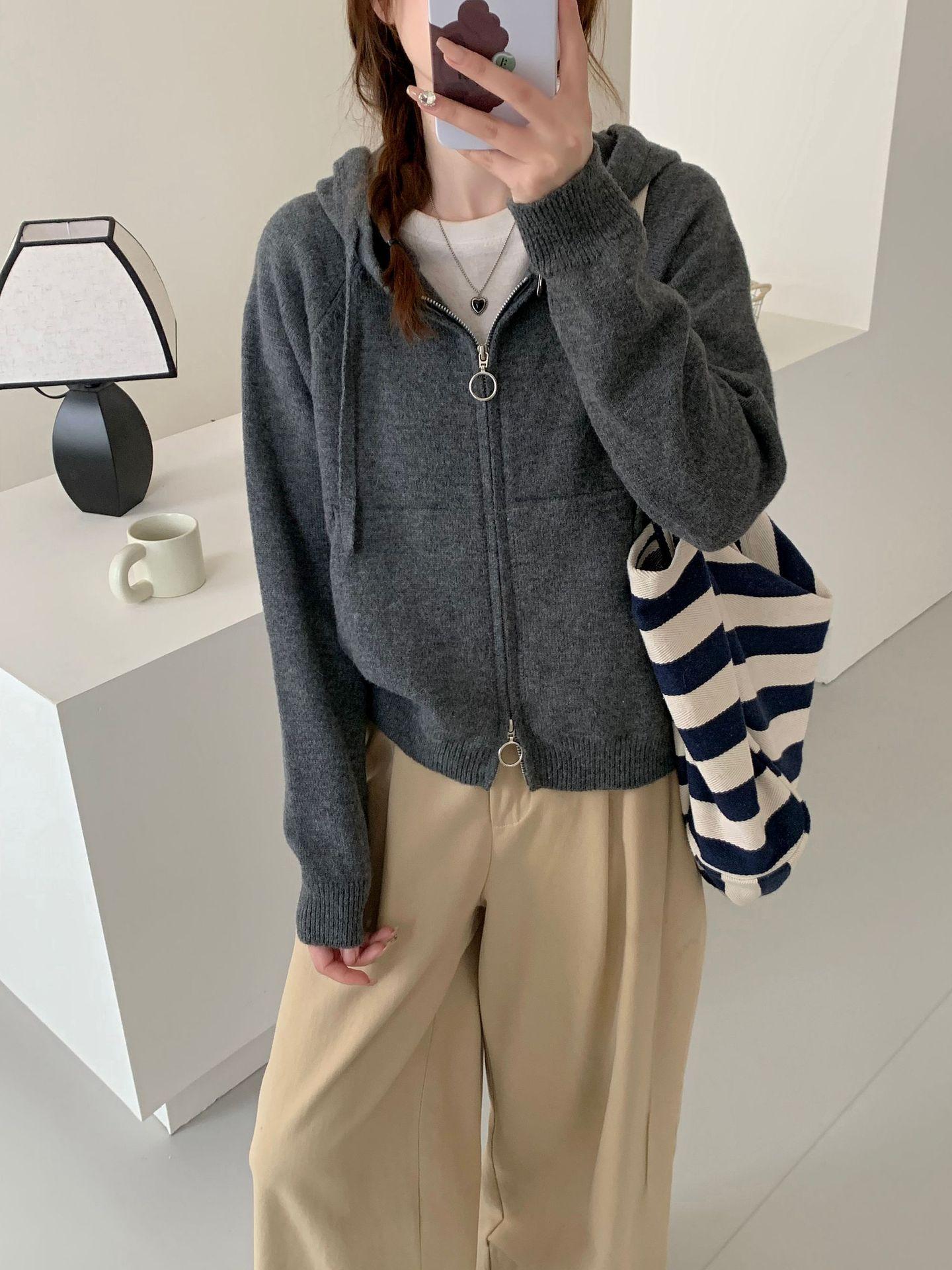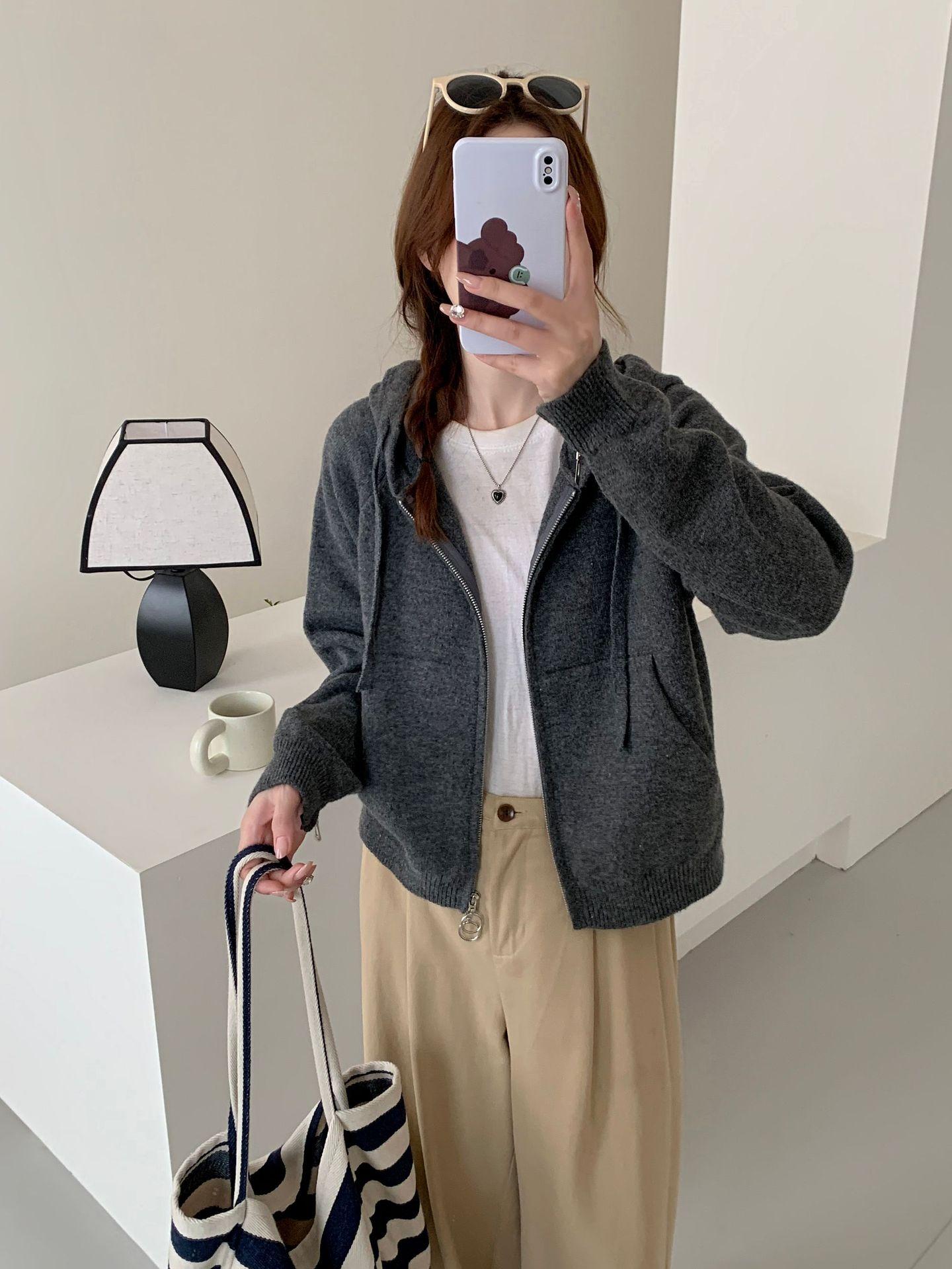 Suéter con Capucha y Cierre de Estilo Holgazán para Mujer Otoño e Invierno 2025 Nuevo Cárdigan Tejido Suelto de Gama Alta Top