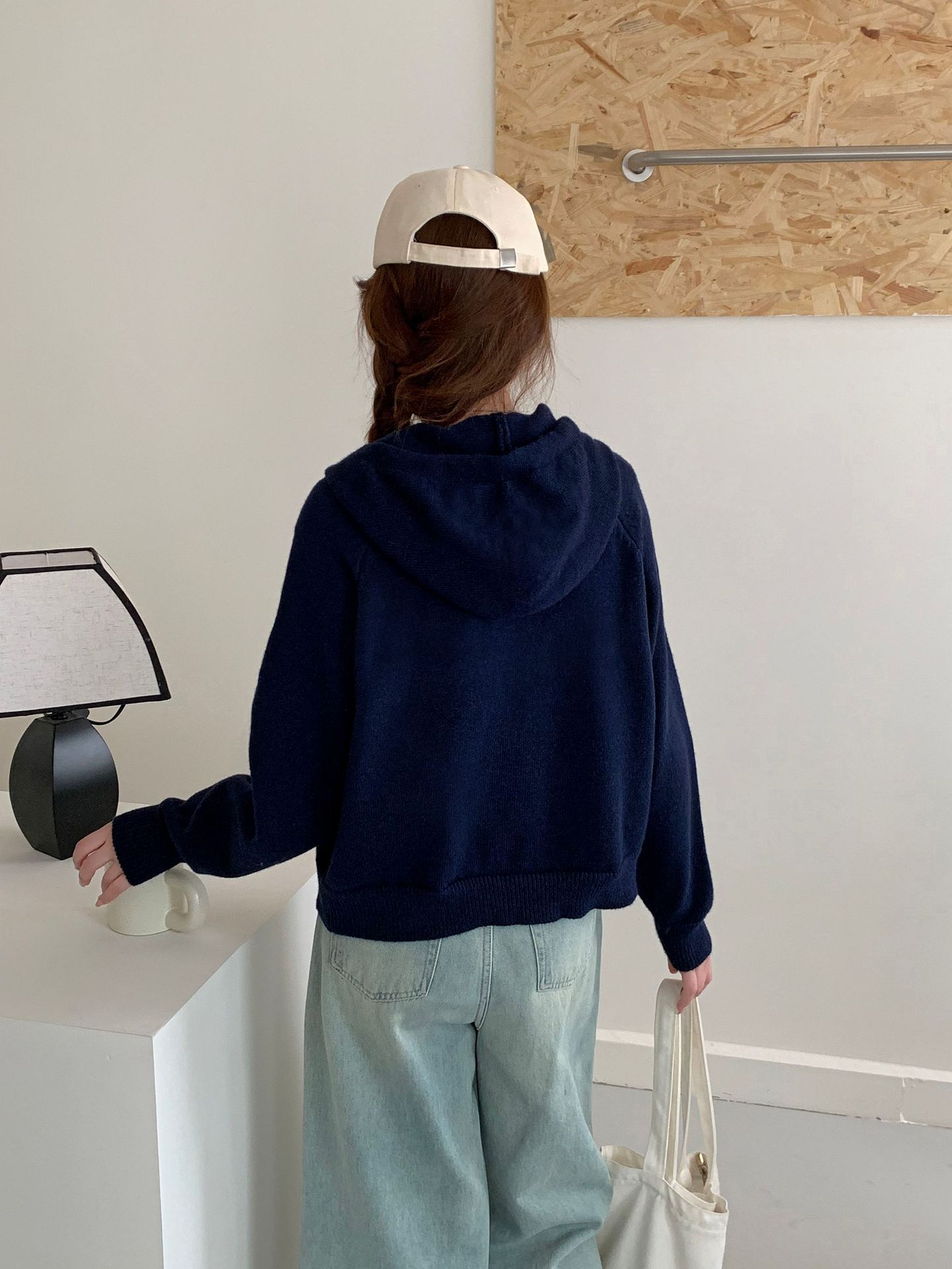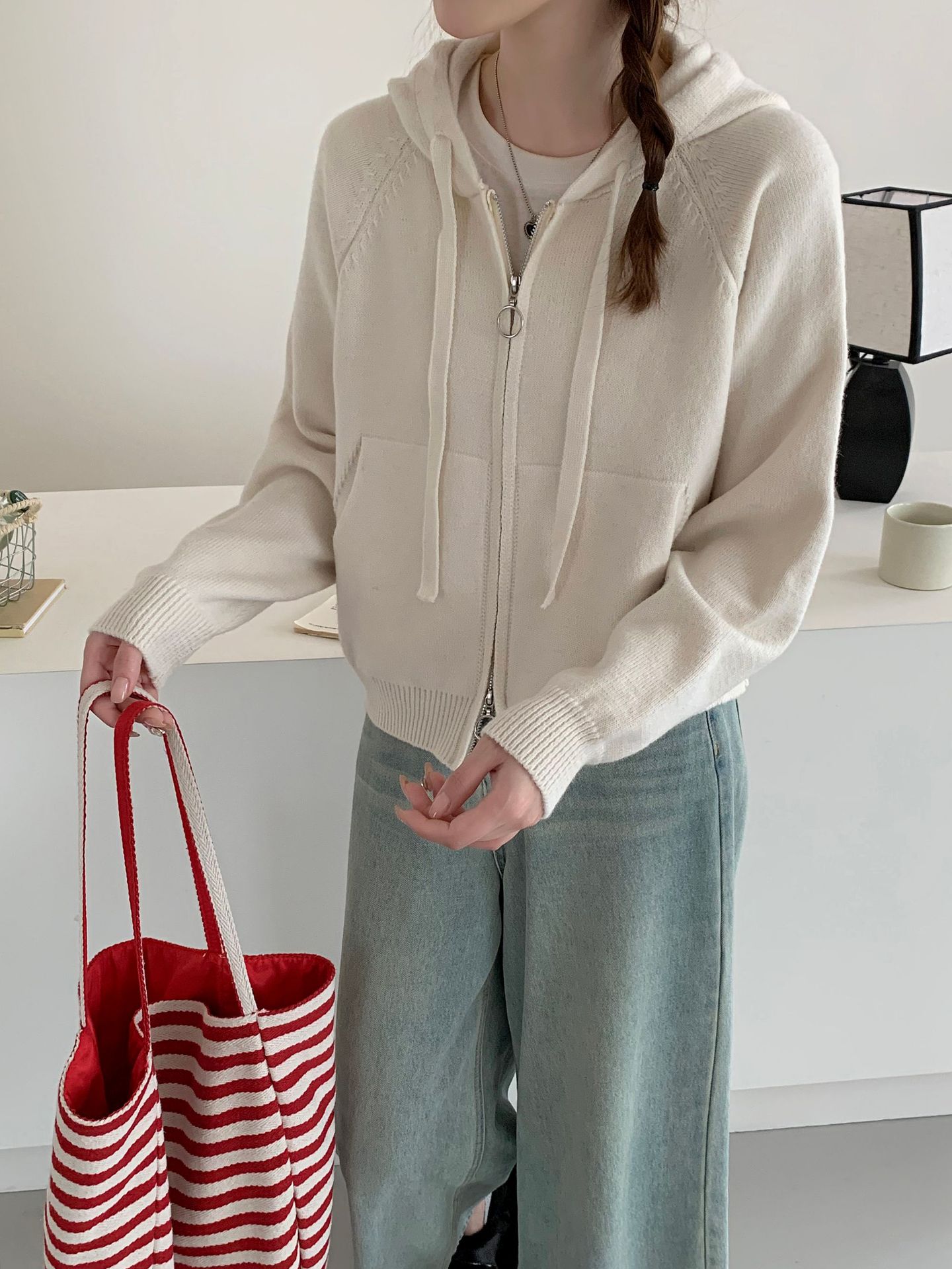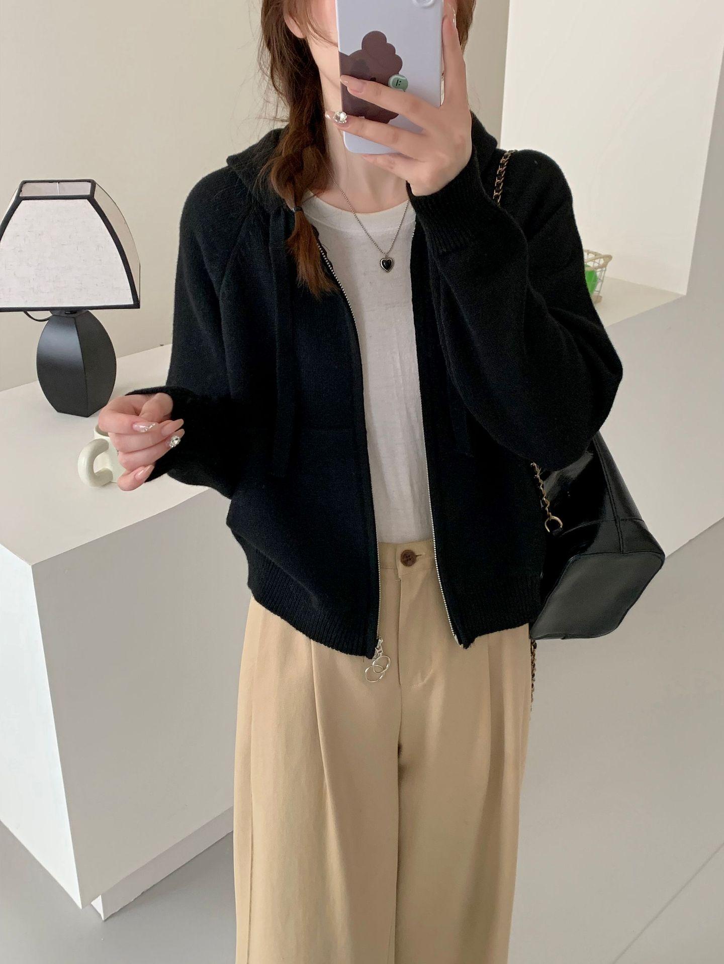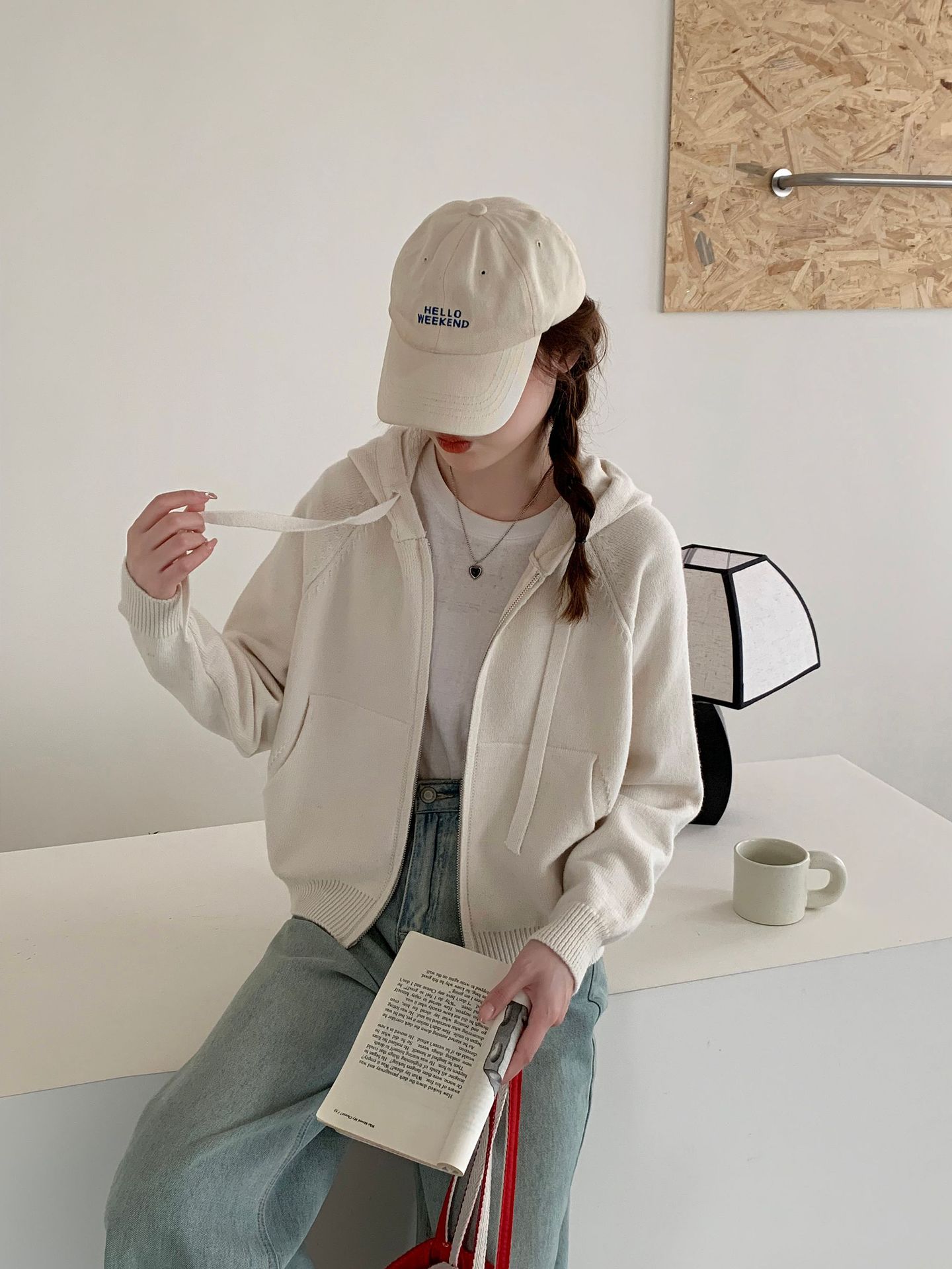 Suéter con Capucha y Cierre de Estilo Holgazán para Mujer Otoño e Invierno 2025 Nuevo Cárdigan Tejido Suelto de Gama Alta Top