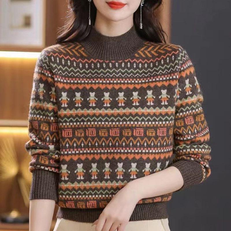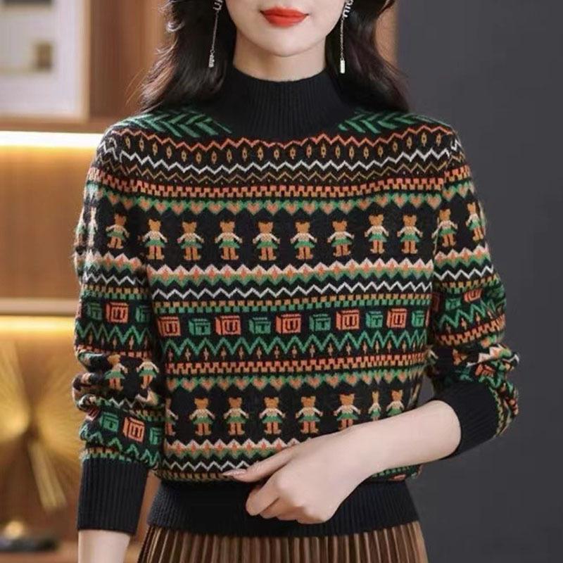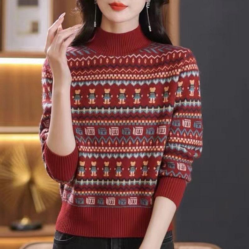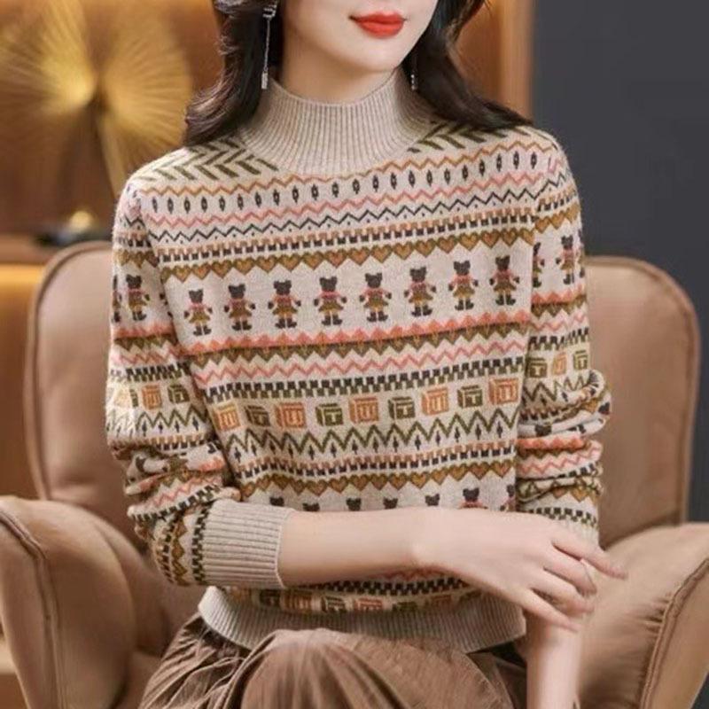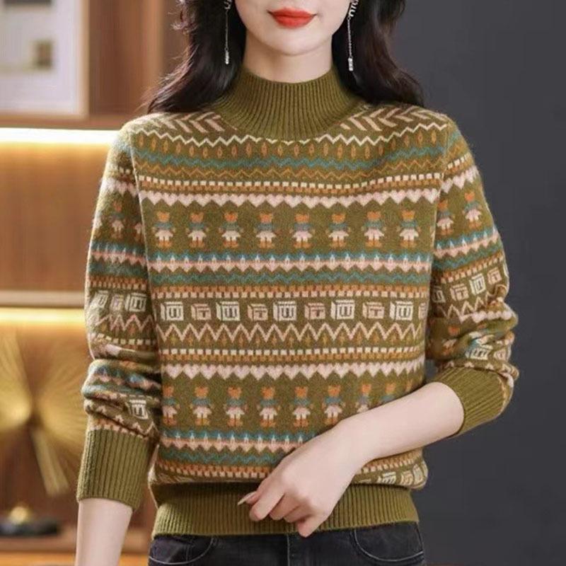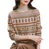 Otoño e Invierno Cuello Alto Suave Estilo Ceroso Punto Jacquard Geométrico Camiseta Base 25 Años Color Contrastante Suéter Corto Punto Interior