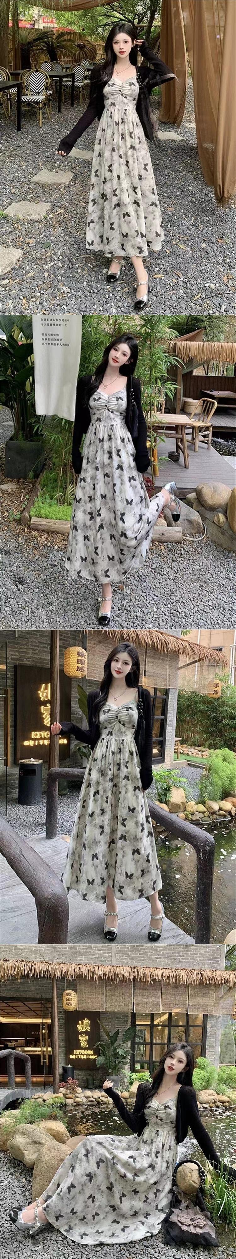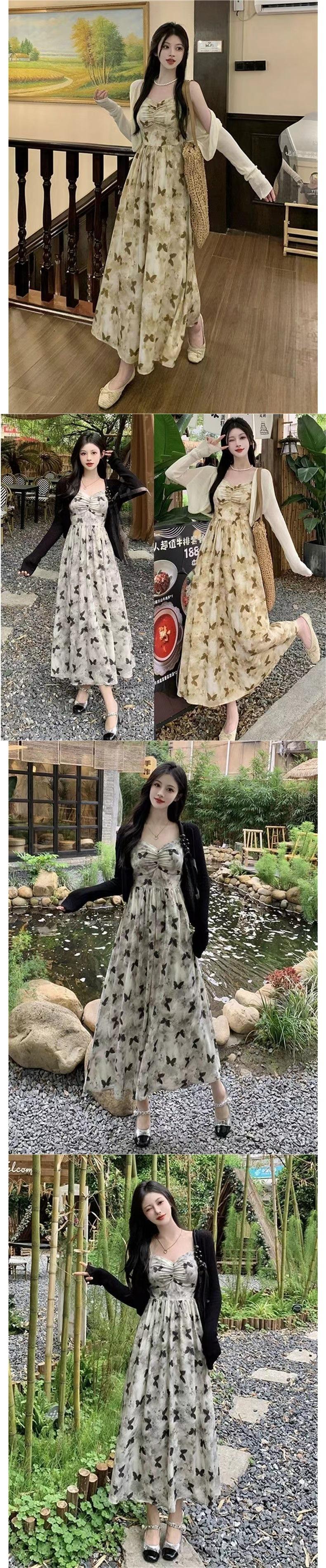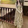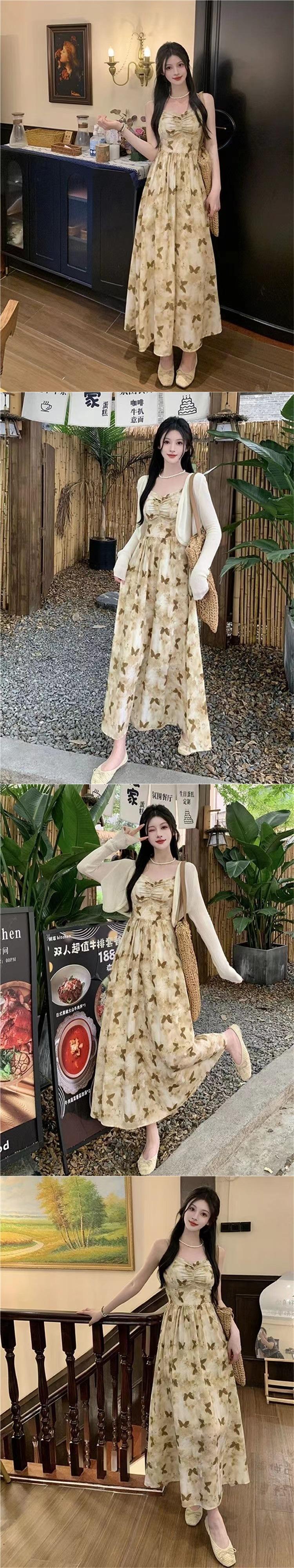 Vestido Estilo Francés Suave Mujer Verano Talla Grande Gordo MM Diseño de Cárdigan Estampado Tirantes Vestido Largo Conjunto de Dos Piezas