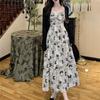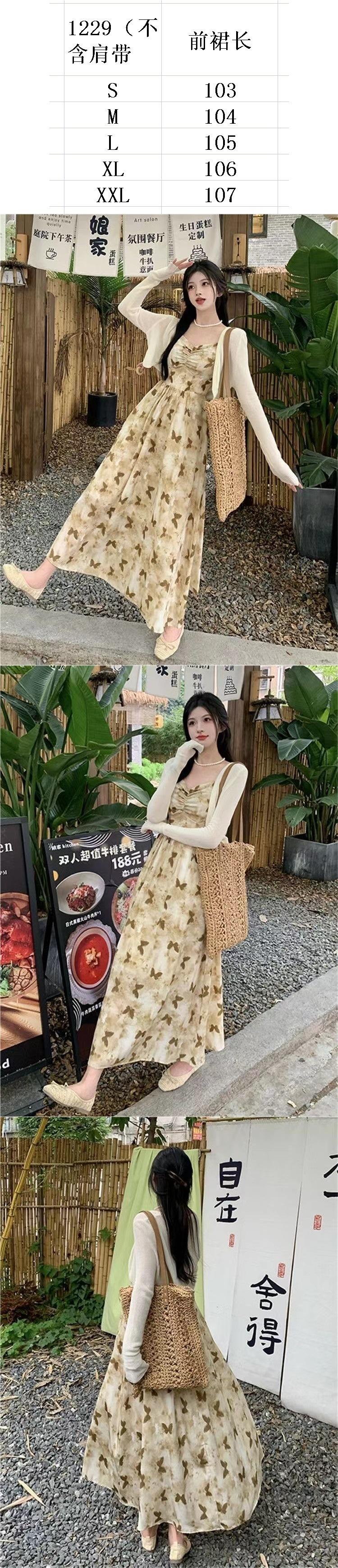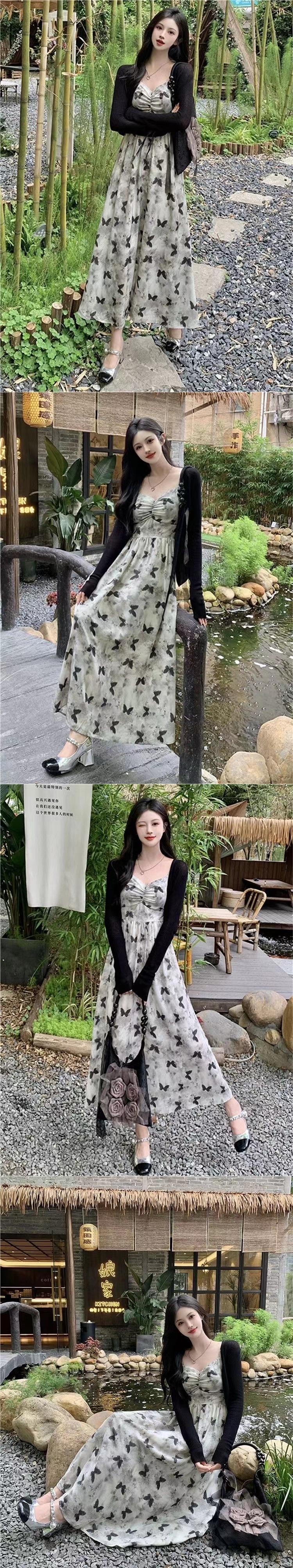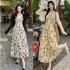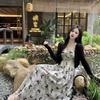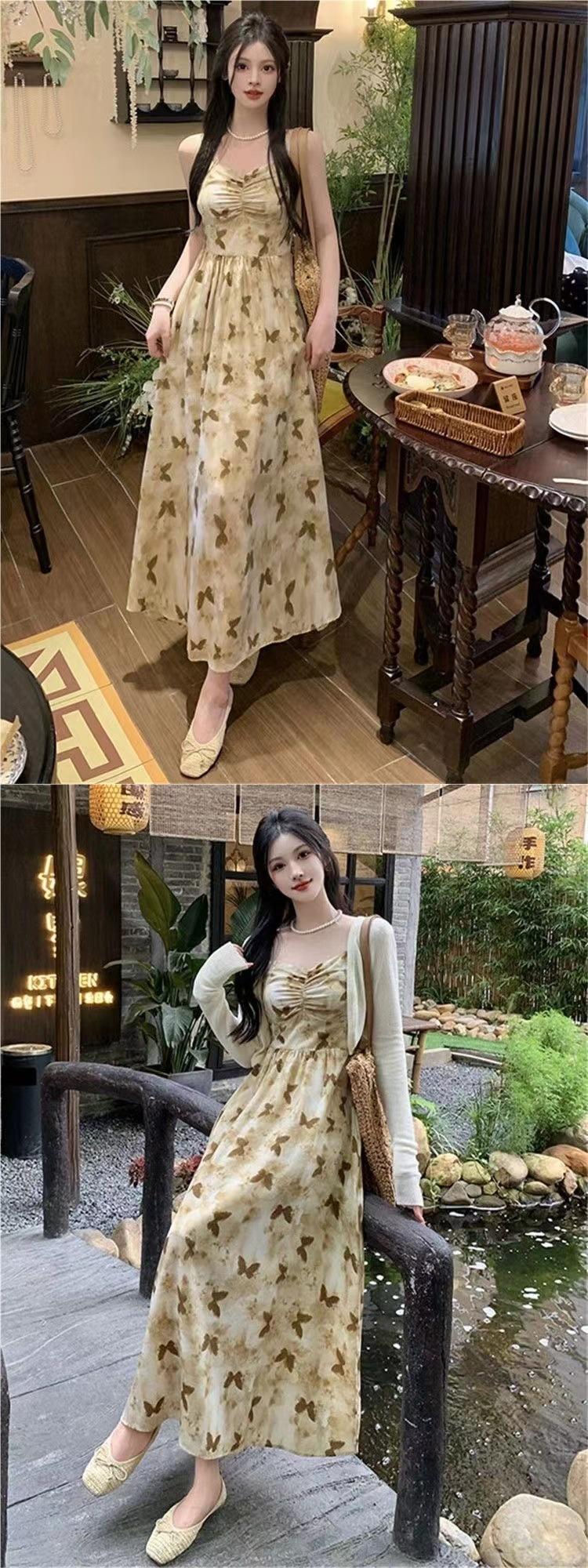 Vestido Estilo Francés Suave Mujer Verano Talla Grande Gordo MM Diseño de Cárdigan Estampado Tirantes Vestido Largo Conjunto de Dos Piezas