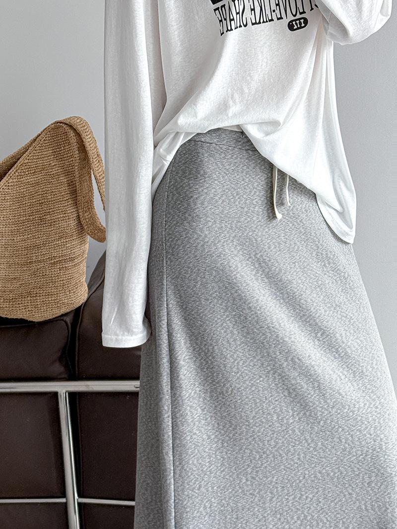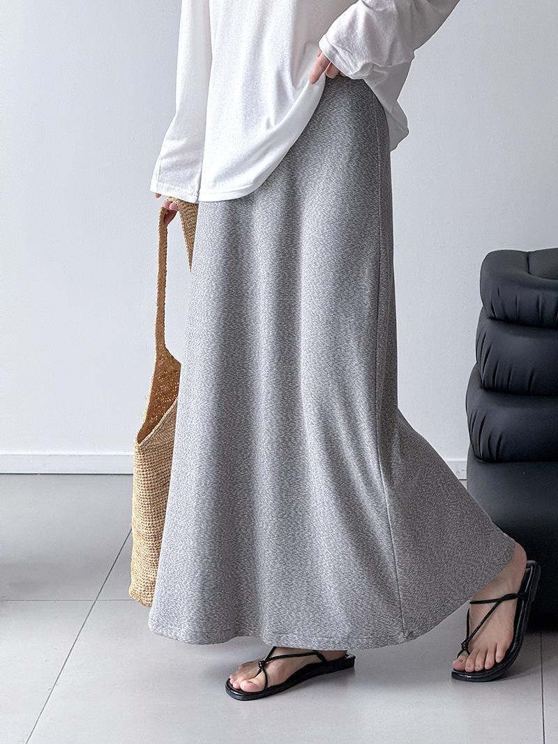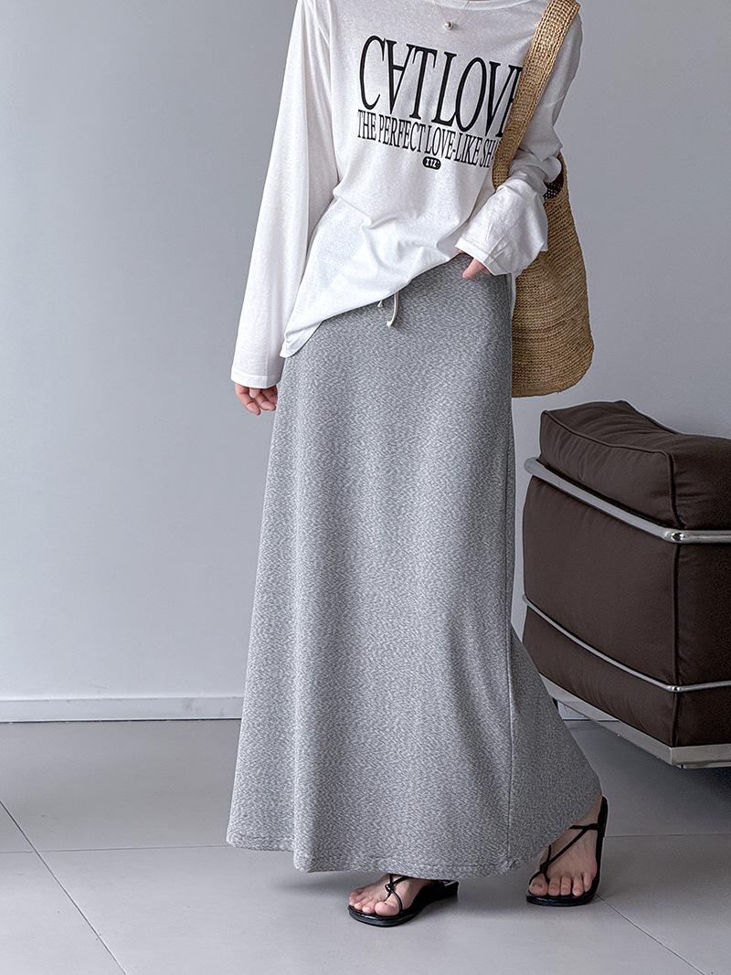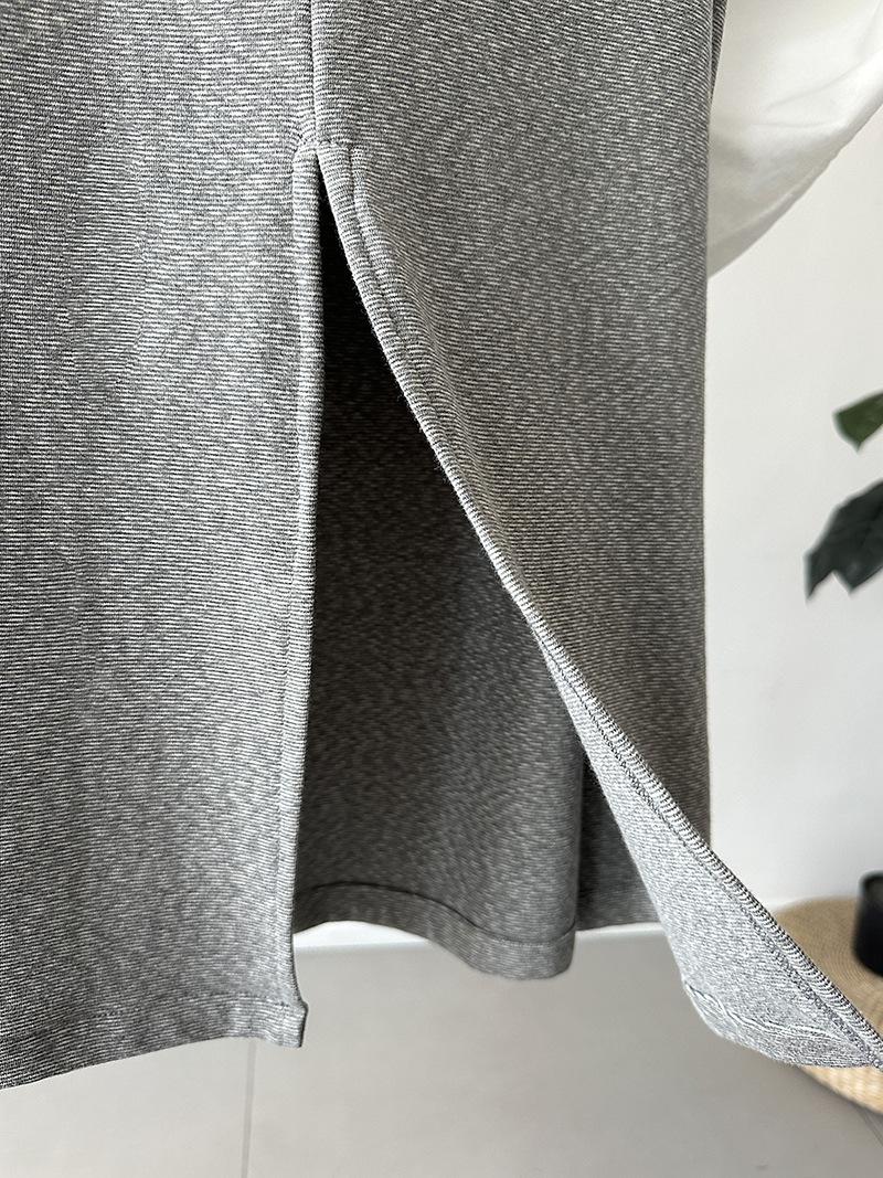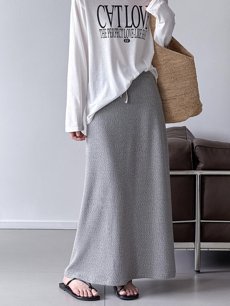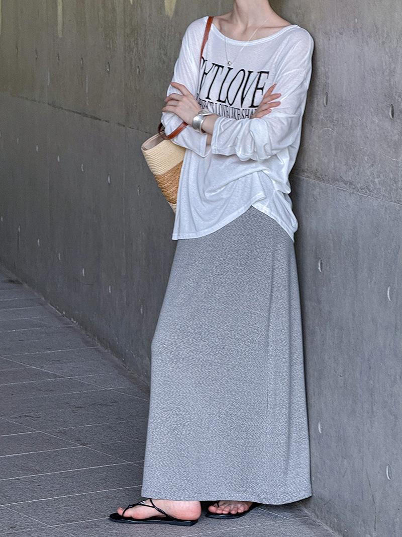 Juzhi Verano Nuevo Estilo Falda Larga Recta Gris Pequeña de Cintura Alta Falda Casual para Mujer 25206