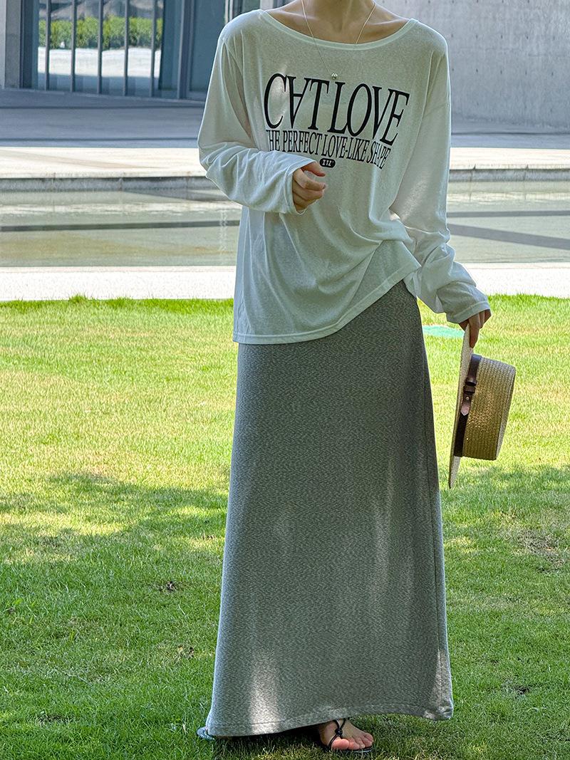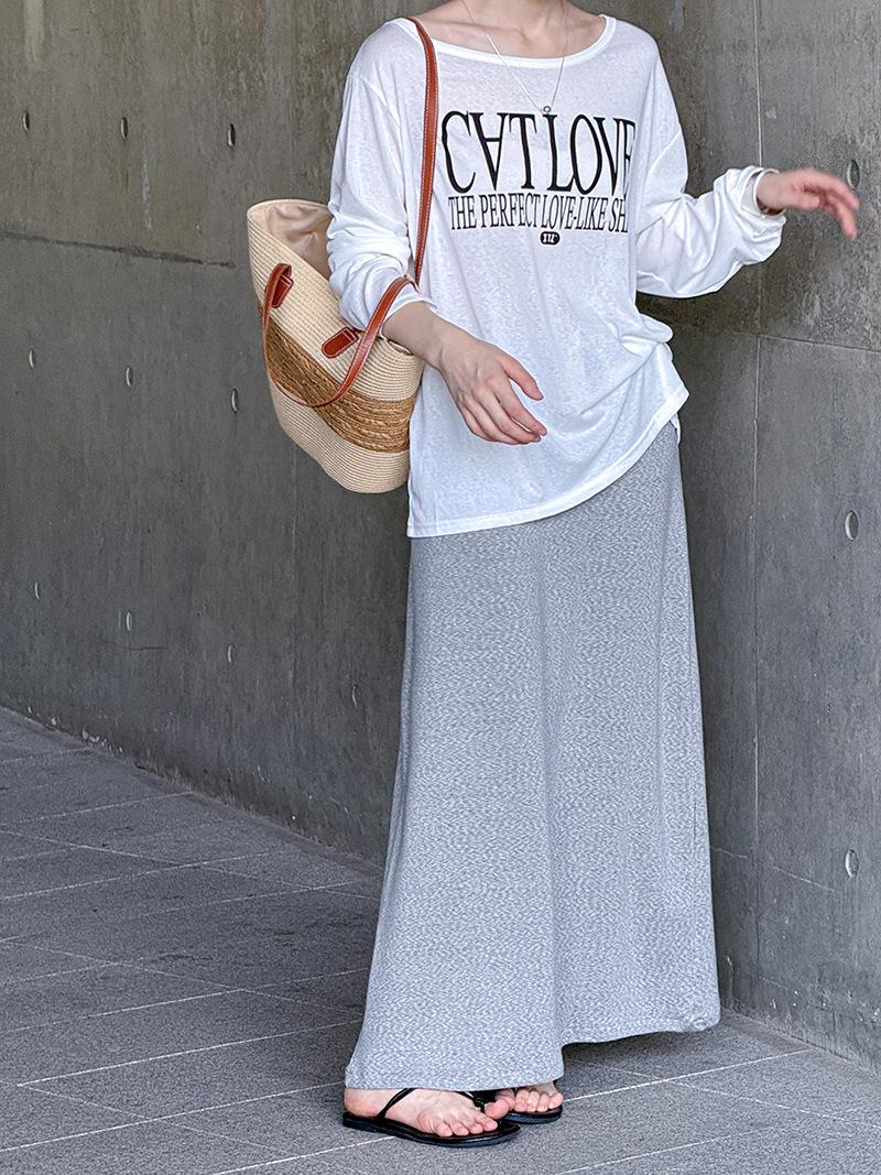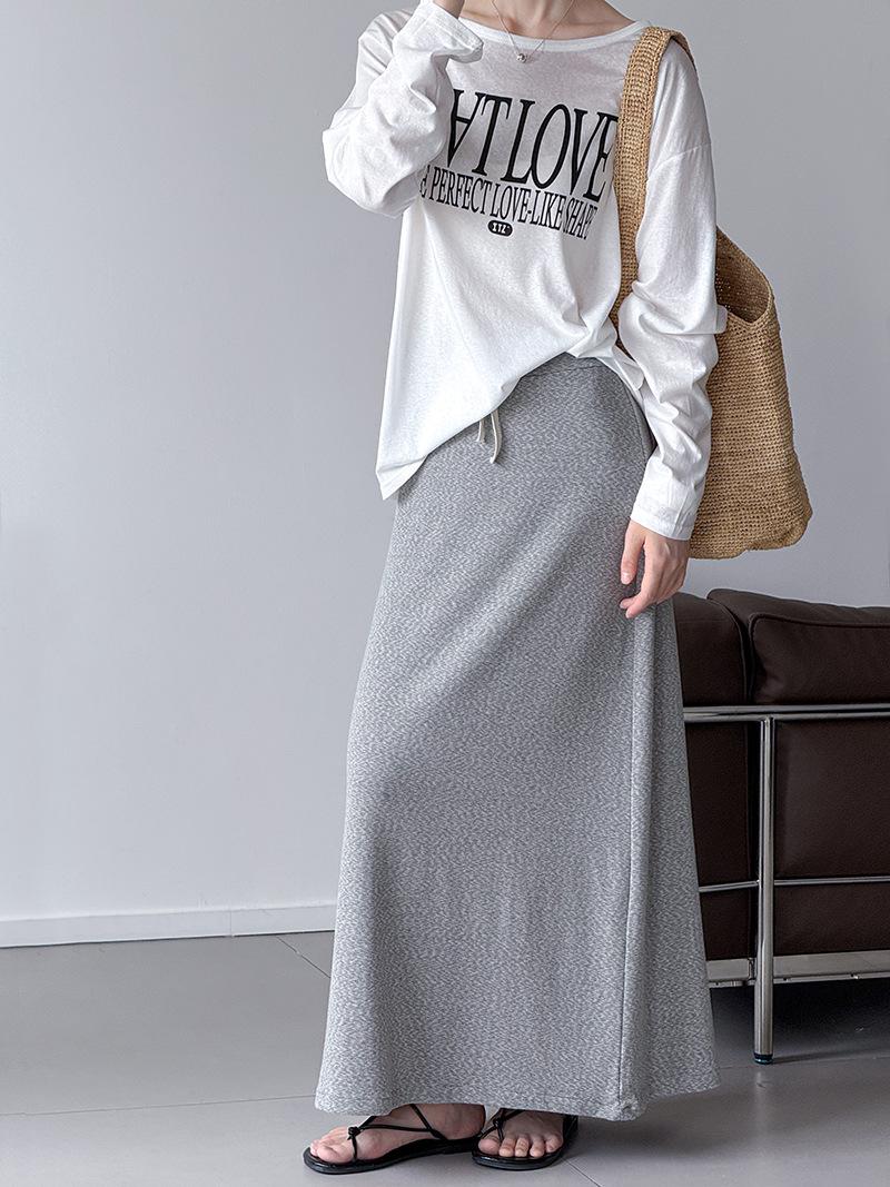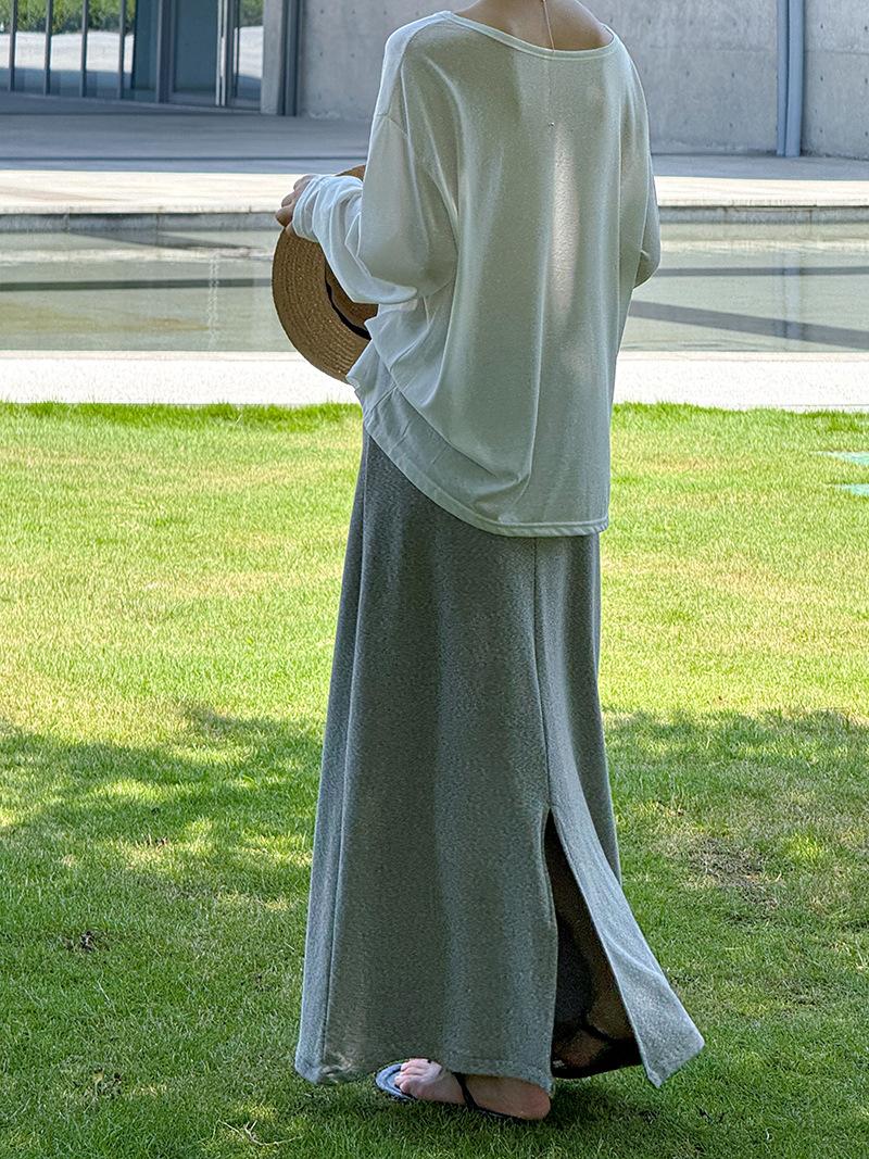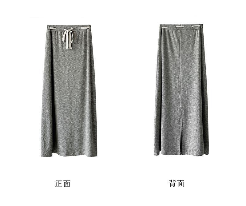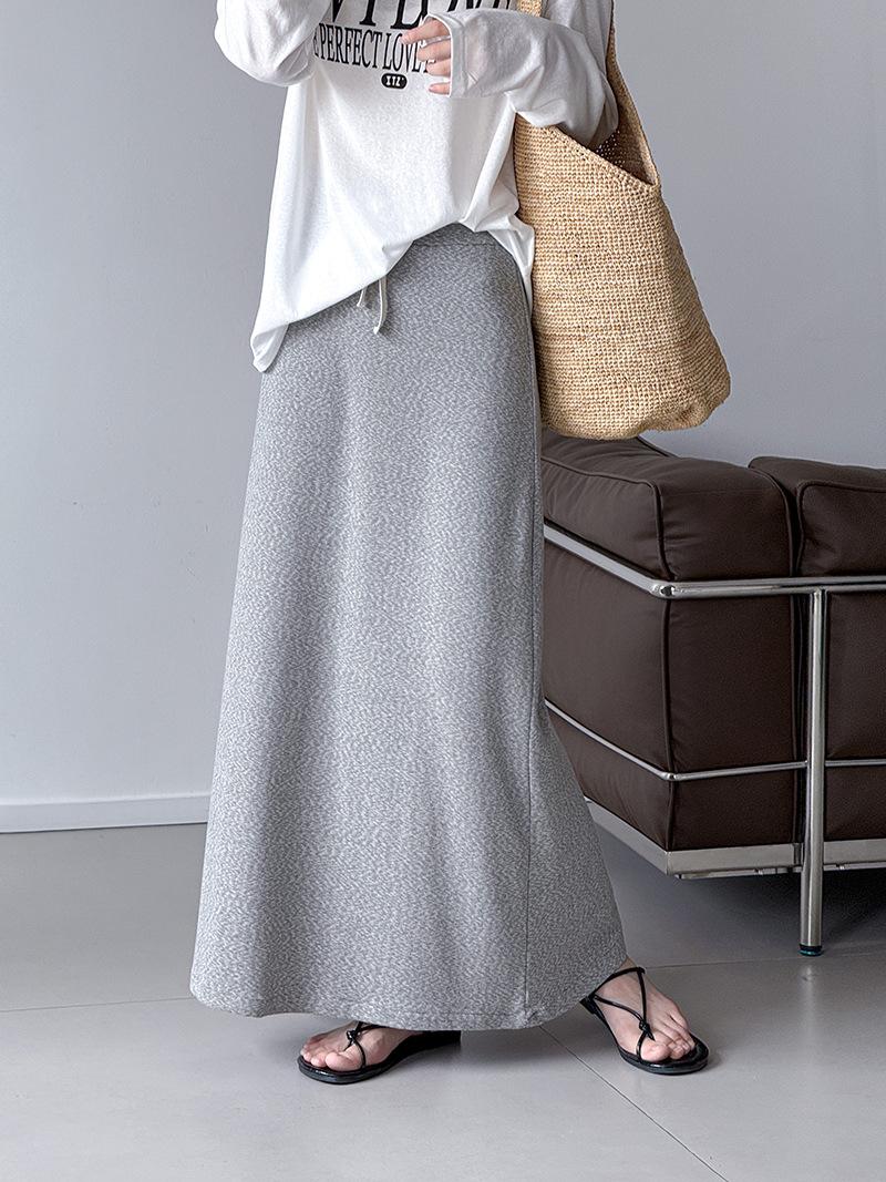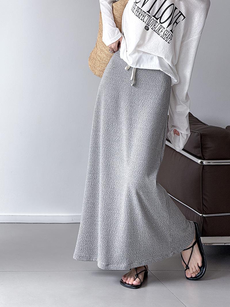 Juzhi Verano Nuevo Estilo Falda Larga Recta Gris Pequeña de Cintura Alta Falda Casual para Mujer 25206