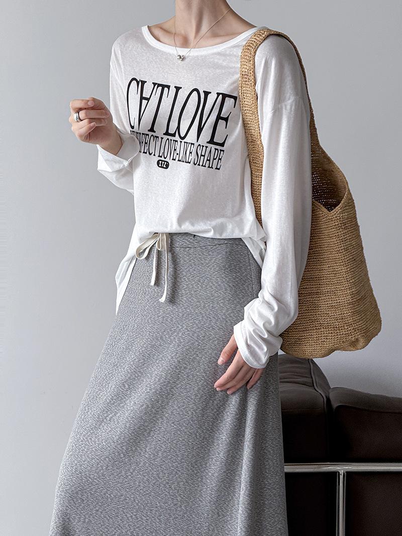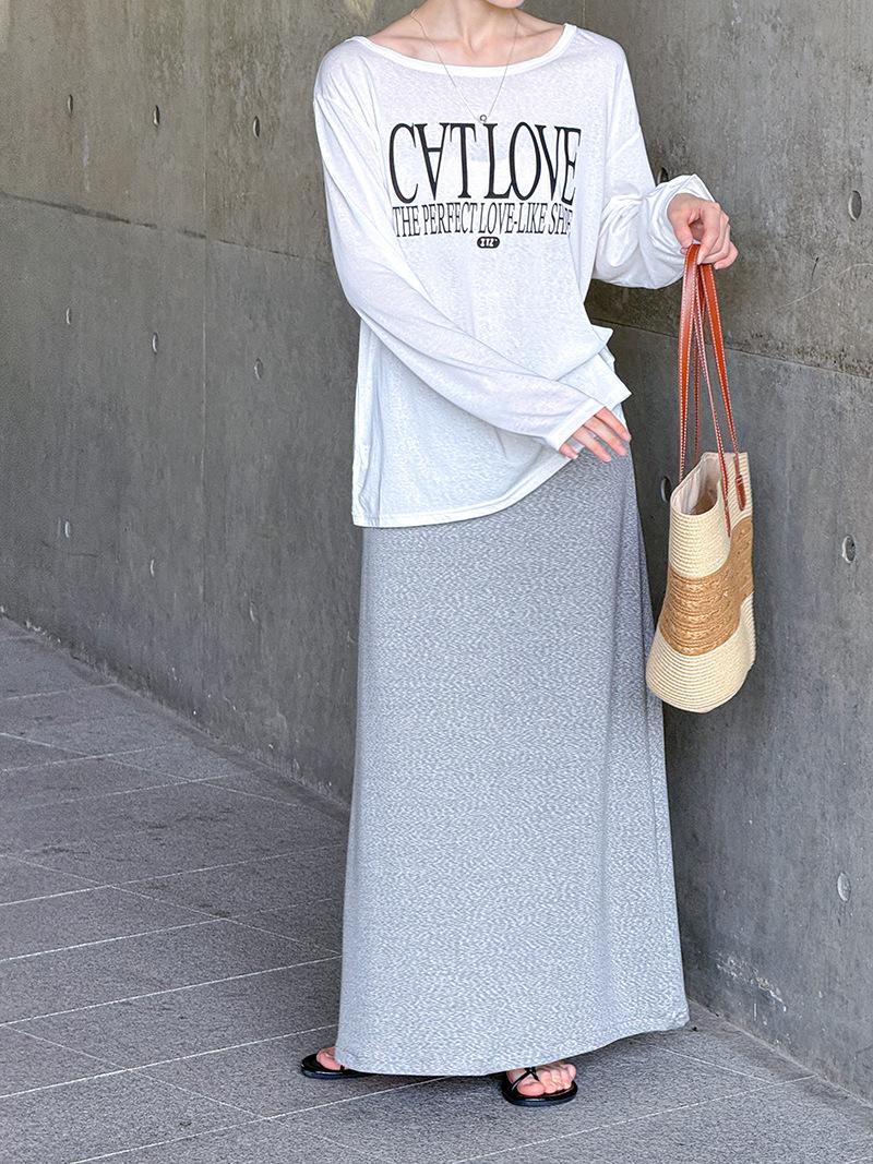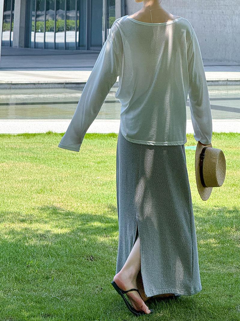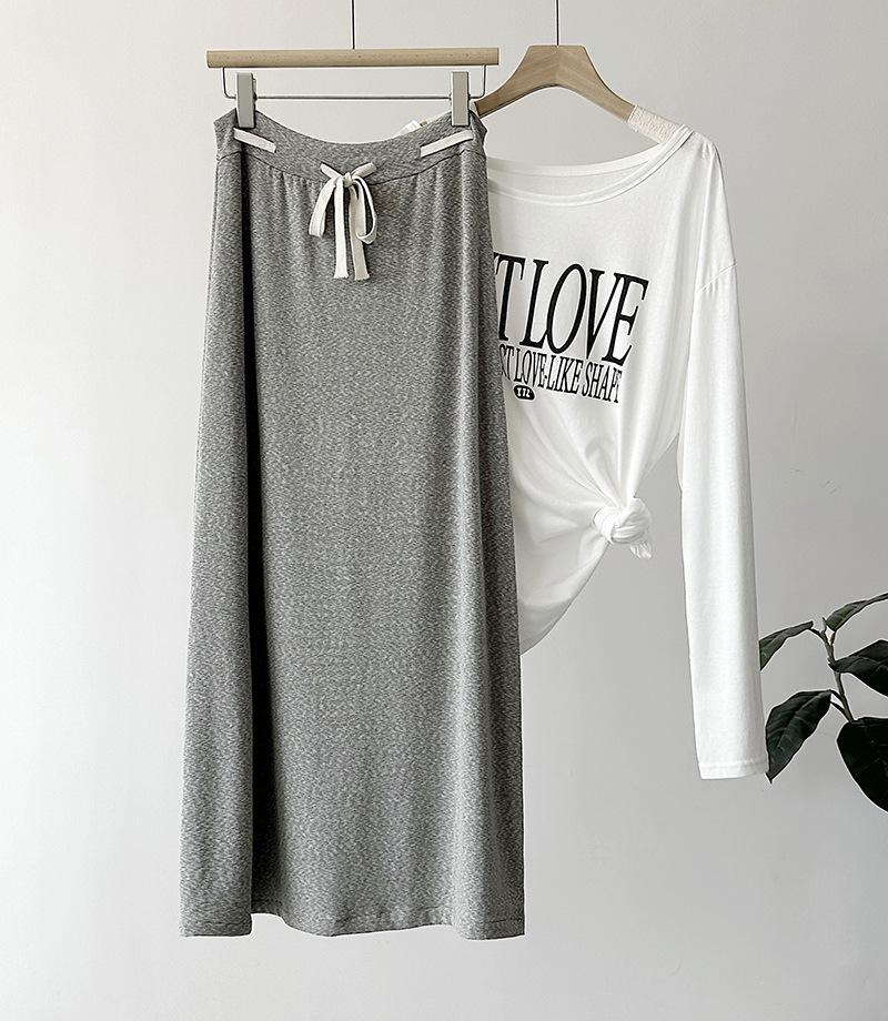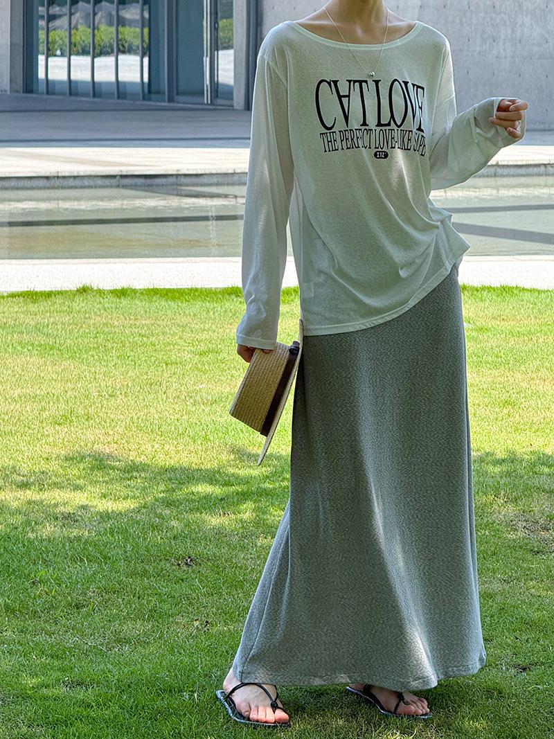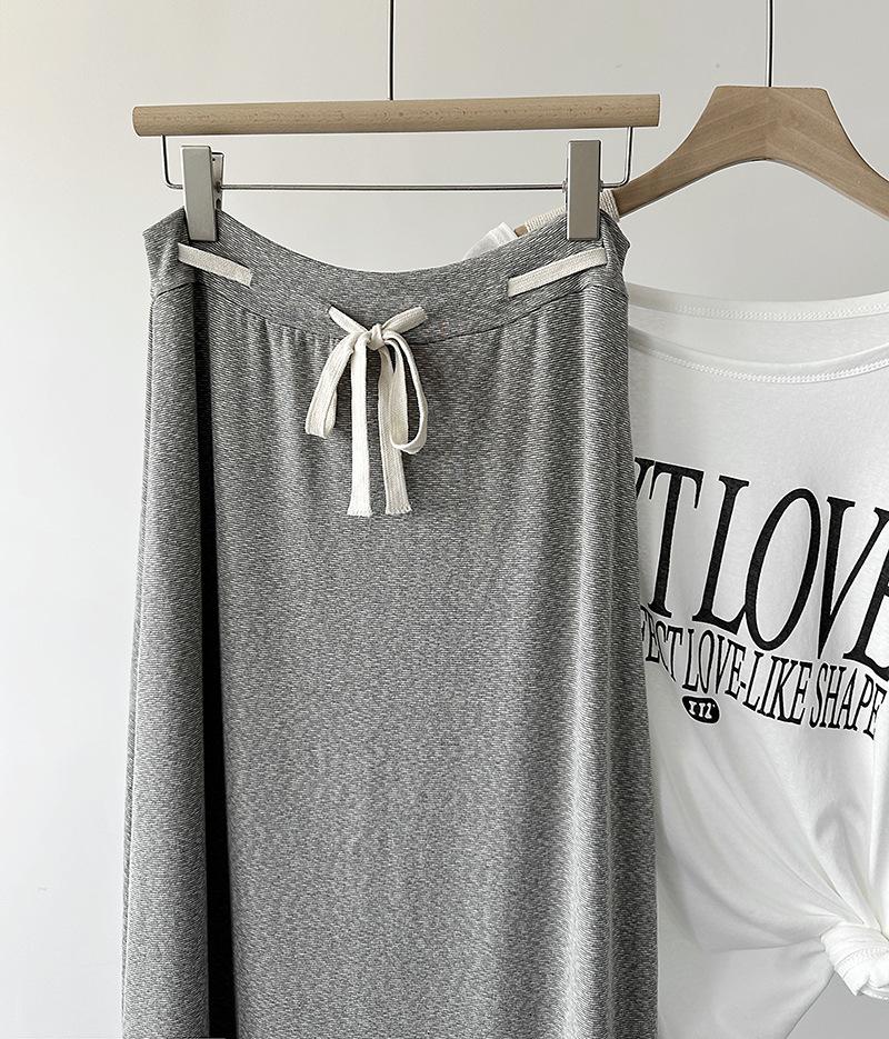 Juzhi Verano Nuevo Estilo Falda Larga Recta Gris Pequeña de Cintura Alta Falda Casual para Mujer 25206