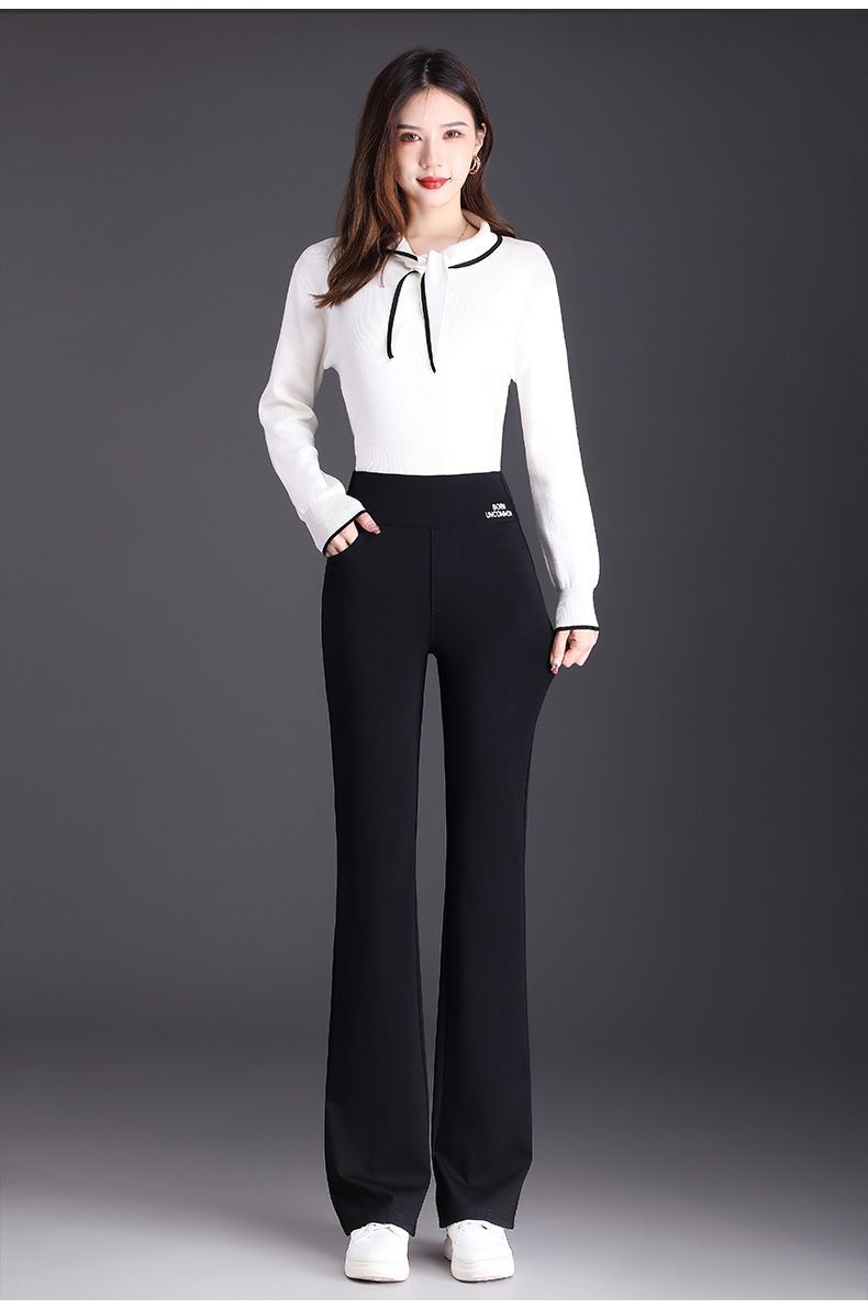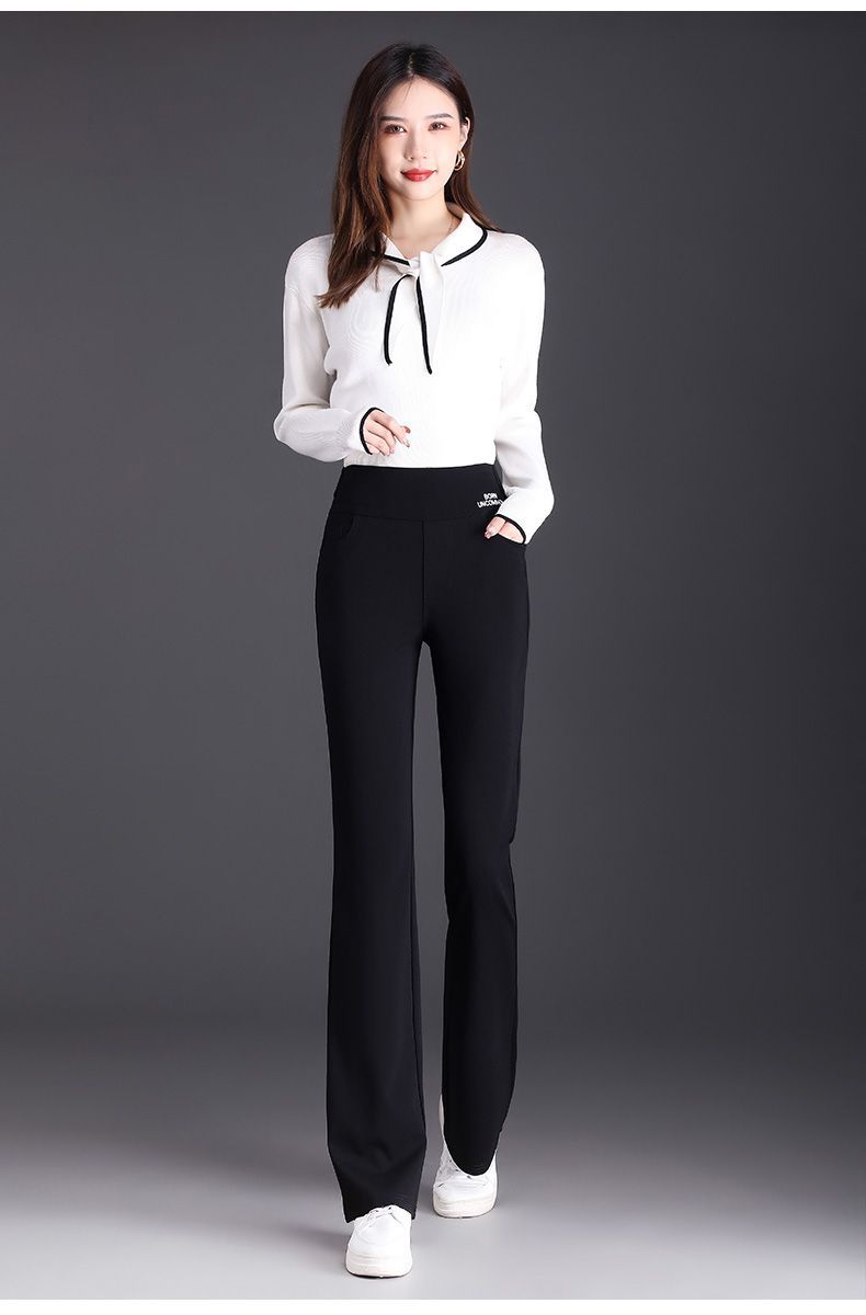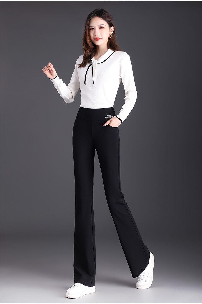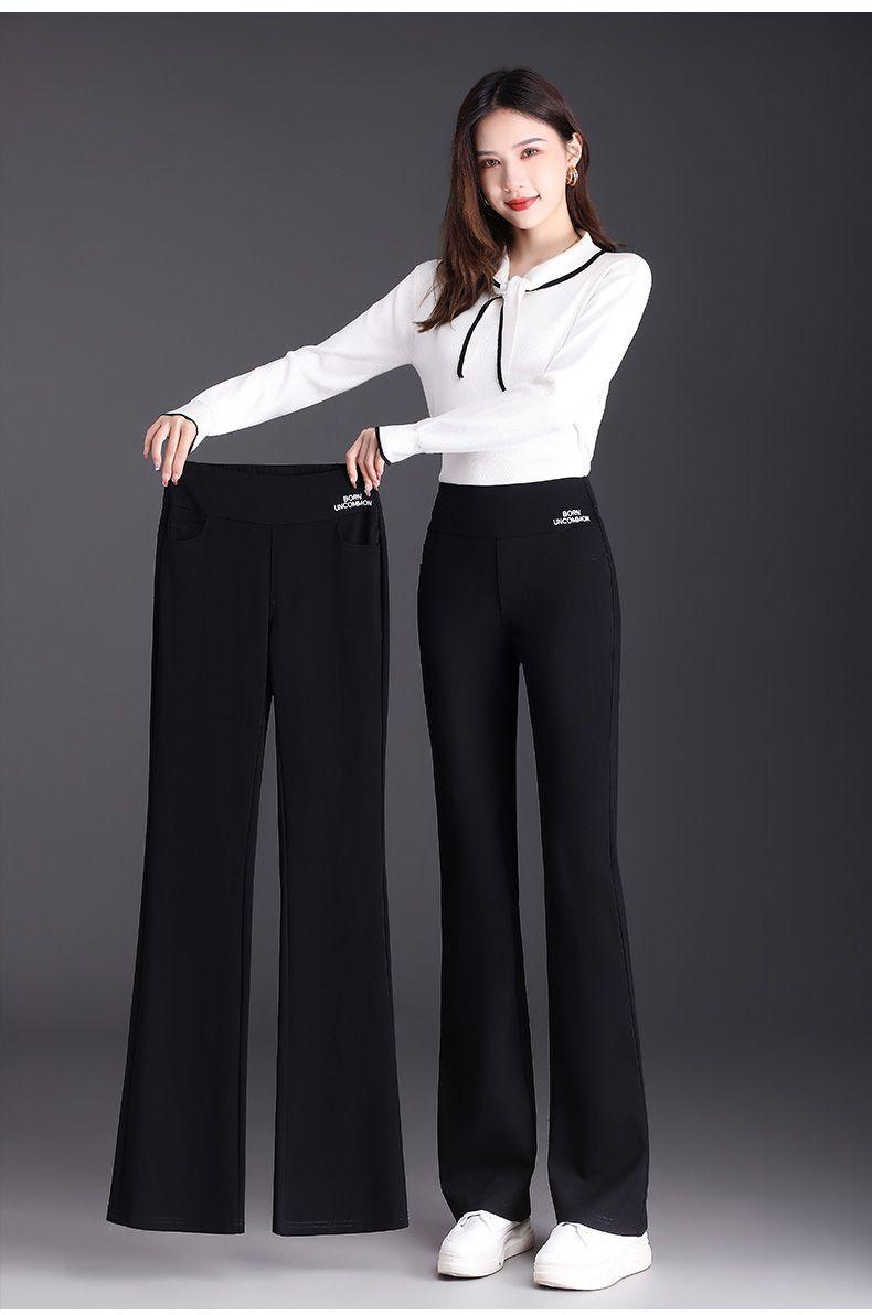 Pantalones Acampanados para Mujer Verano Delgados 2025 Nueva Llegada Negros Sueltos Ajustados Pantalones de Vestir Cintura Alta Pantalones de Adorno
